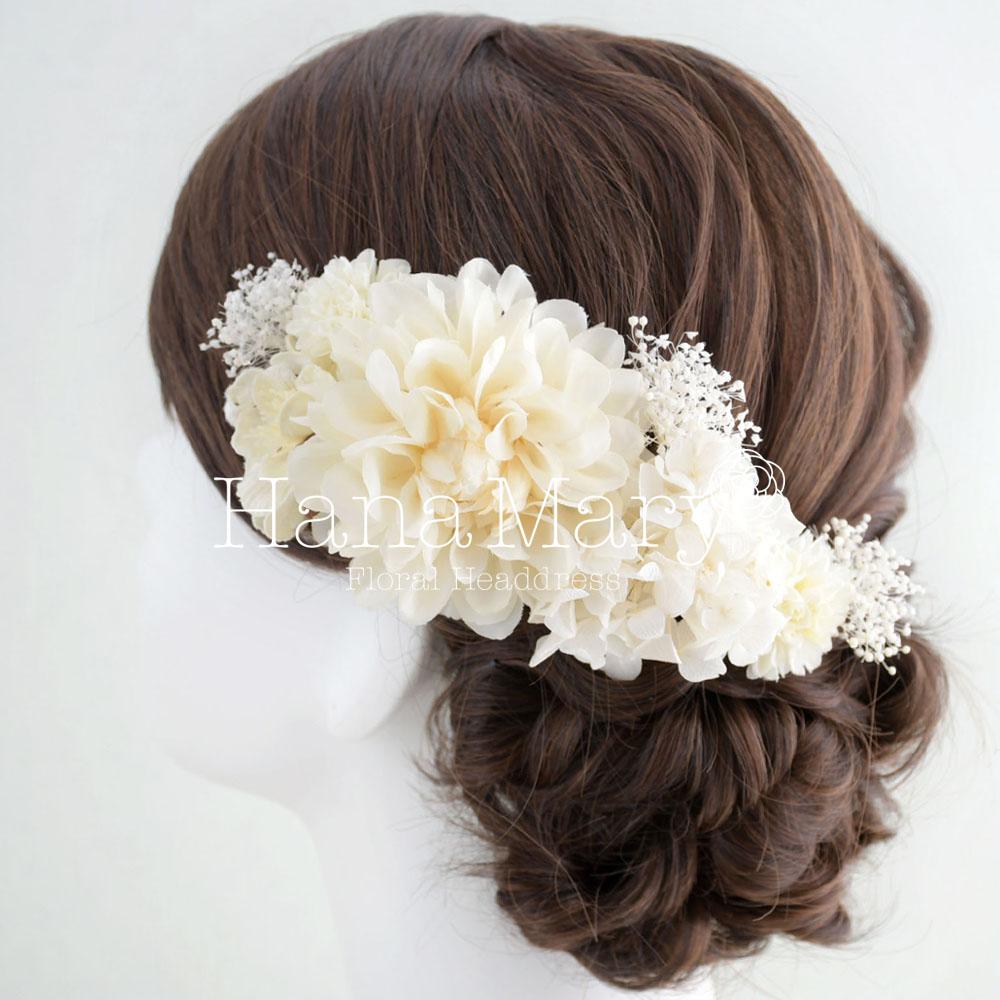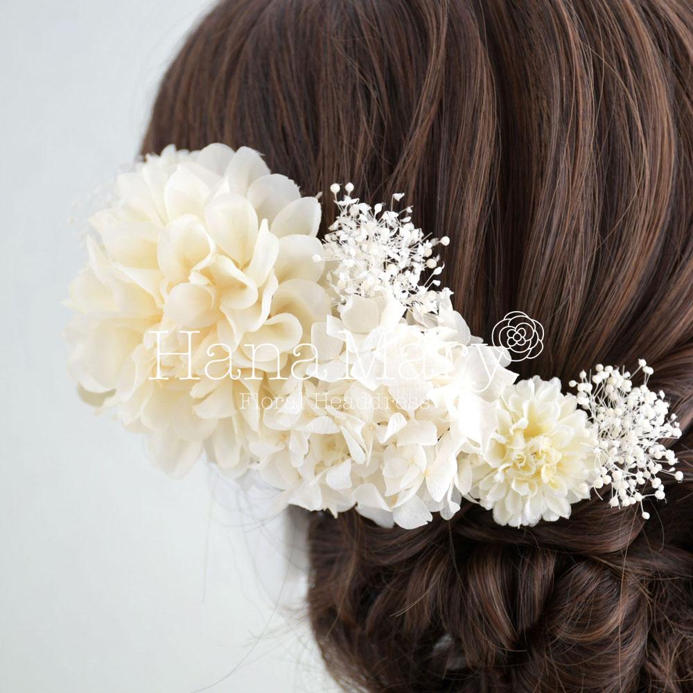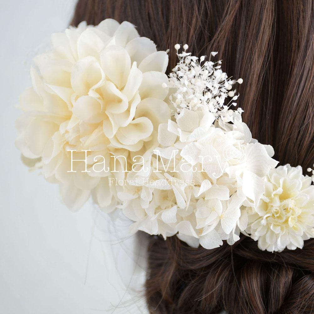 HanaMaryの髪飾りは生花をリアルに再現したアートフラワーと呼ばれるハイクオリティーな造花を使用しています。耐久性に優れ、成人式・卒業式やウェディングなどに何度でも繰り返し使用することができます。