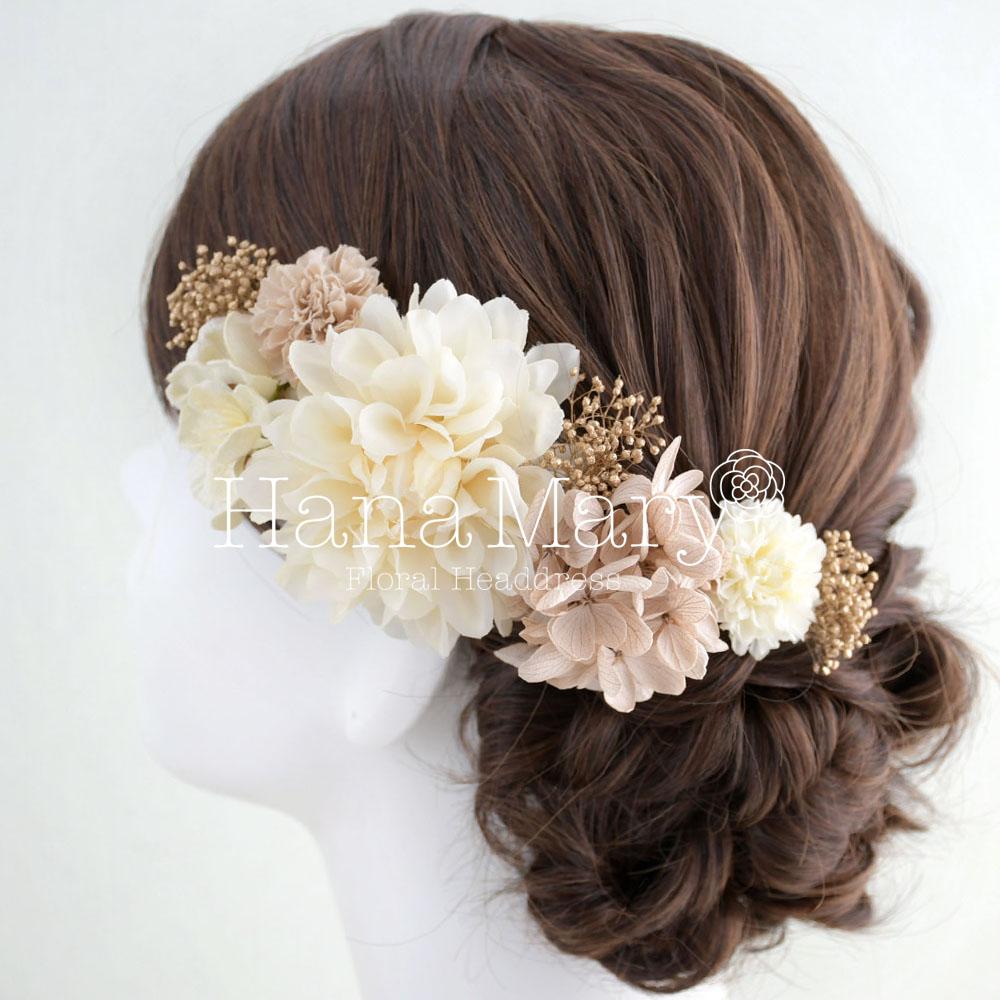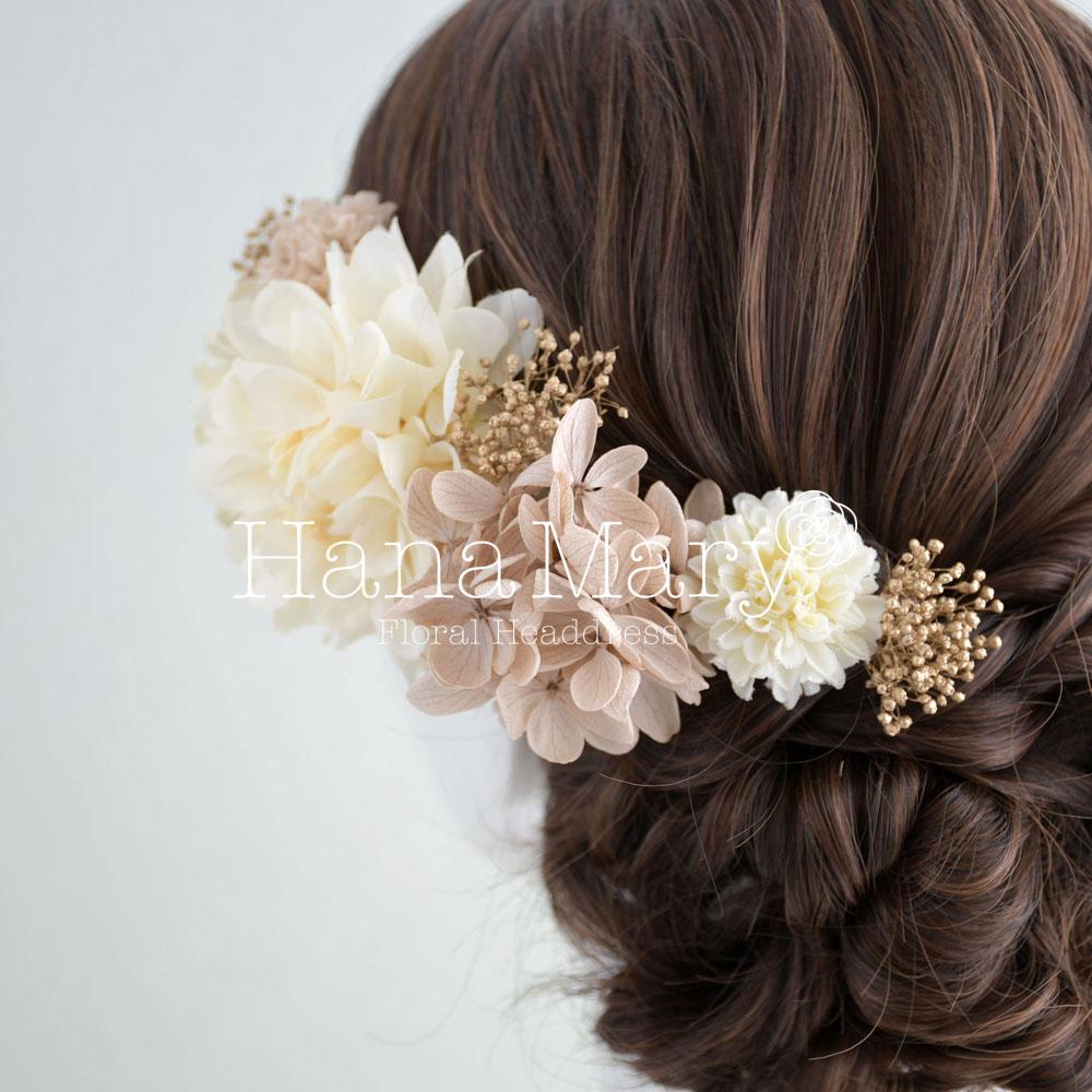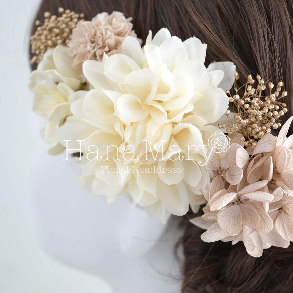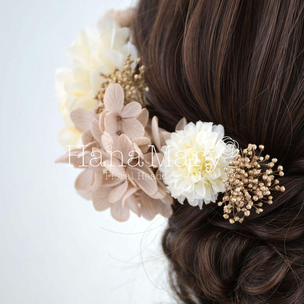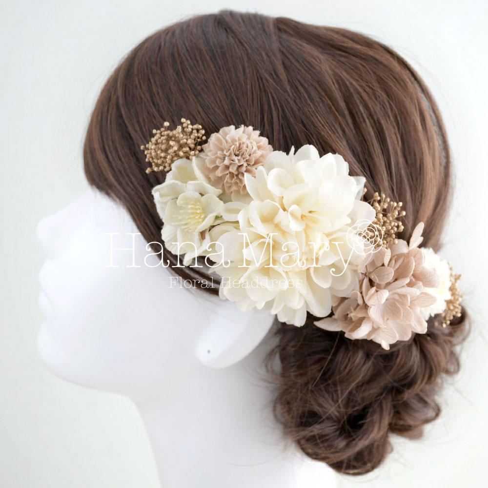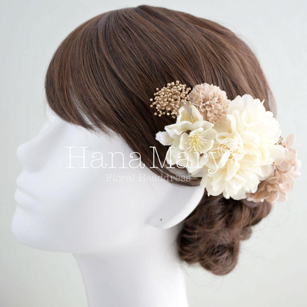 クリーム×モカ色のヘアドレス 結婚式 和装 髪飾り