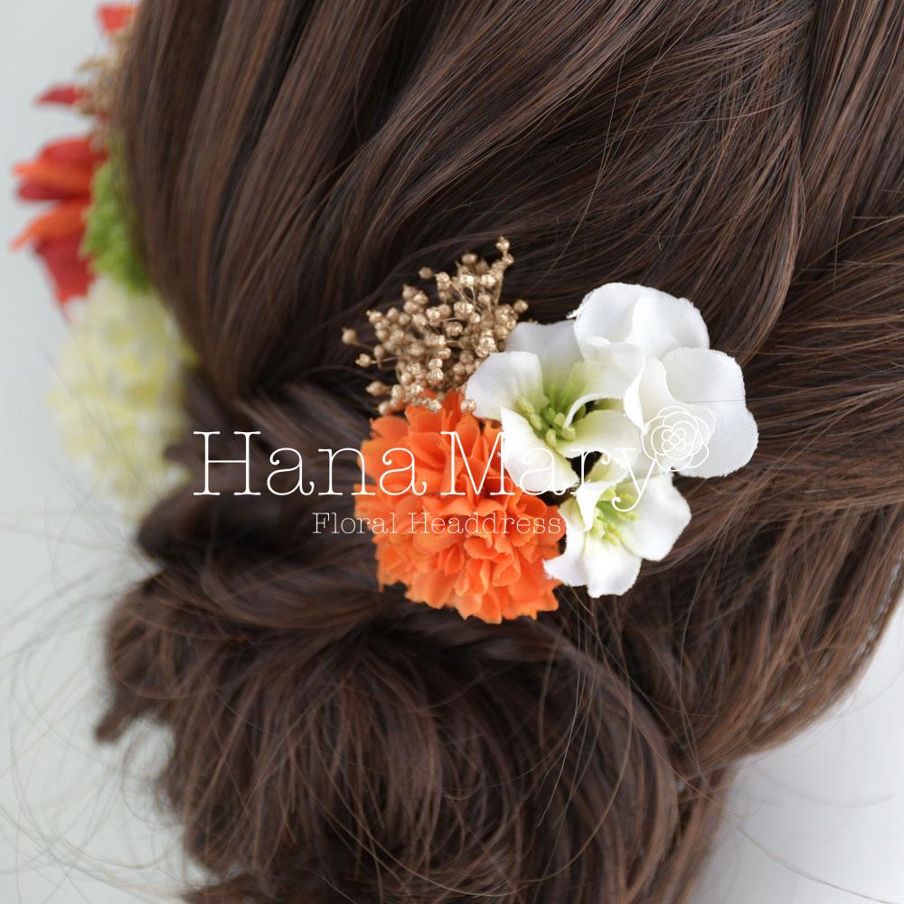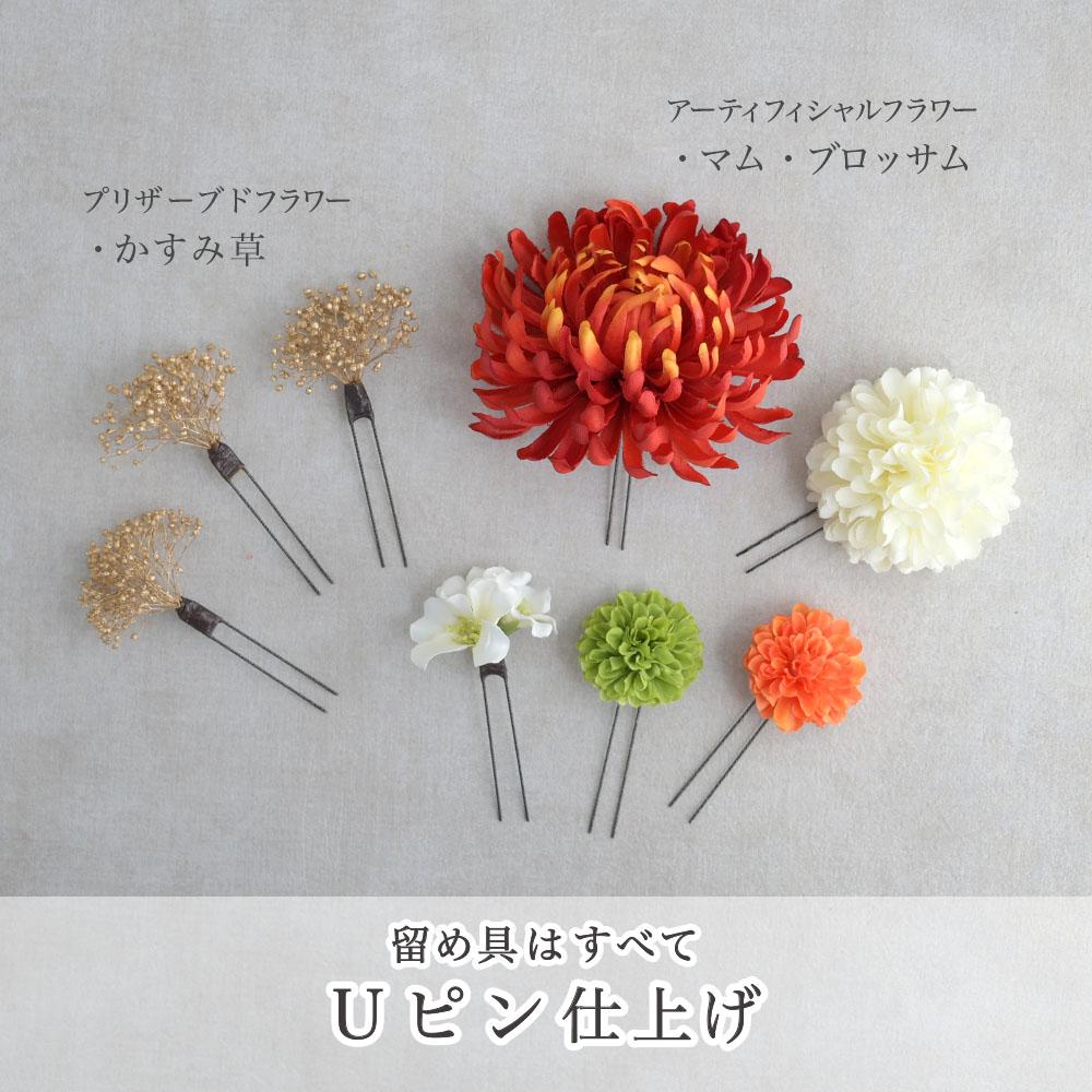 その日のヘアスタイルによって自由に一輪一輪配置できます。お花の数が多い場合でも、アメピンを追加して簡単にしっかりと固定できます。