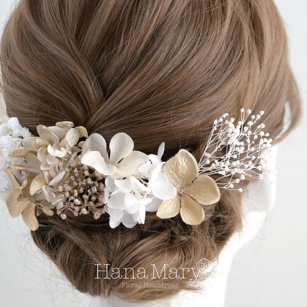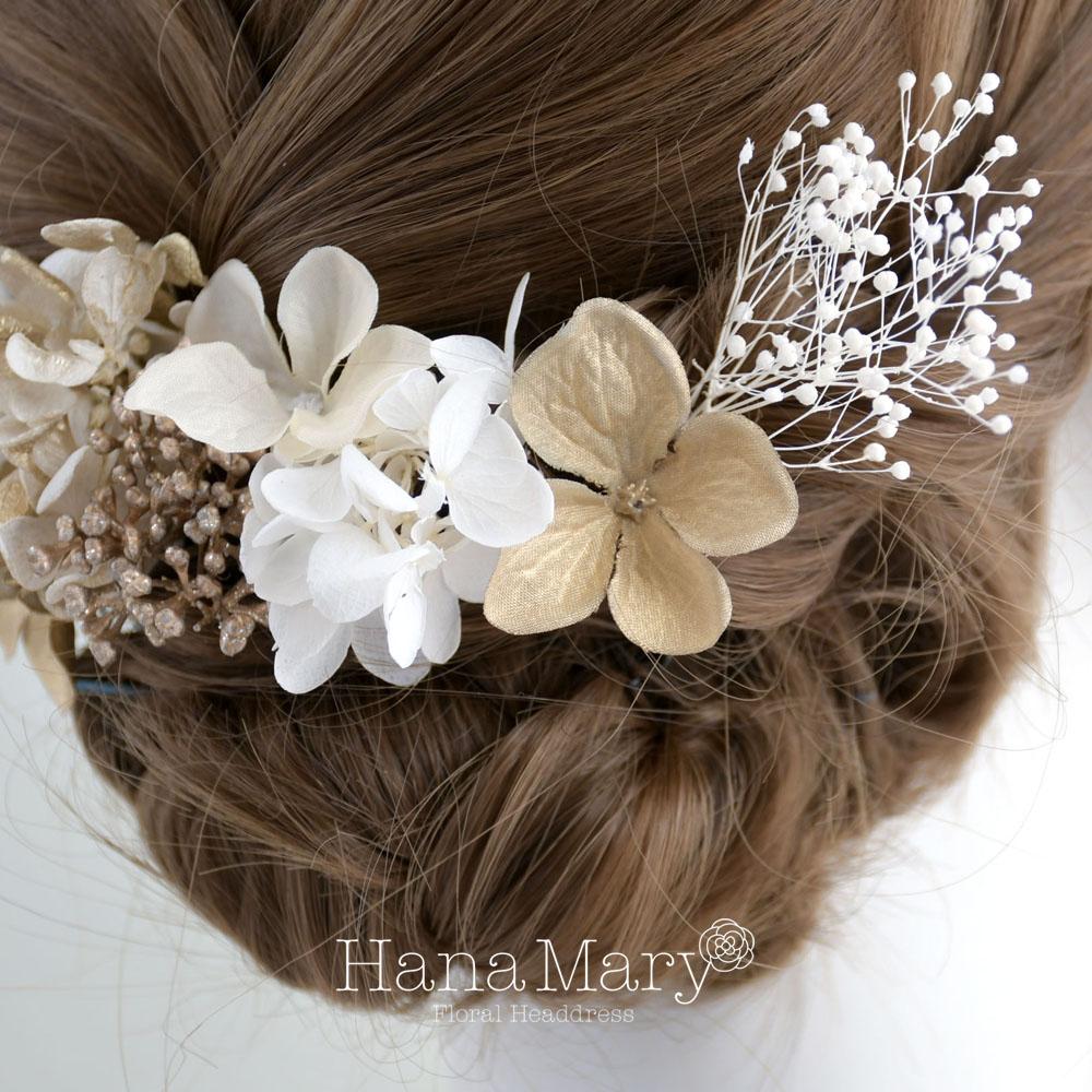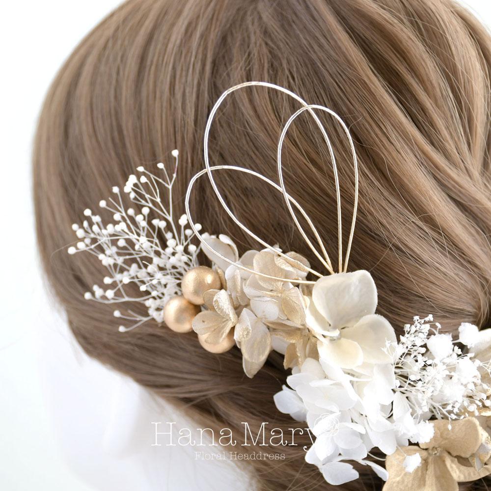 小花で彩る髪飾り【白 ゴールド】成人式 卒業式 結婚式 振袖 袴 髪飾り 着物 和装