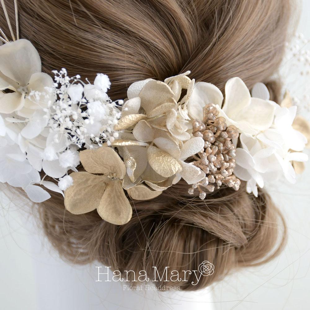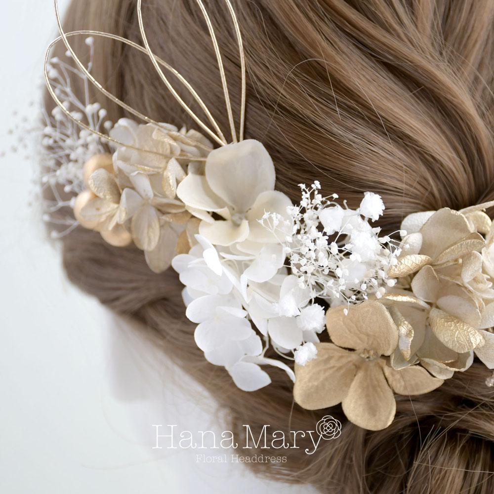 HanaMaryの髪飾りは生花をリアルに再現したアートフラワーと呼ばれるハイクオリティーな造花を使用しています。耐久性に優れ、成人式・卒業式やウェディングなどに何度でも繰り返し使用することができます。
