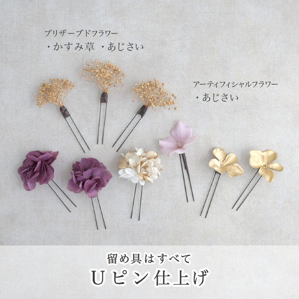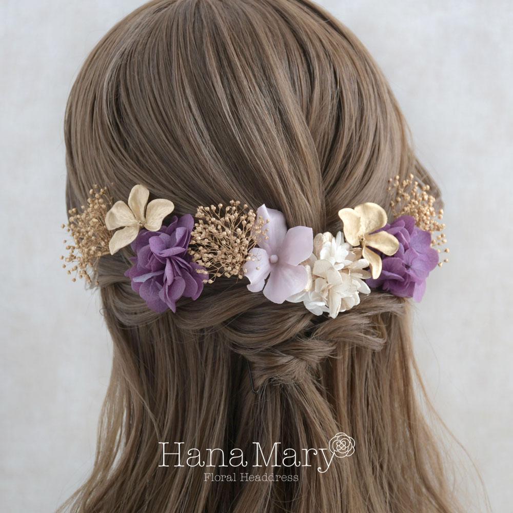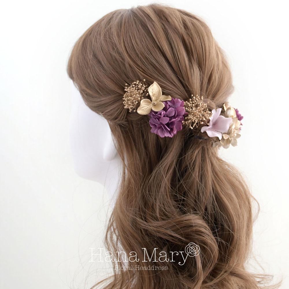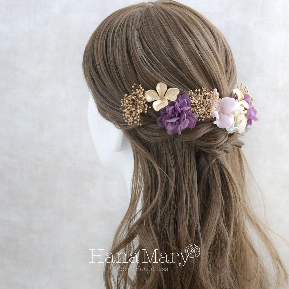 一輪の紫陽花と小花で綴る【ゴールド 紫】卒業式 成人式 結婚式 振袖 袴 髪飾り 着物