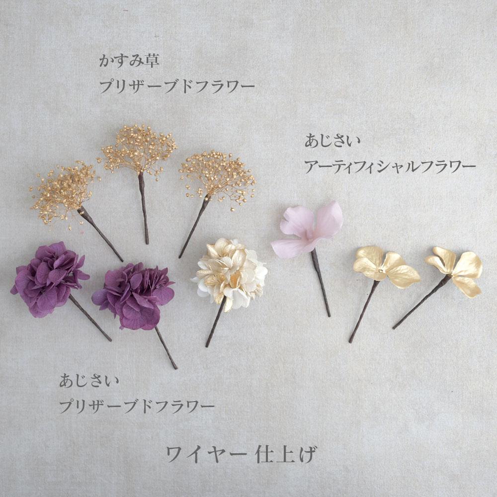 その日のヘアスタイルによって自由に一輪一輪配置できます。お花の数が多い場合でも、アメピンを追加して簡単にしっかりと固定できます。