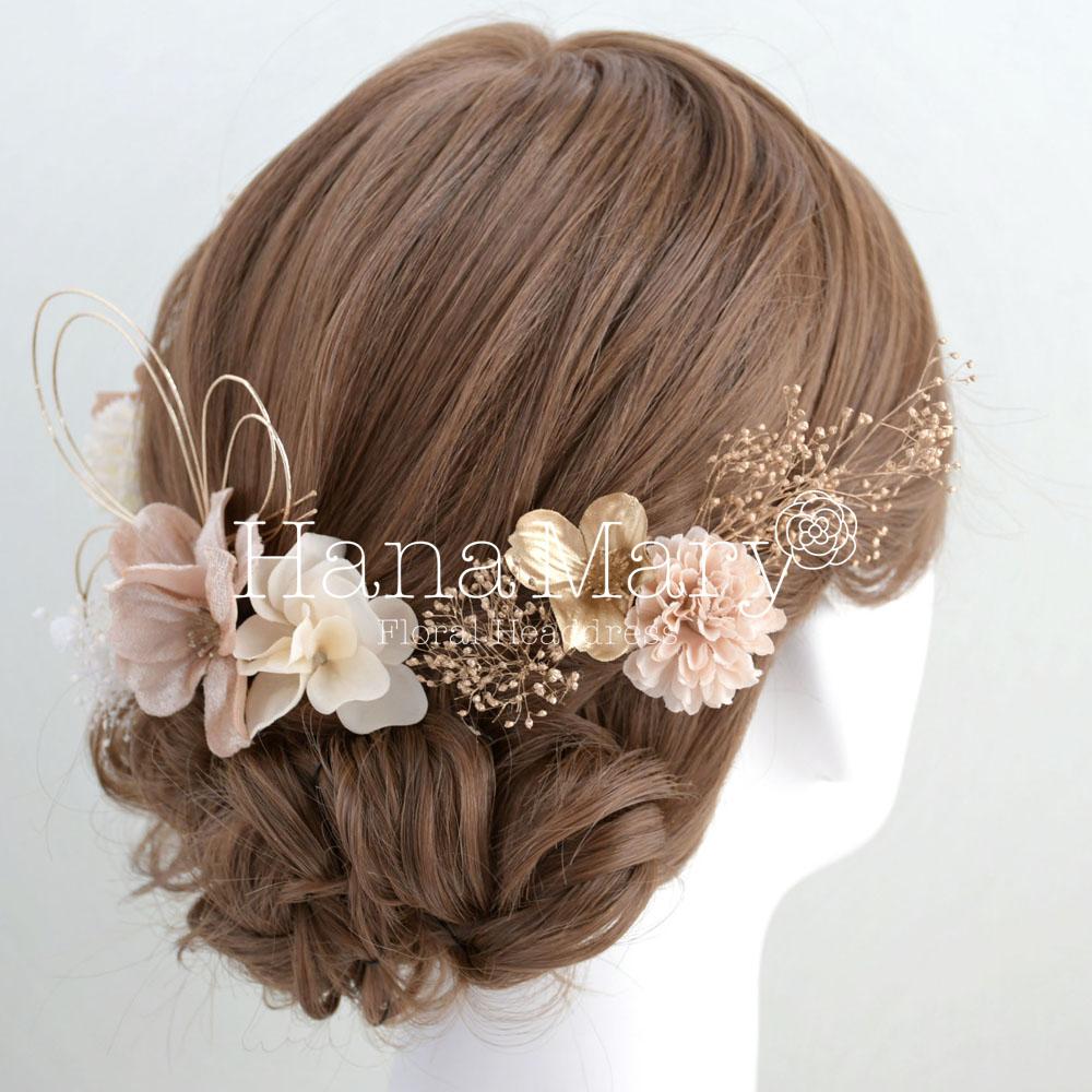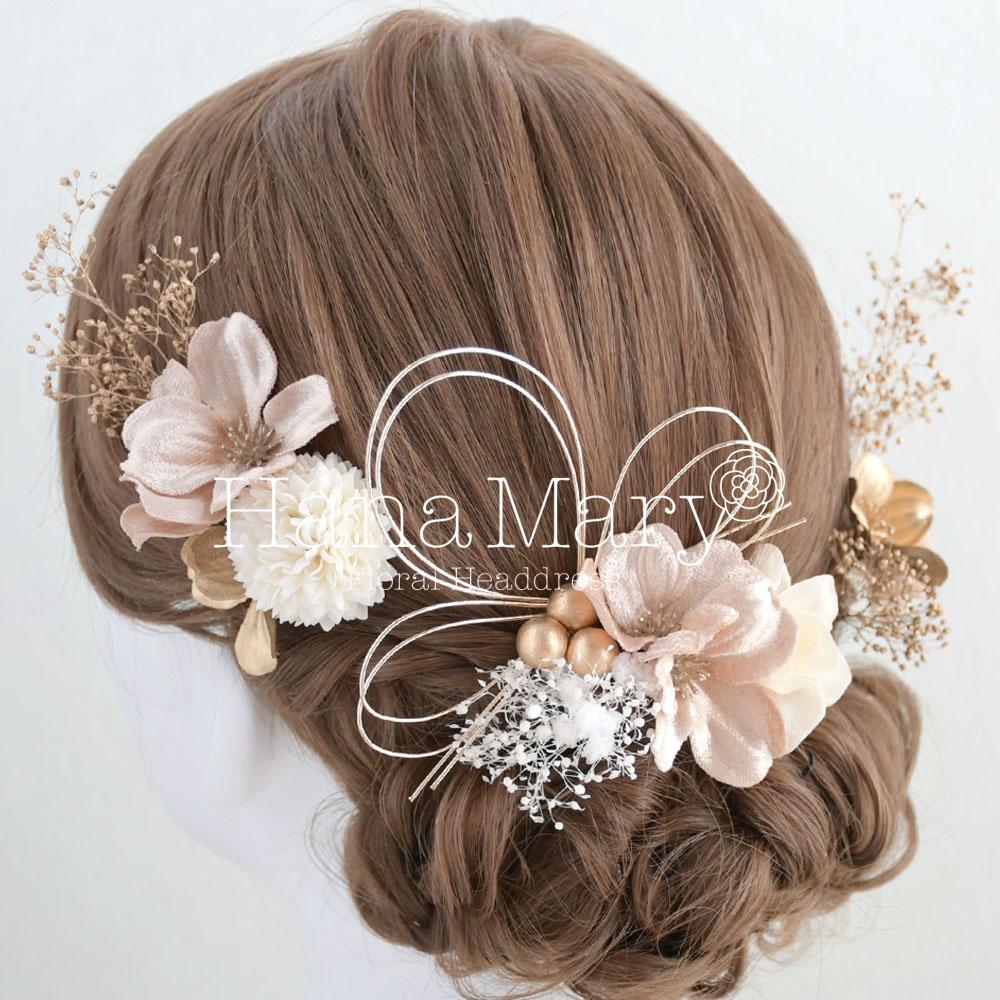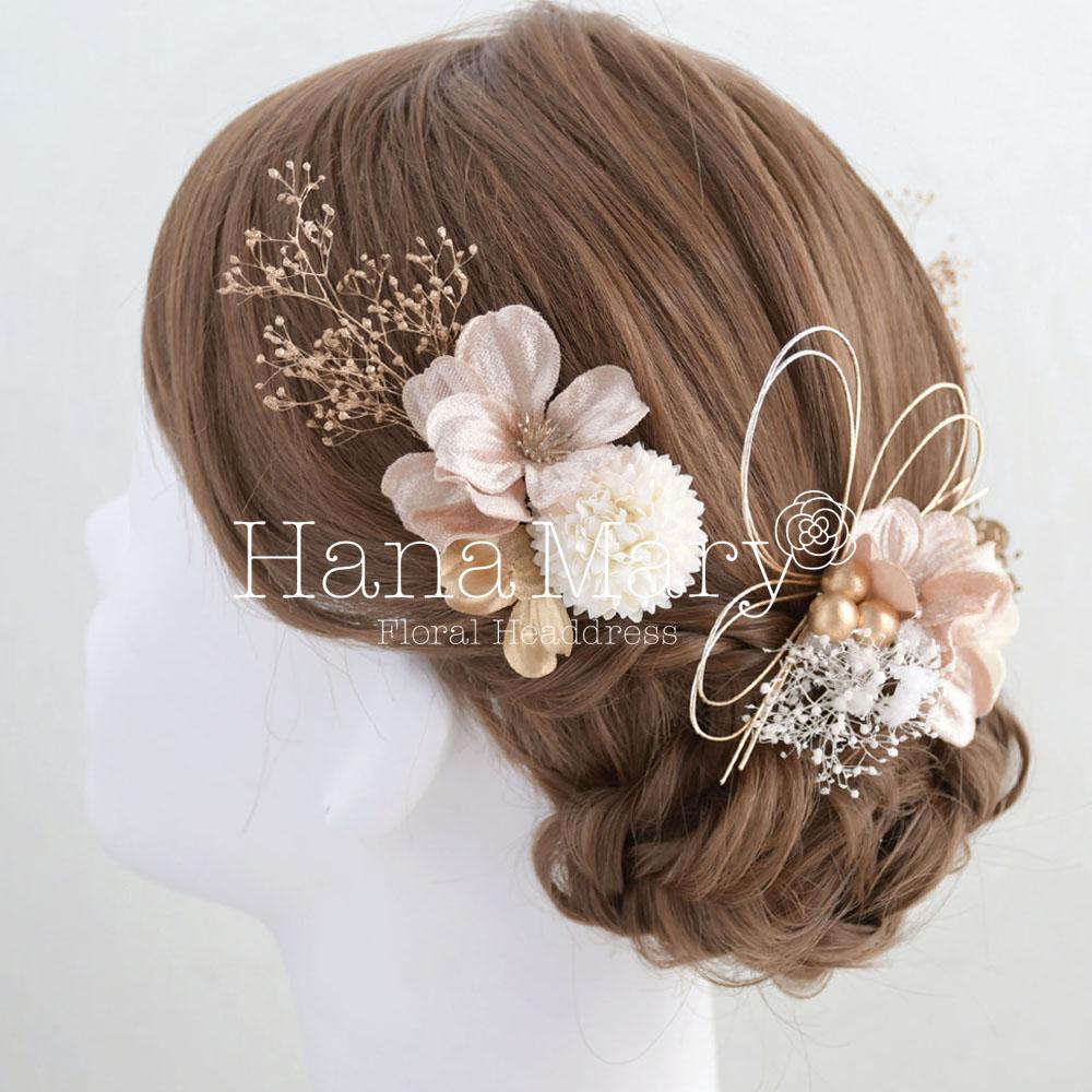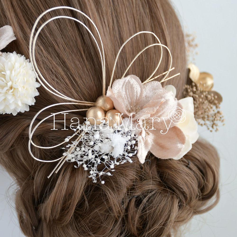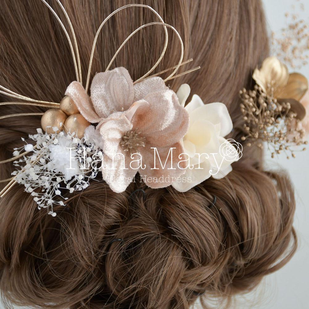 フローラルモダン【クラシカルゴールド 白】成人式 卒業式 結婚式 振袖 袴 髪飾り 着物