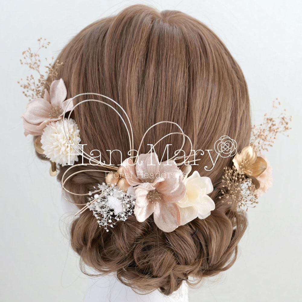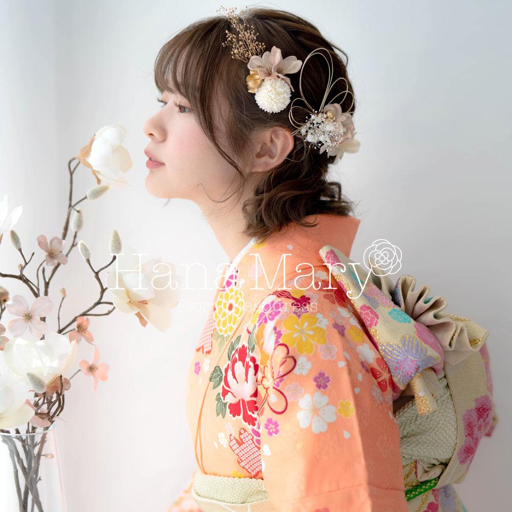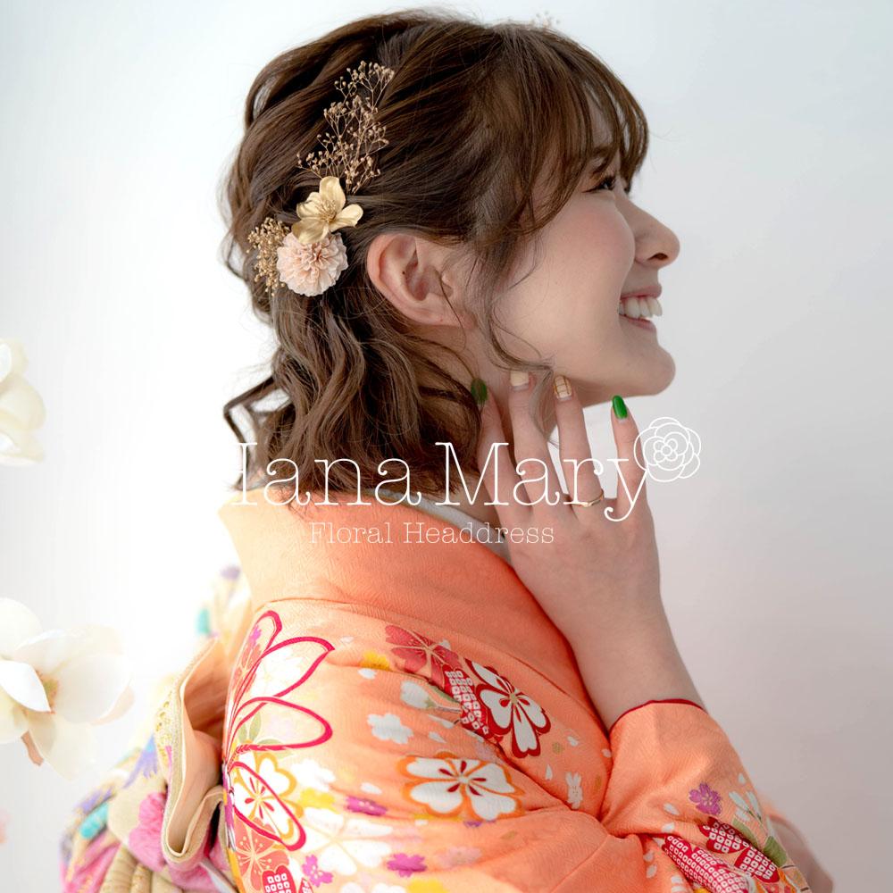 HanaMaryの髪飾りは生花をリアルに再現したアートフラワーと呼ばれるハイクオリティーな造花を使用しています。耐久性に優れ、成人式・卒業式やウェディングなどに何度でも繰り返し使用することができます。