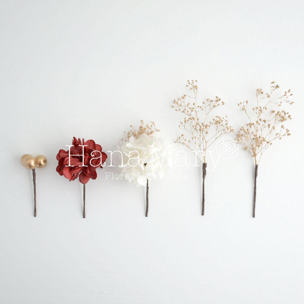 HanaMaryの髪飾りは生花をリアルに再現したアートフラワーと呼ばれるハイクオリティーな造花を使用しています。耐久性に優れ、成人式・卒業式やウェディングなどに何度でも繰り返し使用することができます。