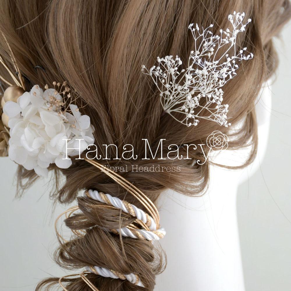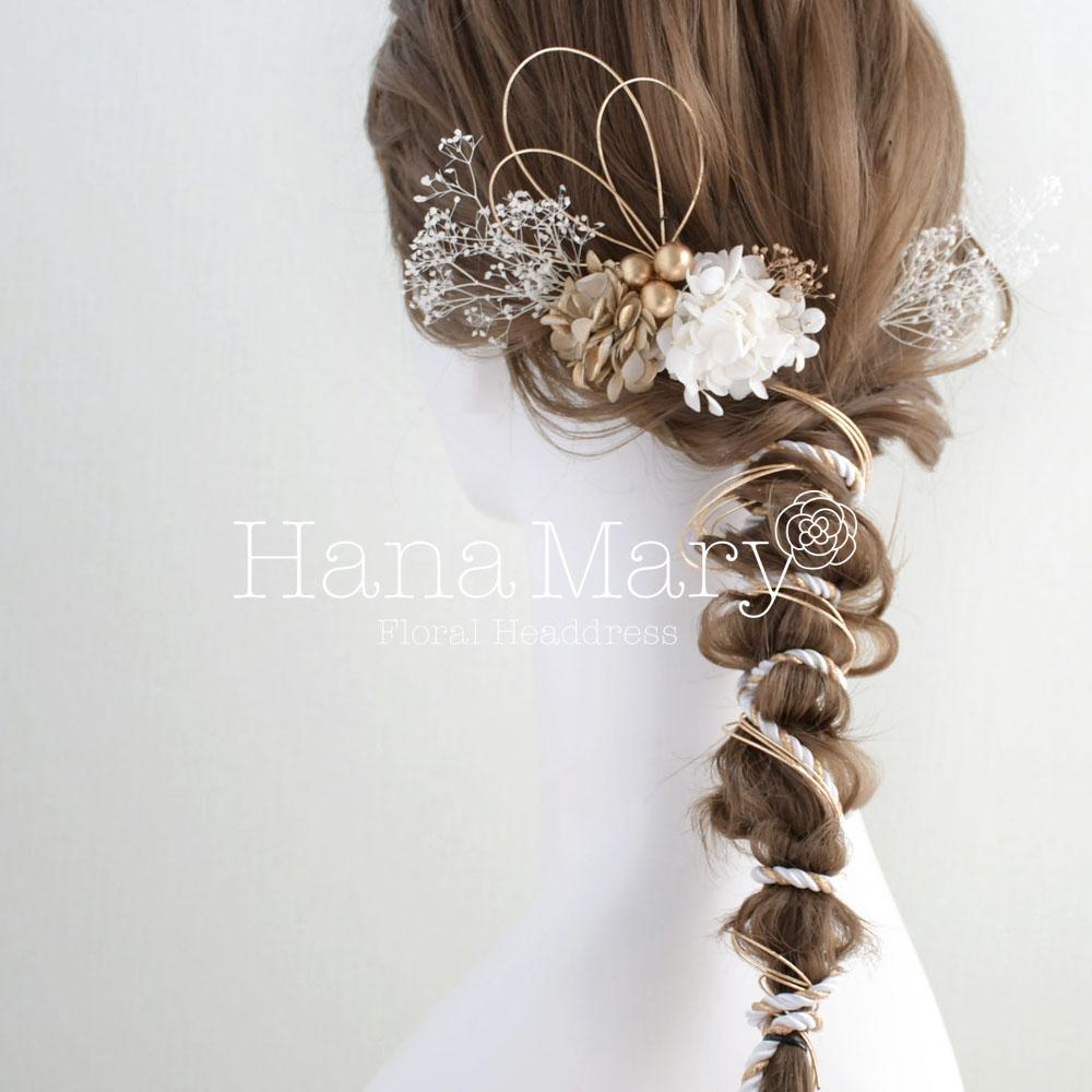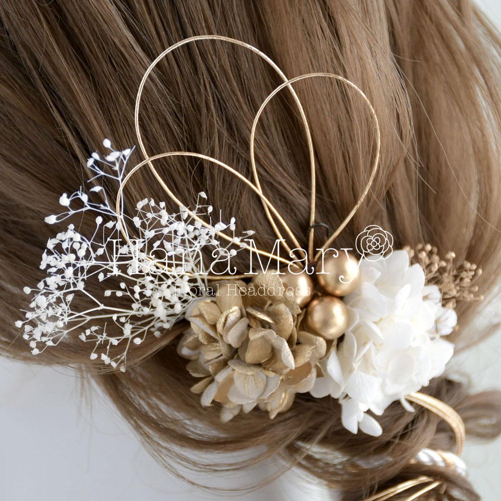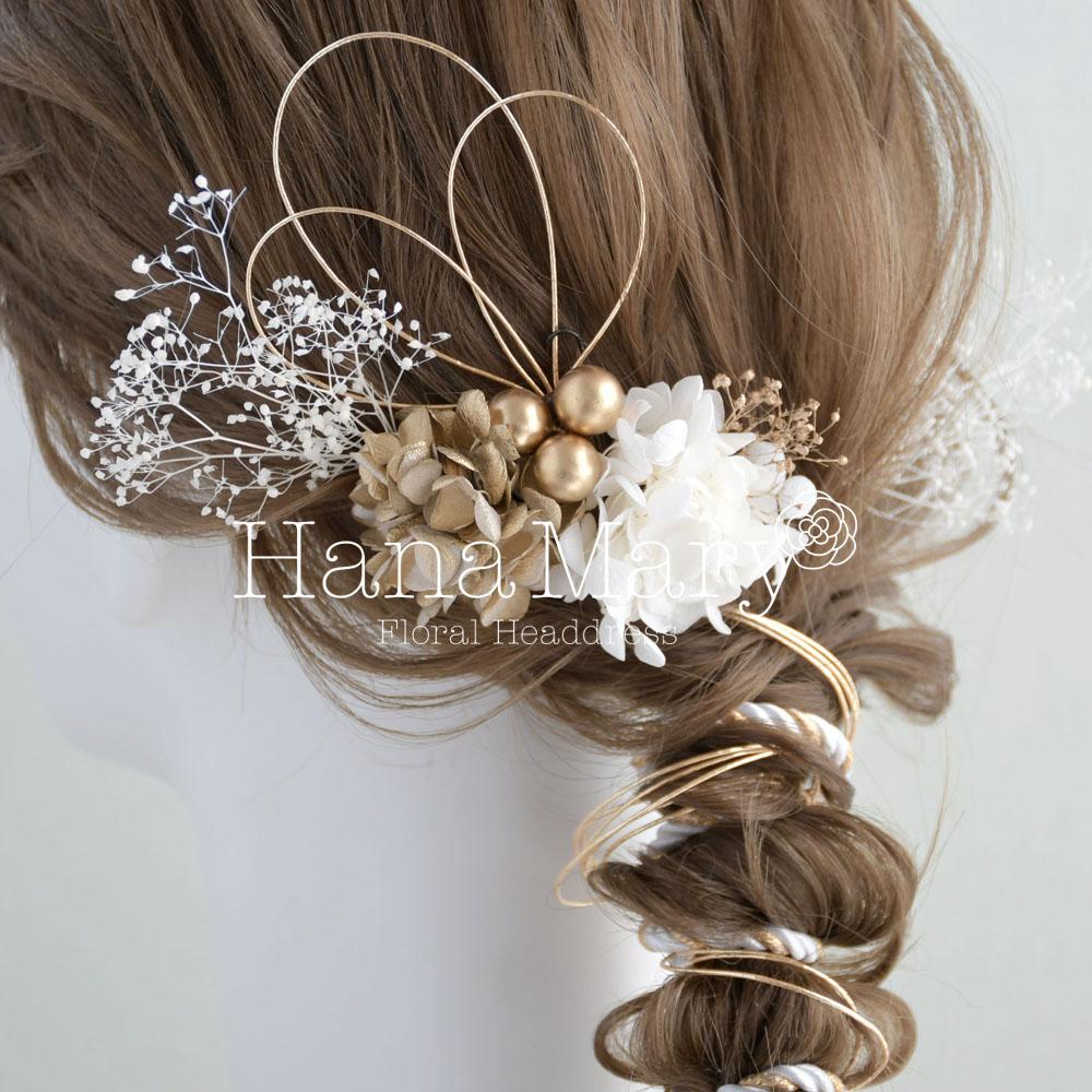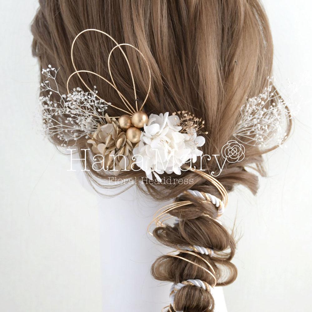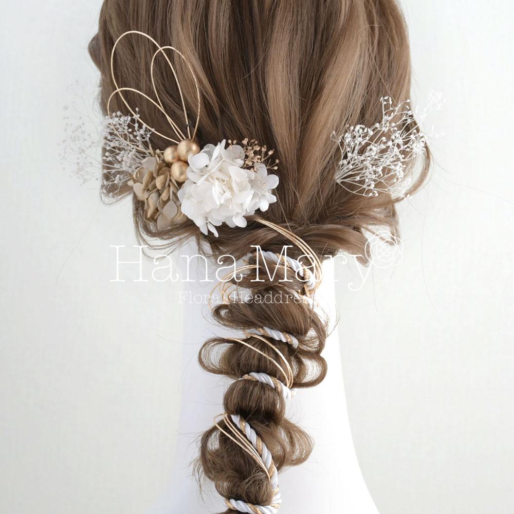髪飾り 卒業式 成人式 振袖 袴 着物 水引き アレンジ【白 ゴールド】結婚式