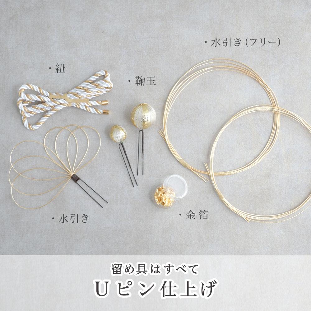 トレンドなヘアスタイルにも使いやすく、アレンジ用の水引きと紐をセットでお得に、お求め安くなっております。