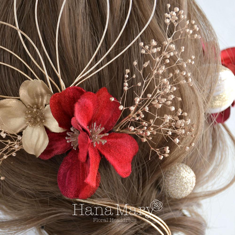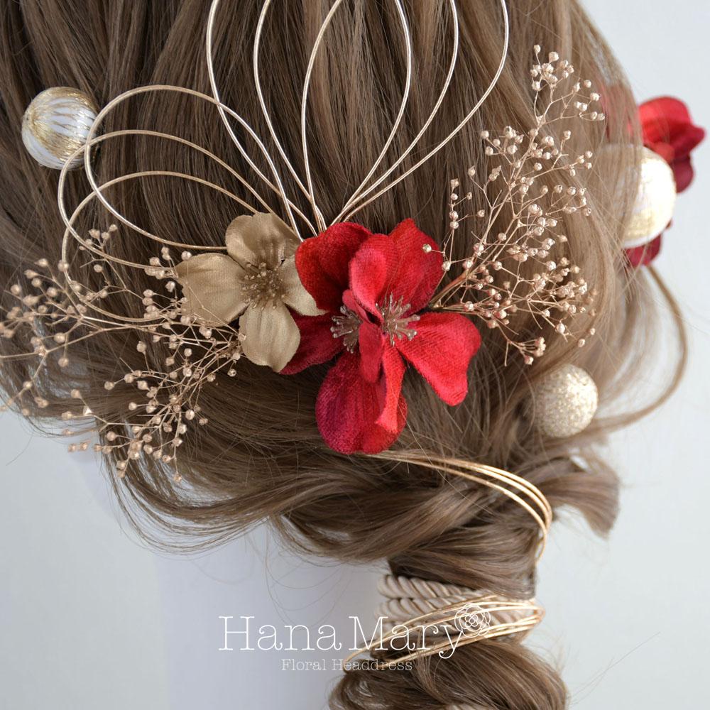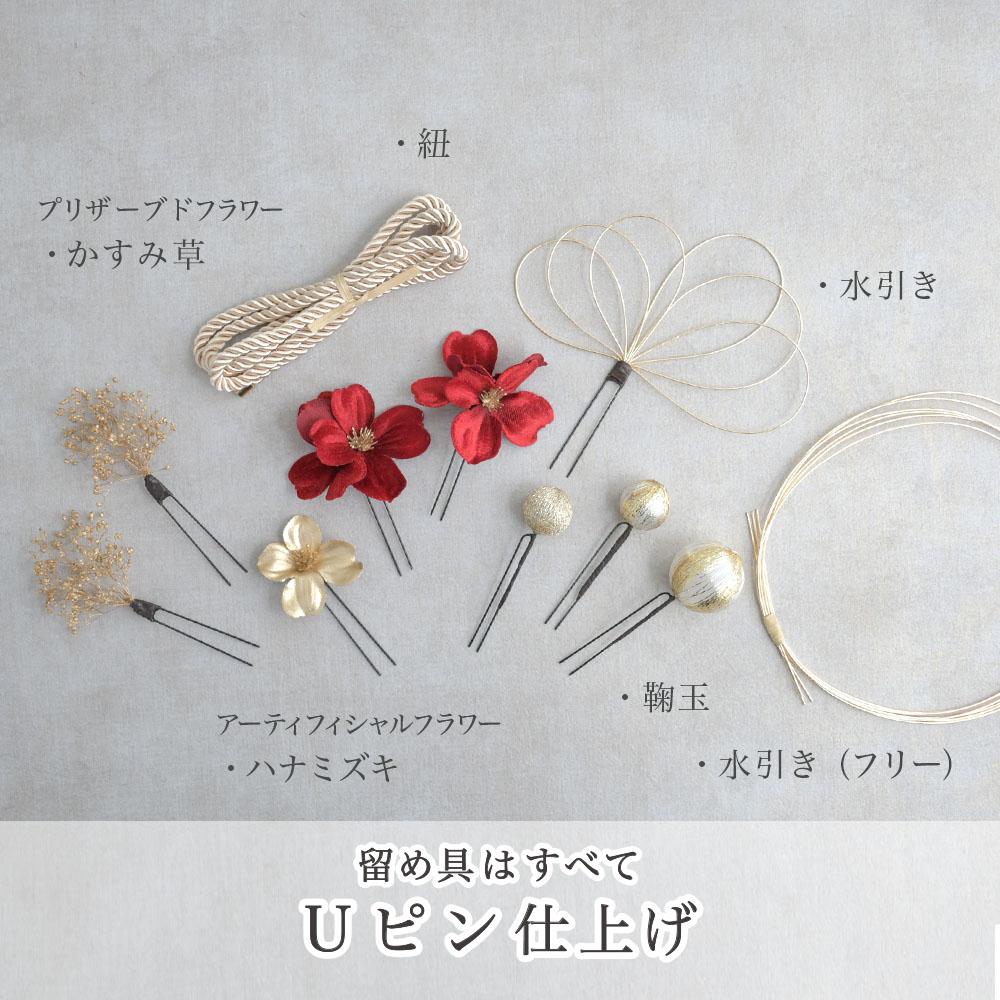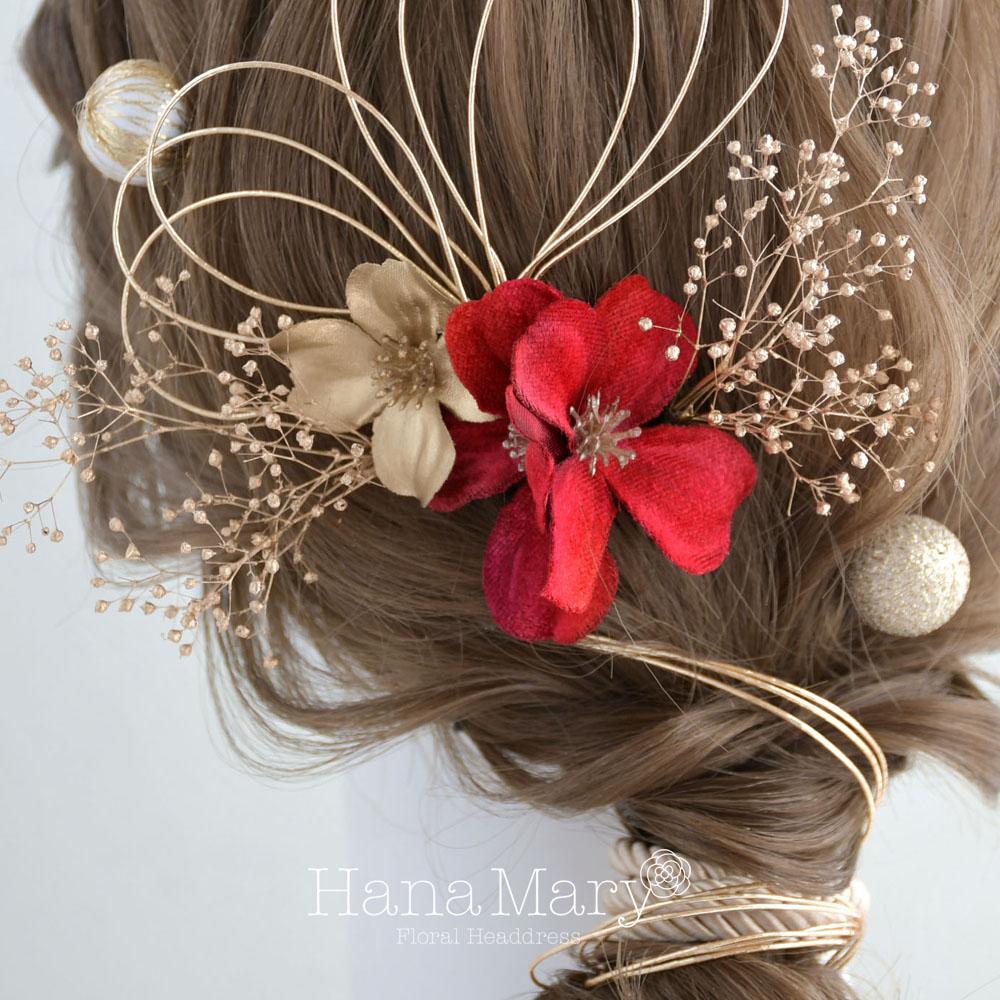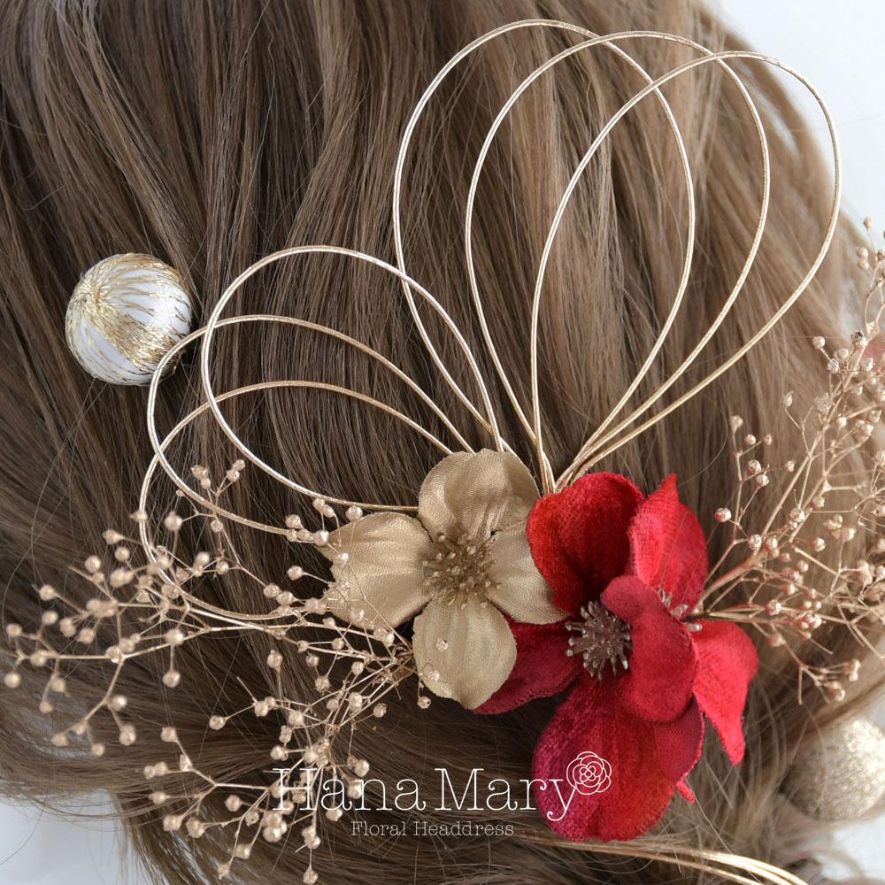 髪飾り 成人式 卒業式 水引き 和玉 鞠玉 【ハナミズキとかすみ草】モダンレッド