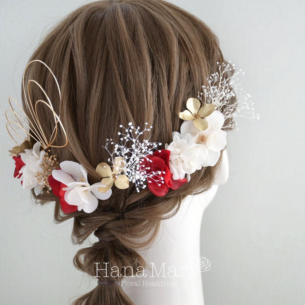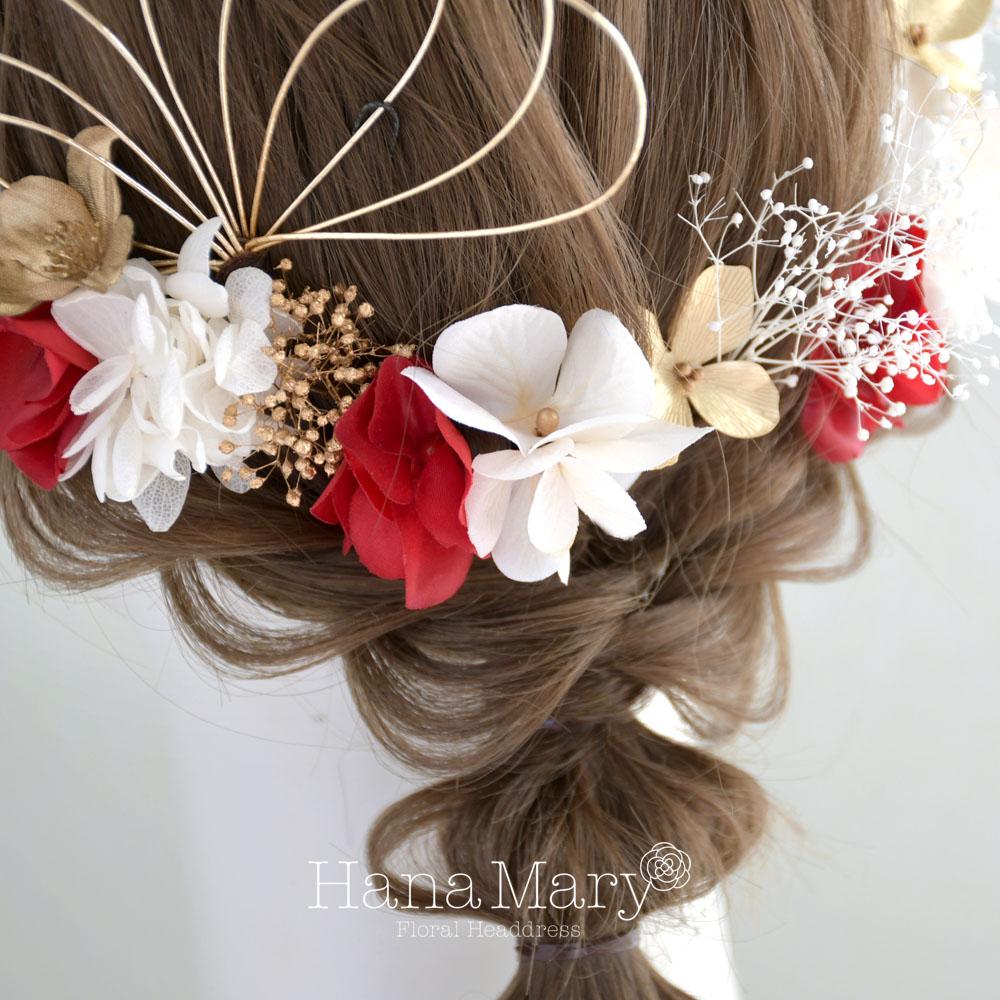 HanaMaryの髪飾りは生花をリアルに再現したアートフラワーと呼ばれるハイクオリティーな造花を使用しています。耐久性に優れ、成人式・卒業式やウェディングなどに何度でも繰り返し使用することができます。