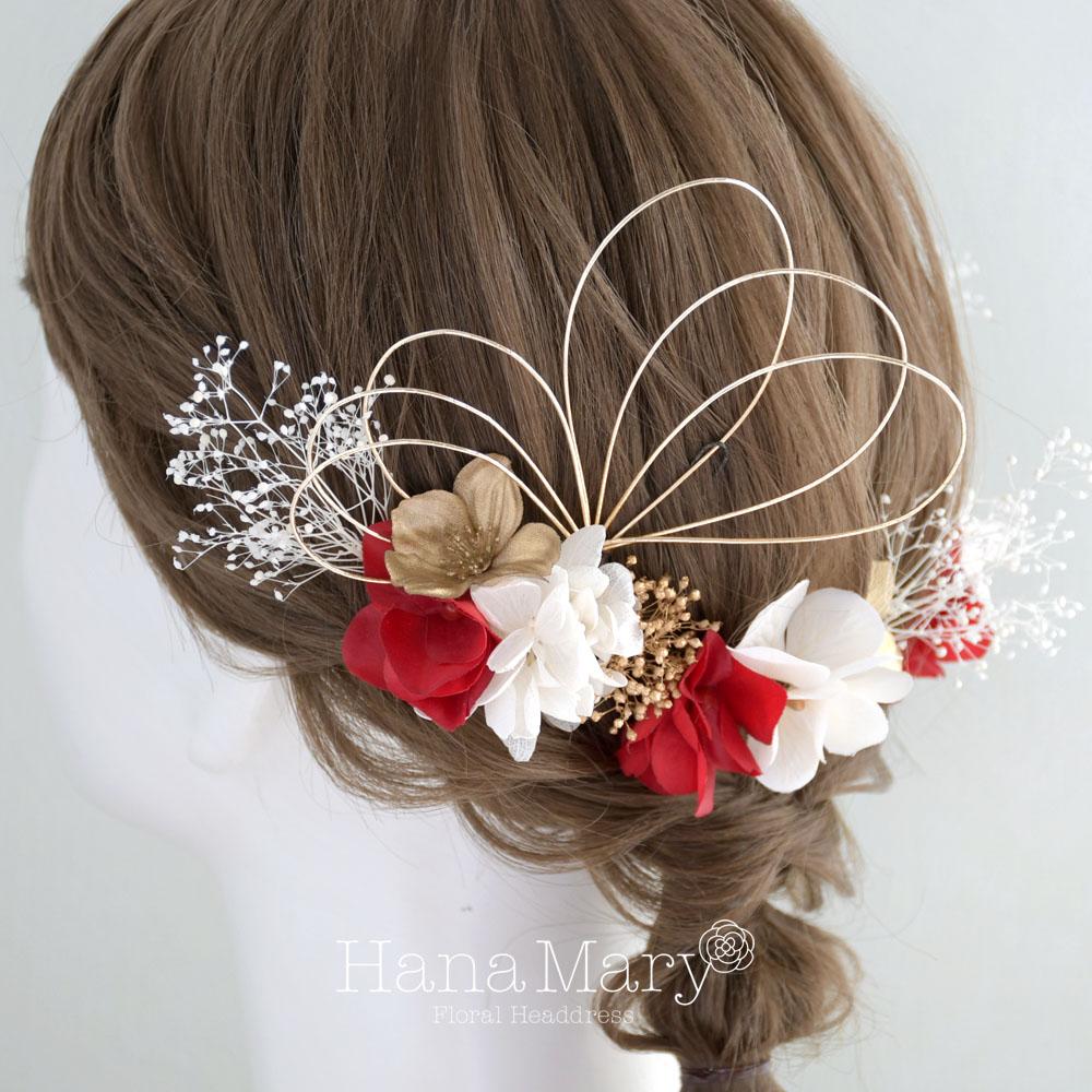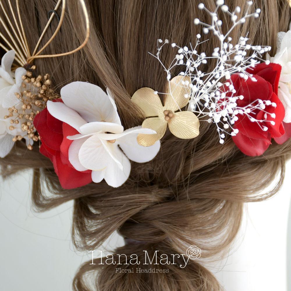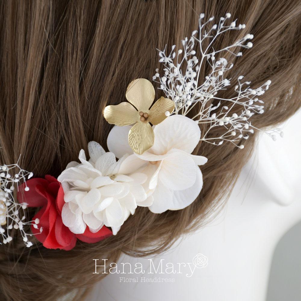 小花きらめく髪飾り 成人式 卒業式 結婚式【門出に赤 白】振袖 袴 髪飾り