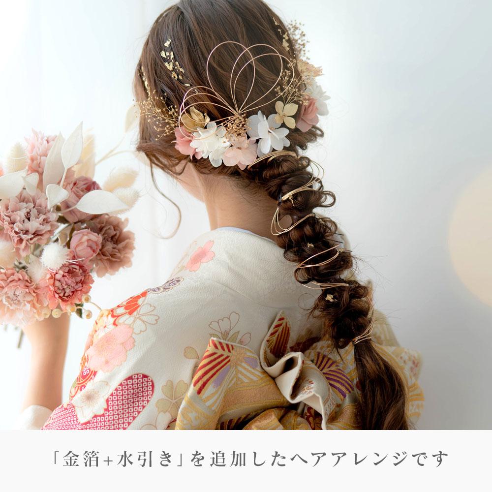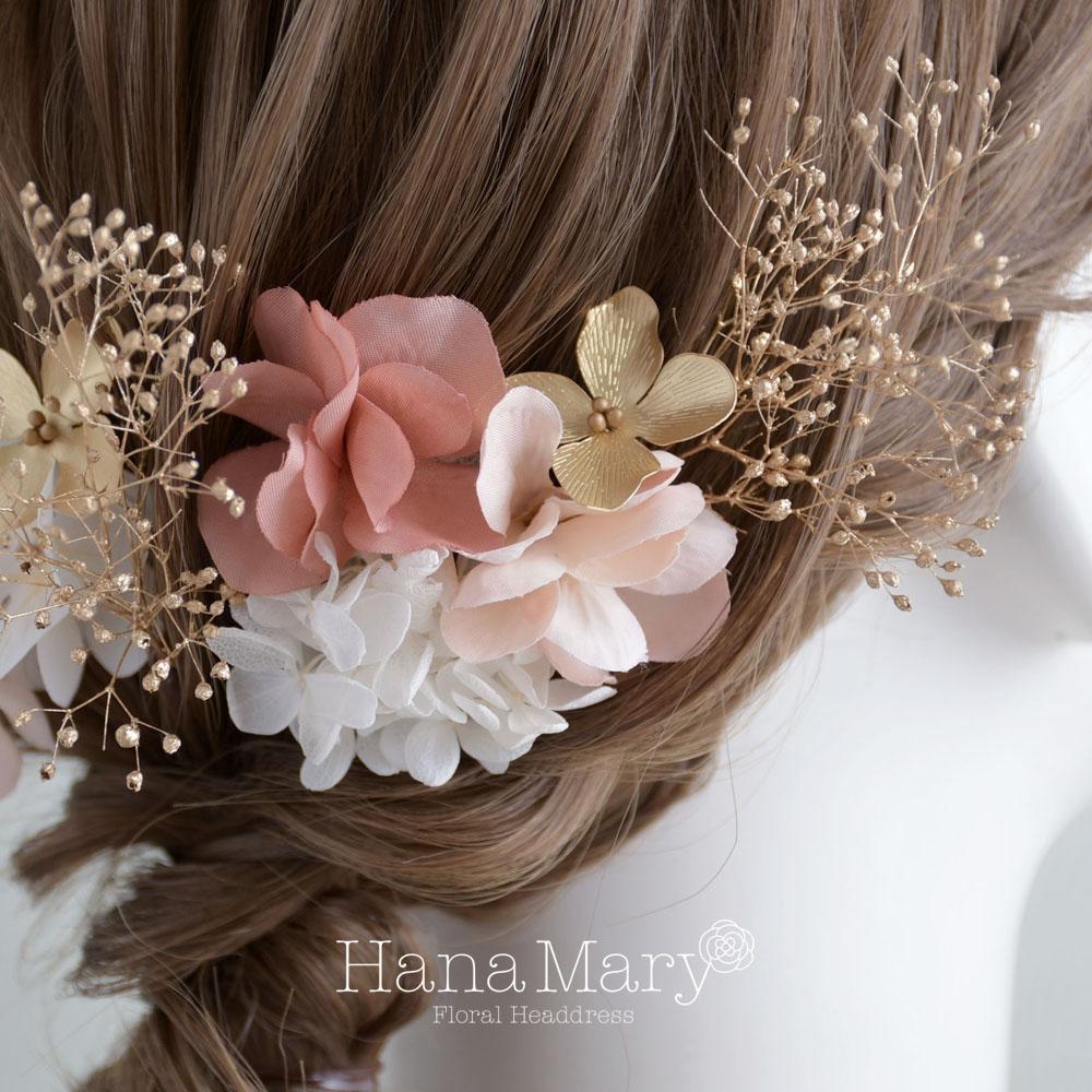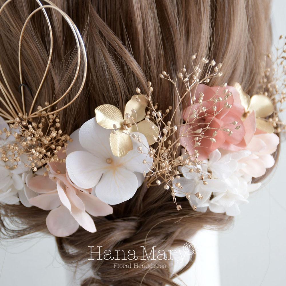 HanaMaryの髪飾りは生花をリアルに再現したアートフラワーと呼ばれるハイクオリティーな造花を使用しています。耐久性に優れ、成人式・卒業式やウェディングなどに何度でも繰り返し使用することができます。