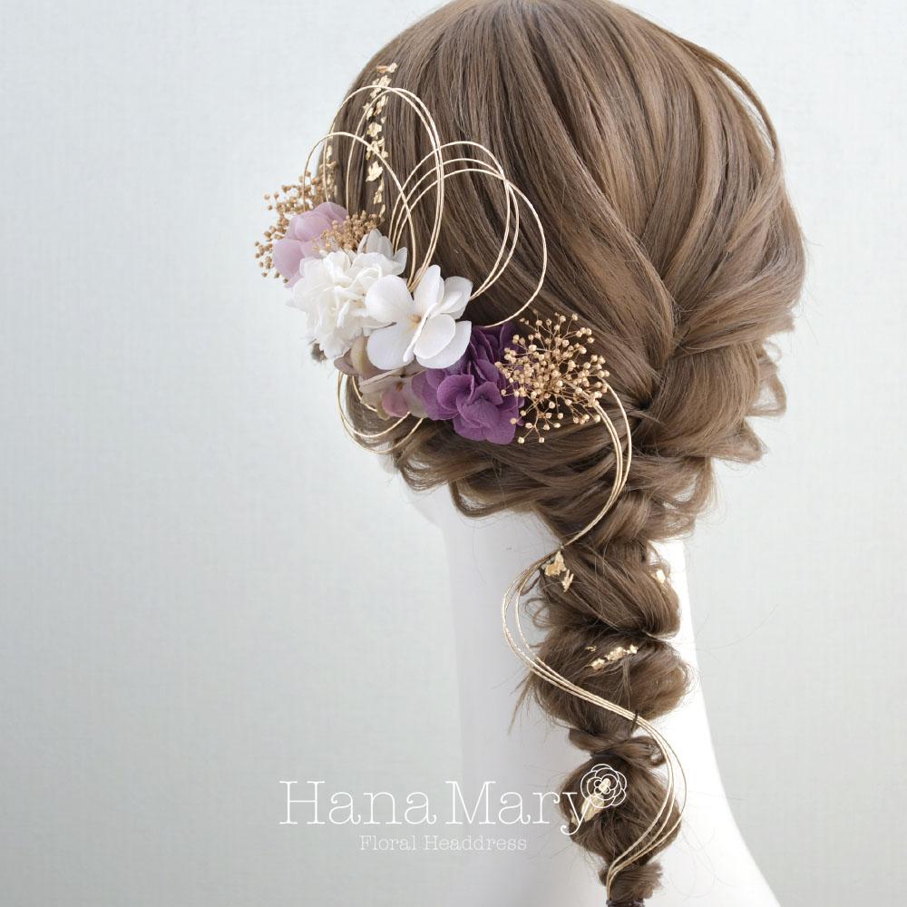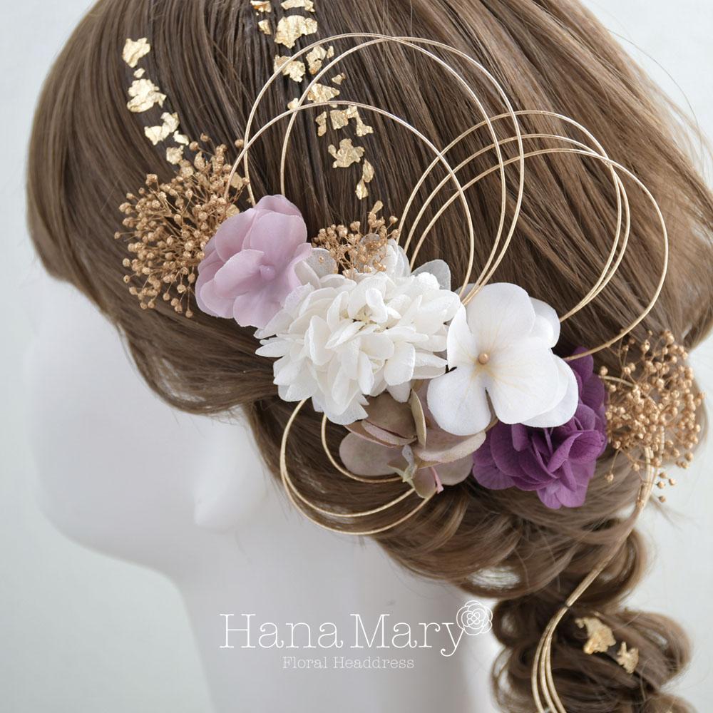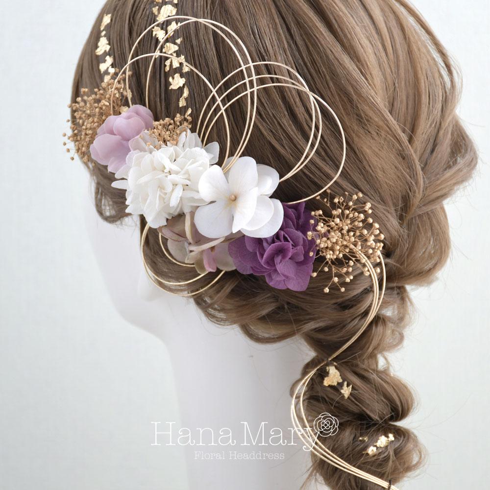 金箔+水引きセット 髪飾り 卒業式 成人式 結婚式【モダンパープル】振袖 袴 髪飾り 紫