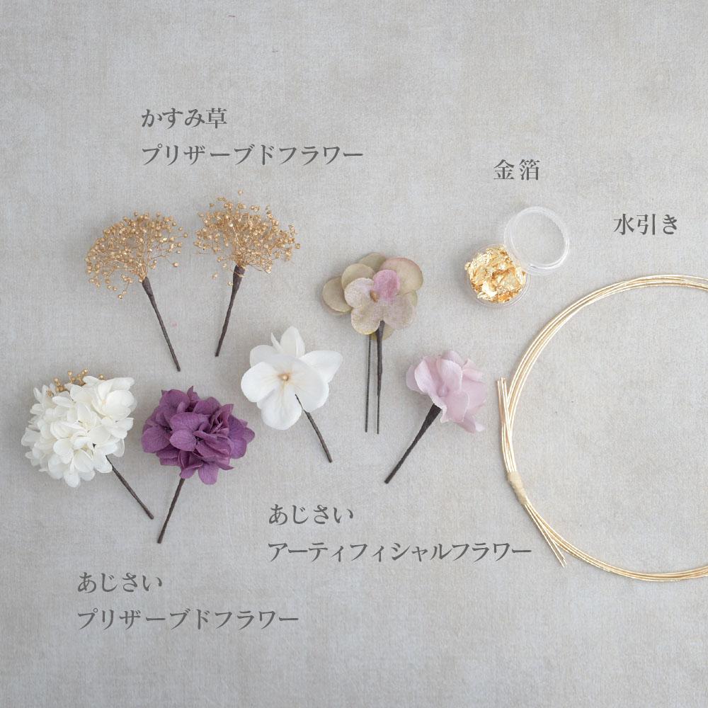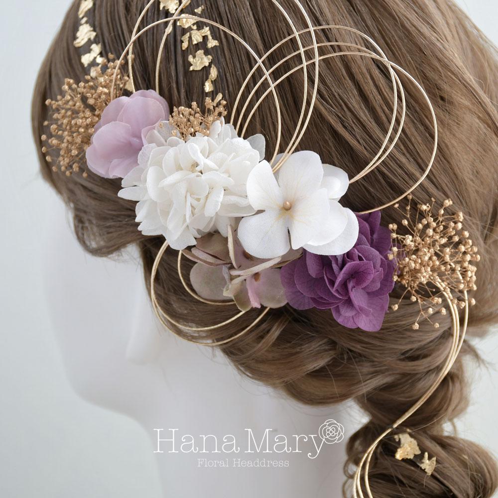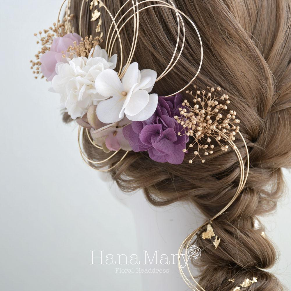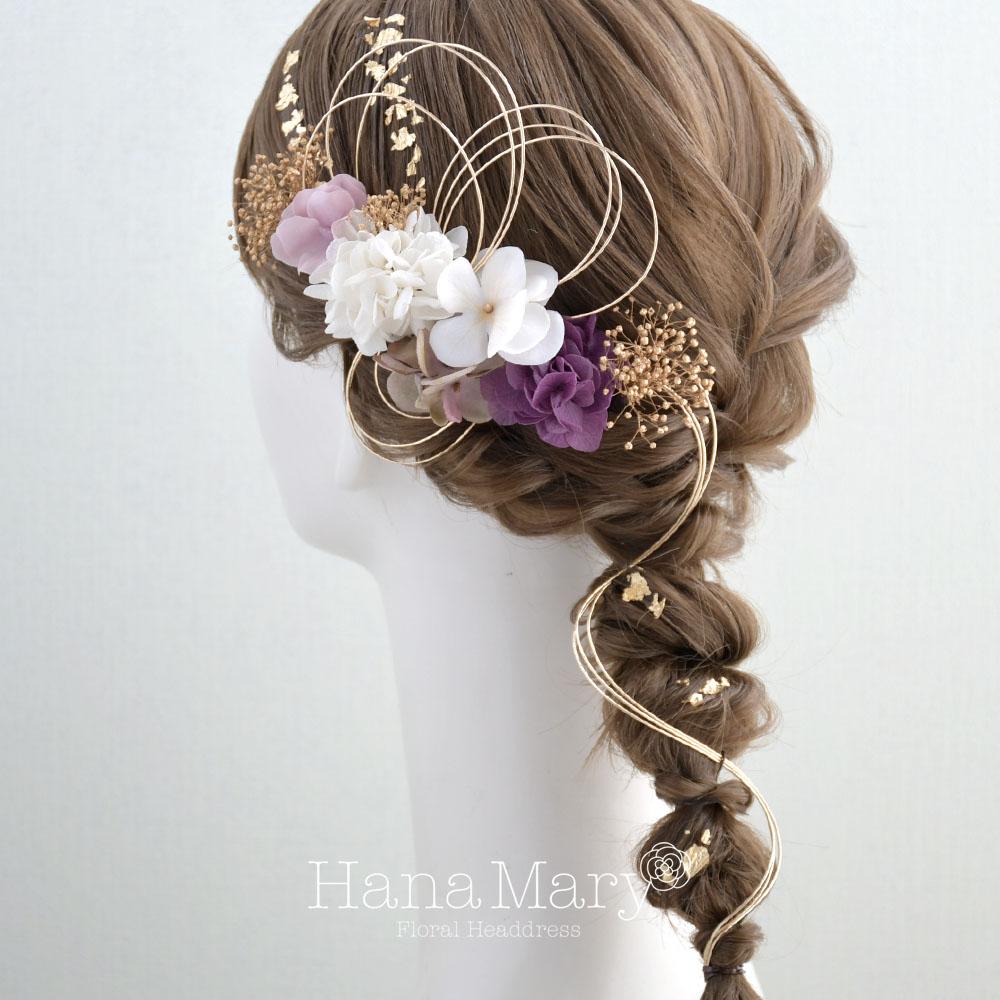 金箔+水引きセット 髪飾り 卒業式 成人式 結婚式【モダンパープル】振袖 袴 髪飾り 紫