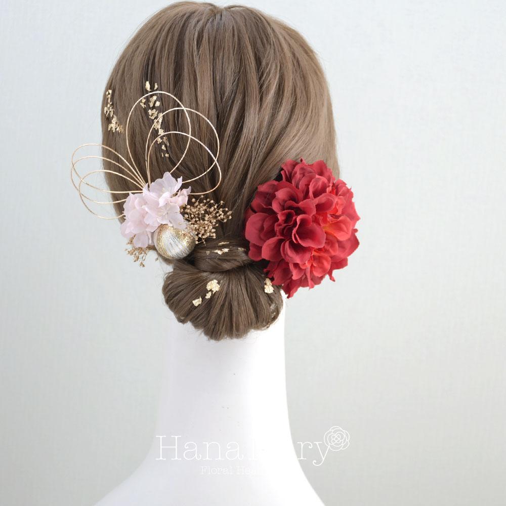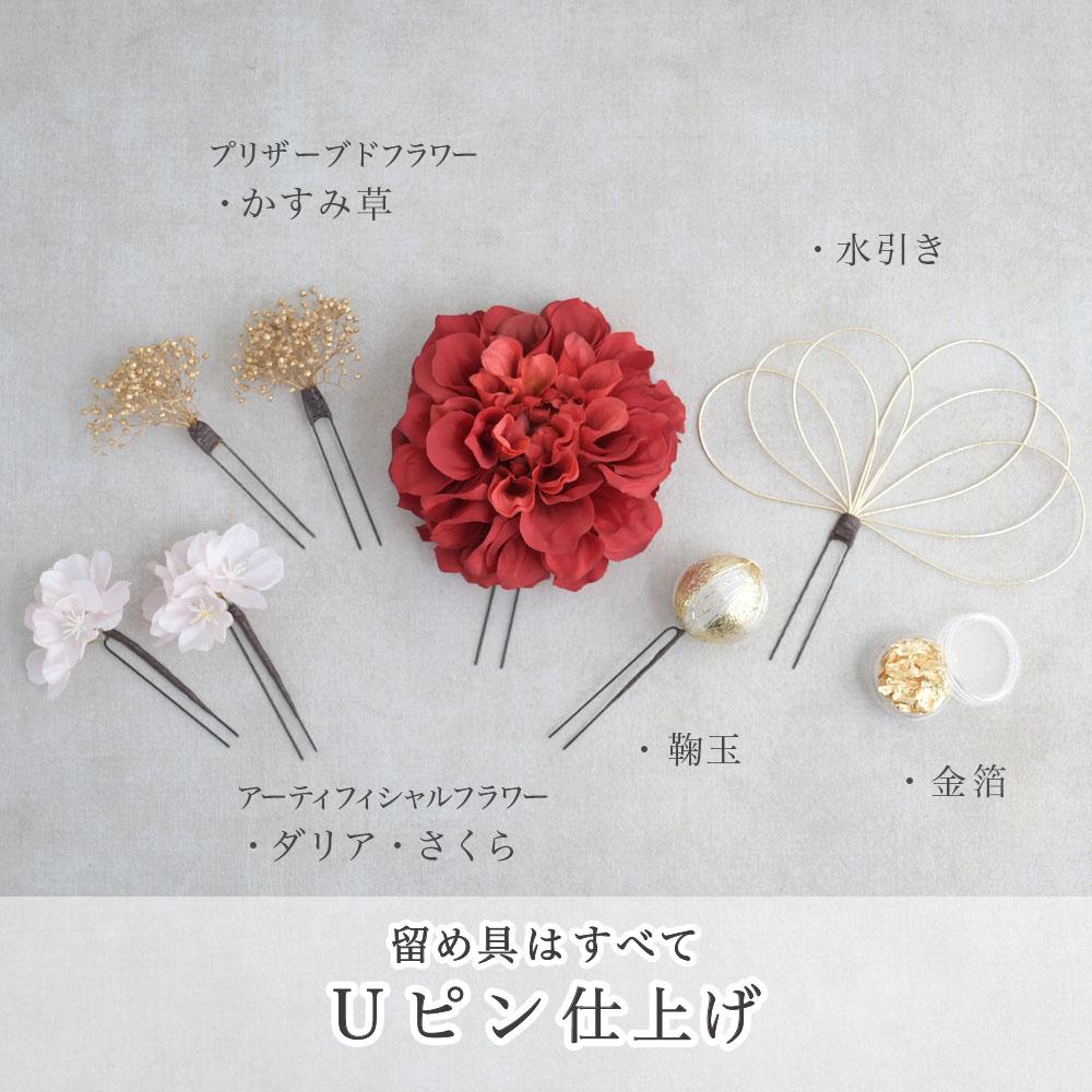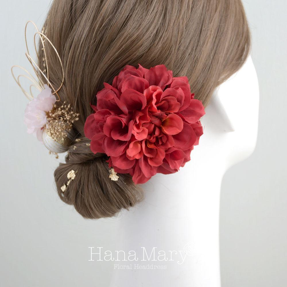 ダリアと桜 髪飾り 成人式 卒業式 振袖 袴 着物【さくら サクラ】水引き 和装