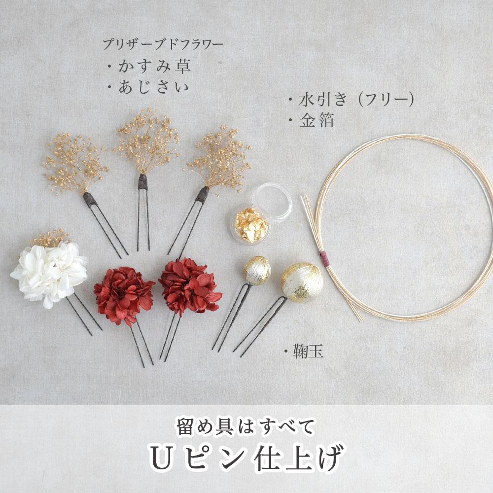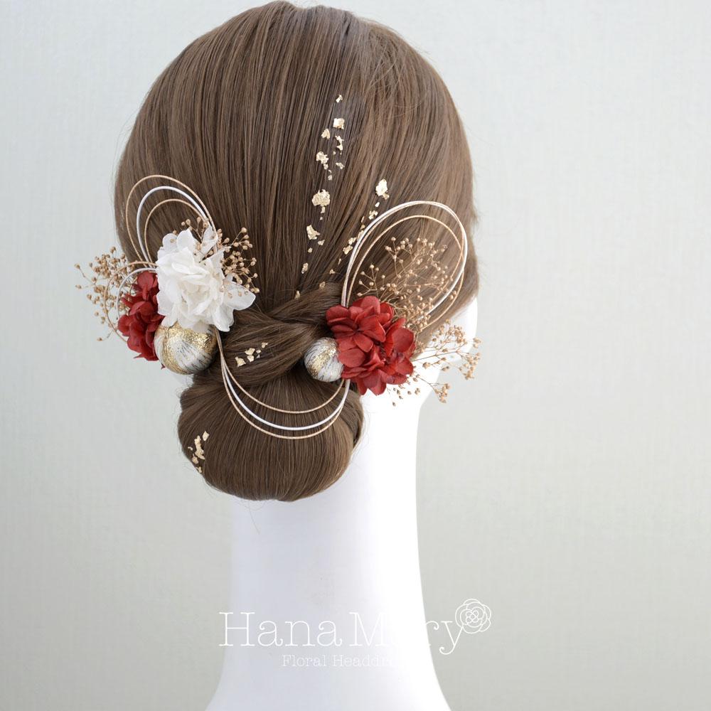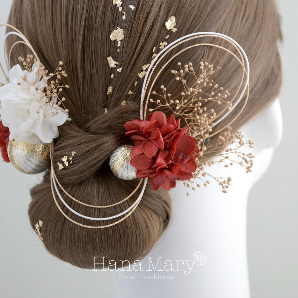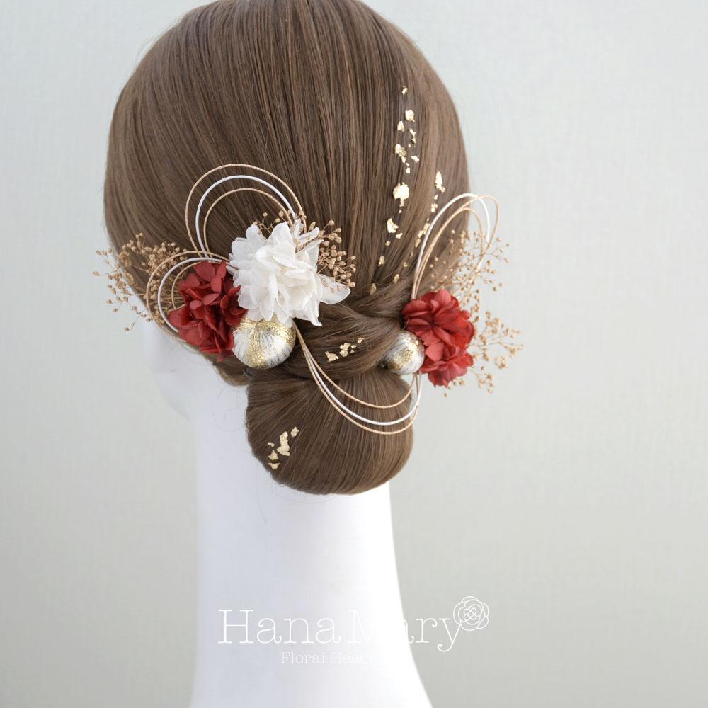 鞠玉とアジサイの髪飾り 卒業式 成人式 振袖 袴 結婚式【赤 白】水引き
