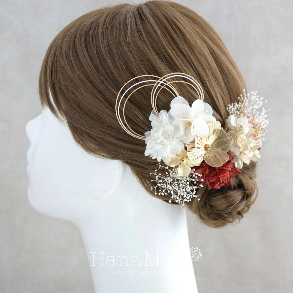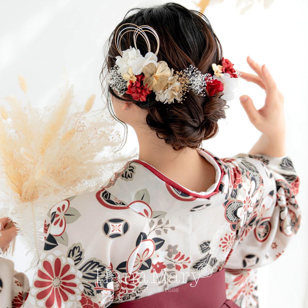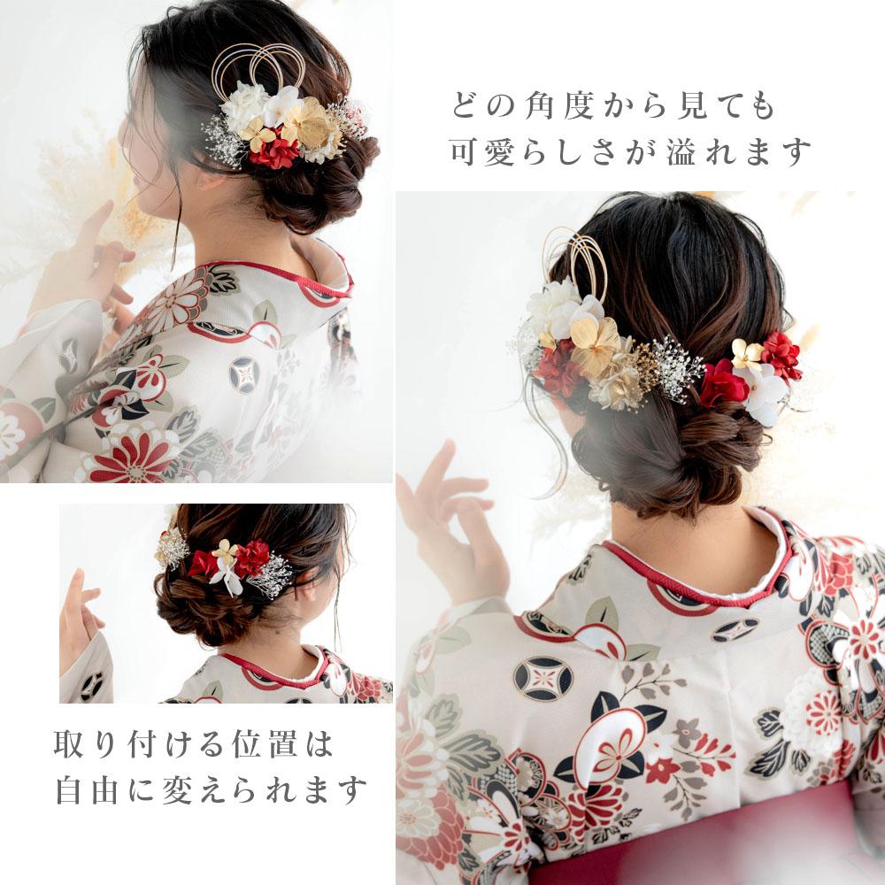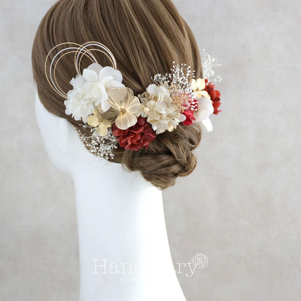 小花華やぐプリザの髪飾り 成人式 卒業式 結婚式【お祝い紅白】振袖 袴 着物 水引き