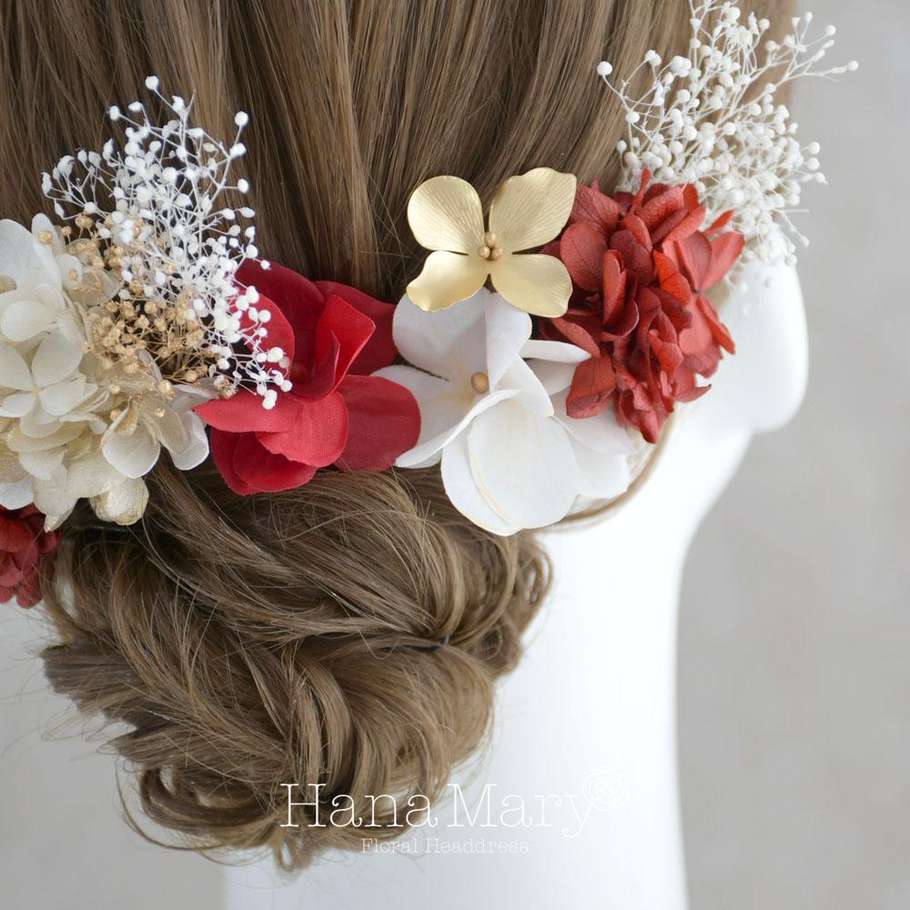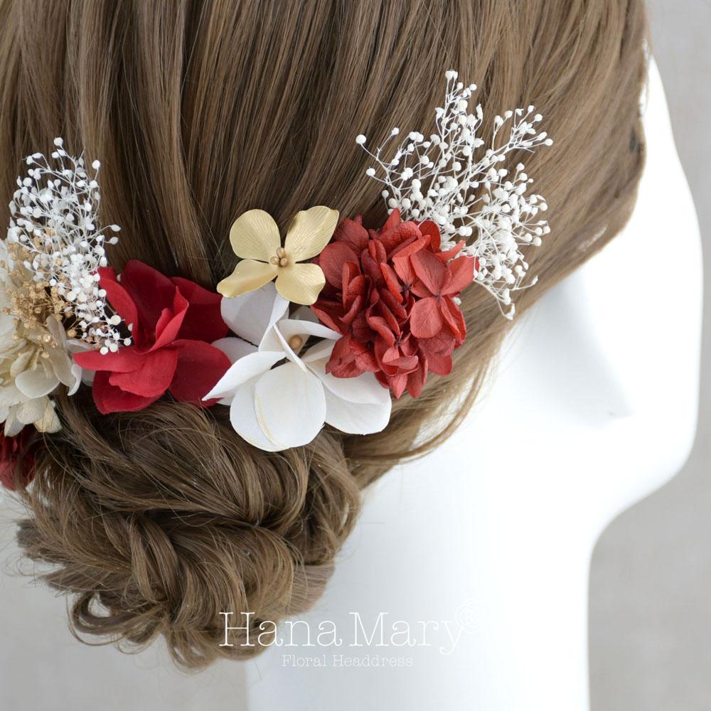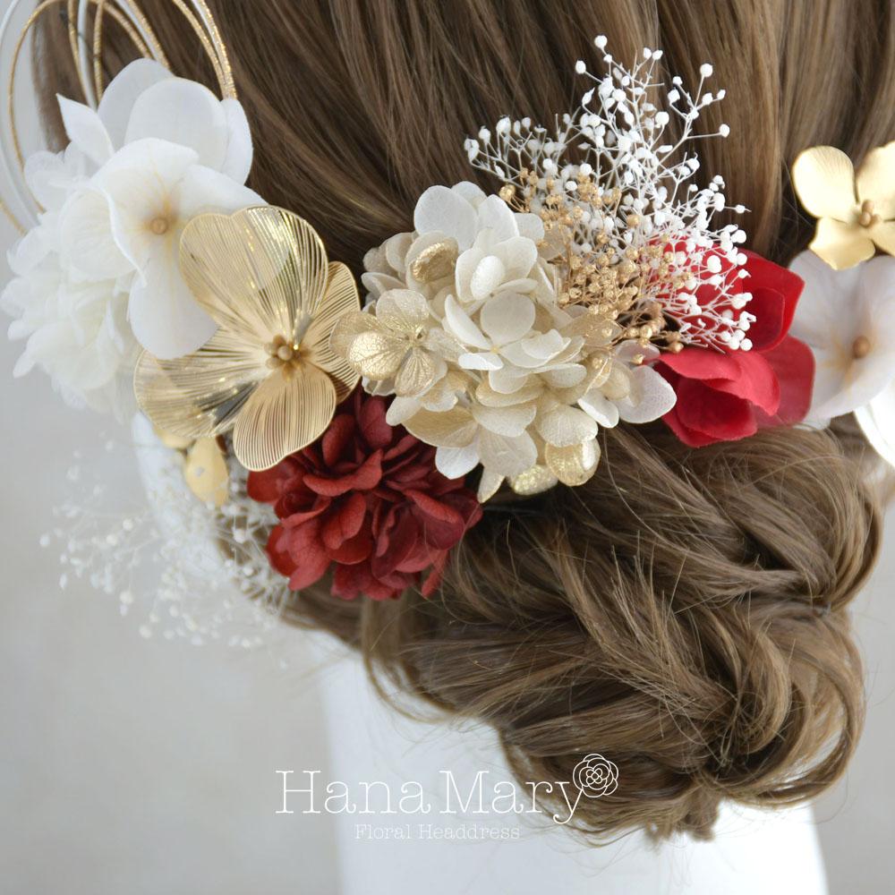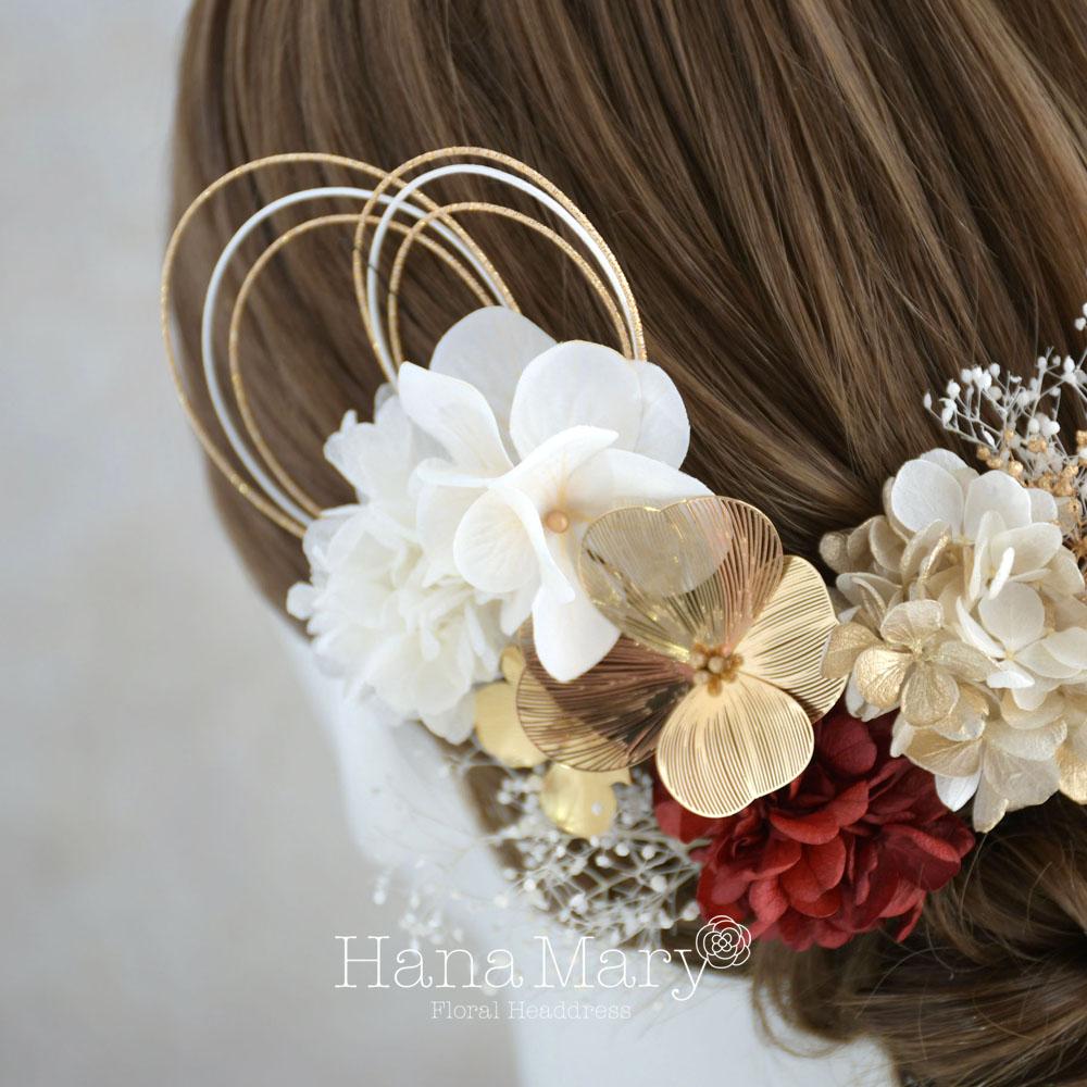 小花華やぐプリザの髪飾り 成人式 卒業式 結婚式【お祝い紅白】振袖 袴 着物 水引き