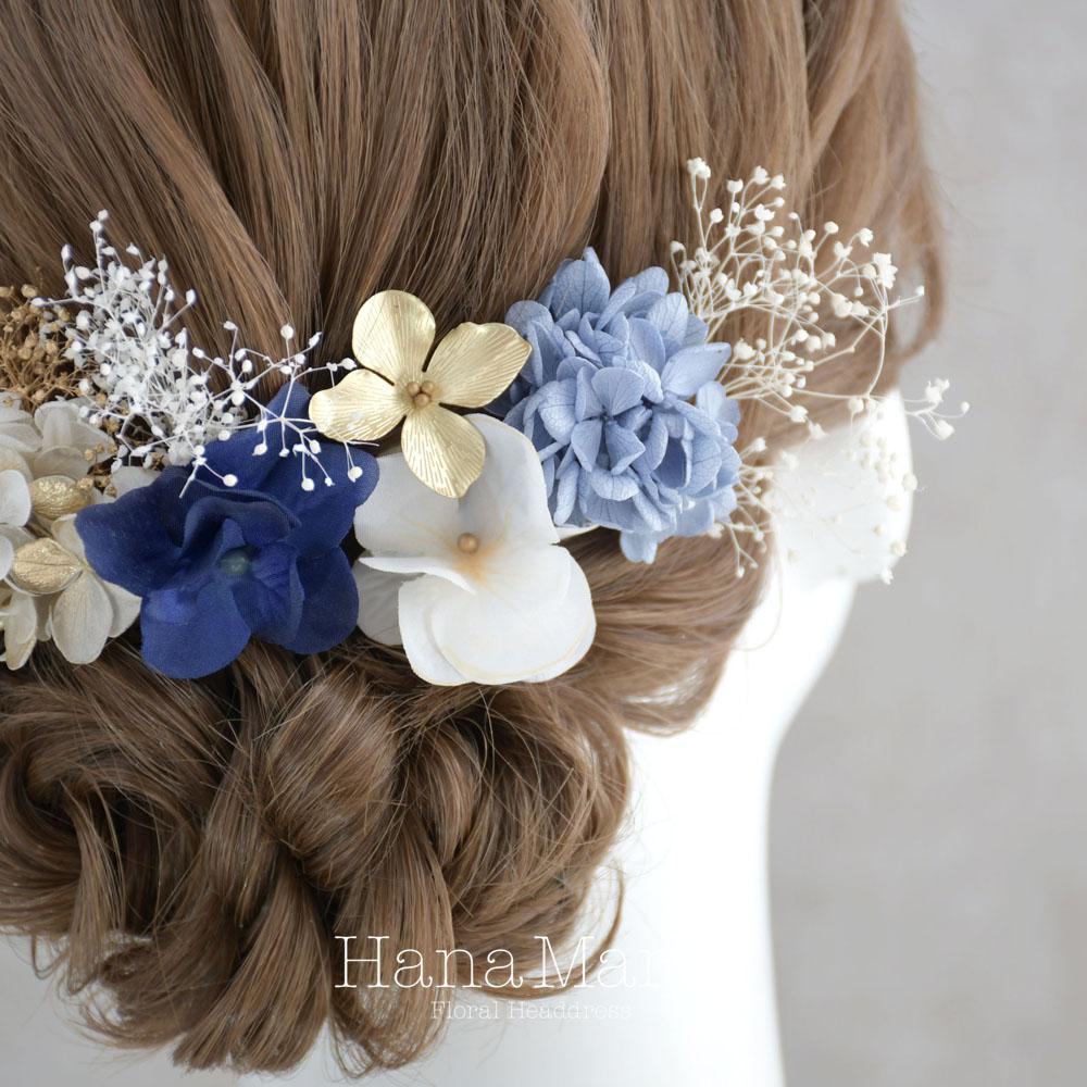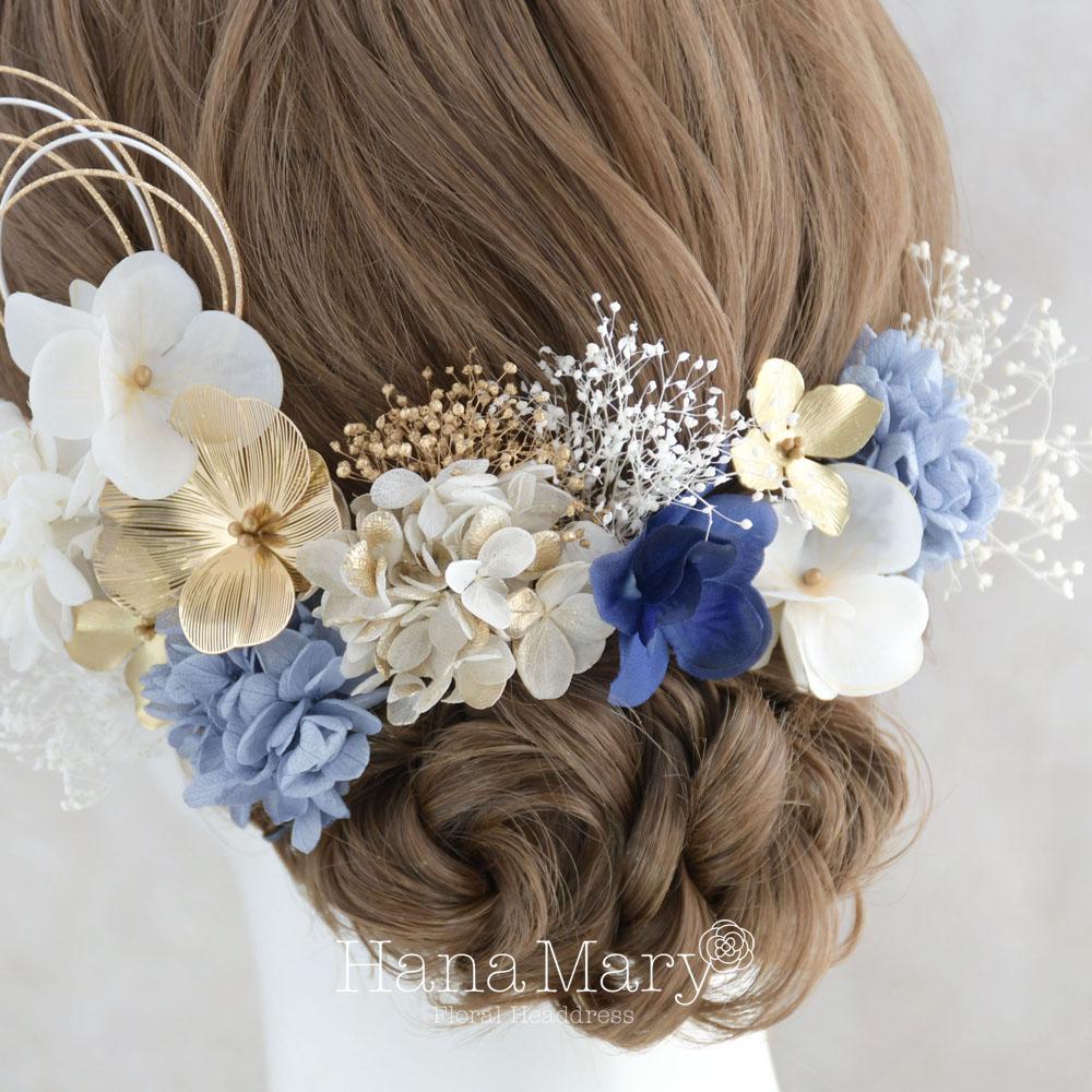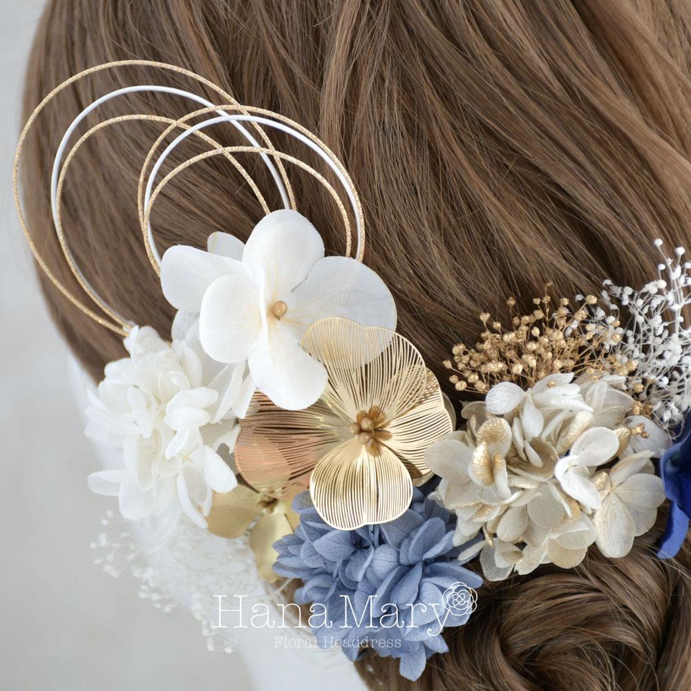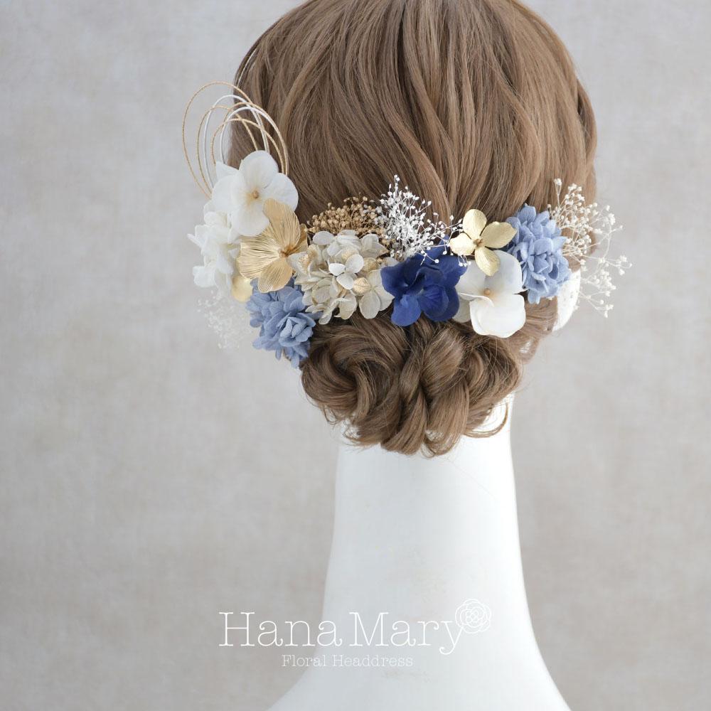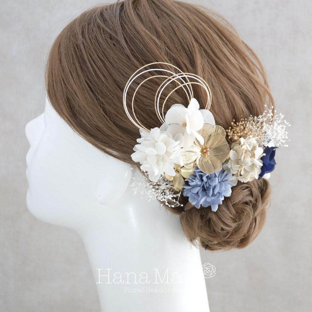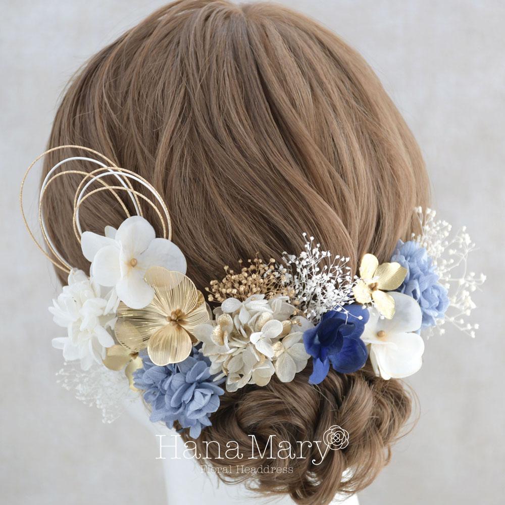 小花華やぐプリザの髪飾り 成人式 卒業式 結婚式【青】振袖 袴 着物 水引き