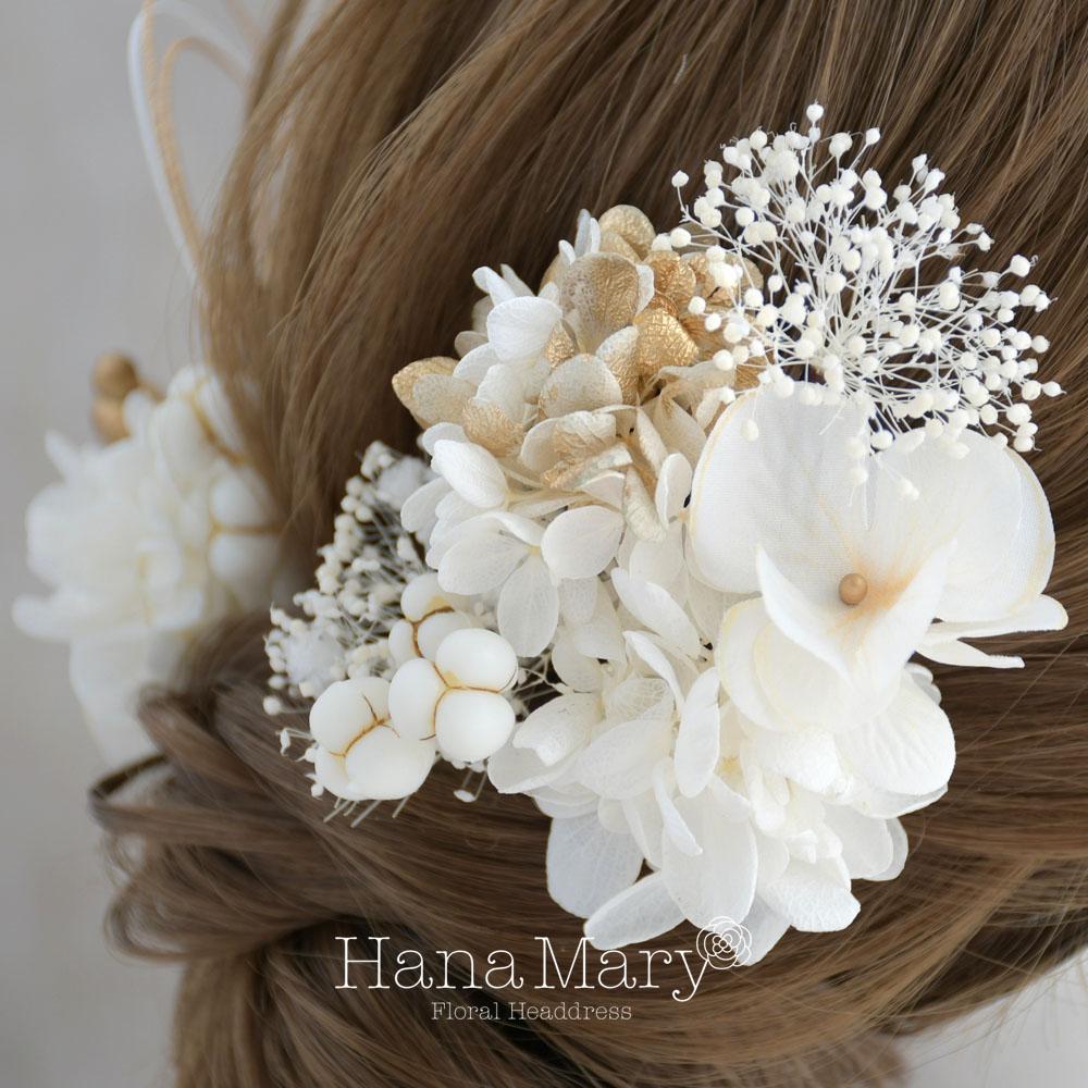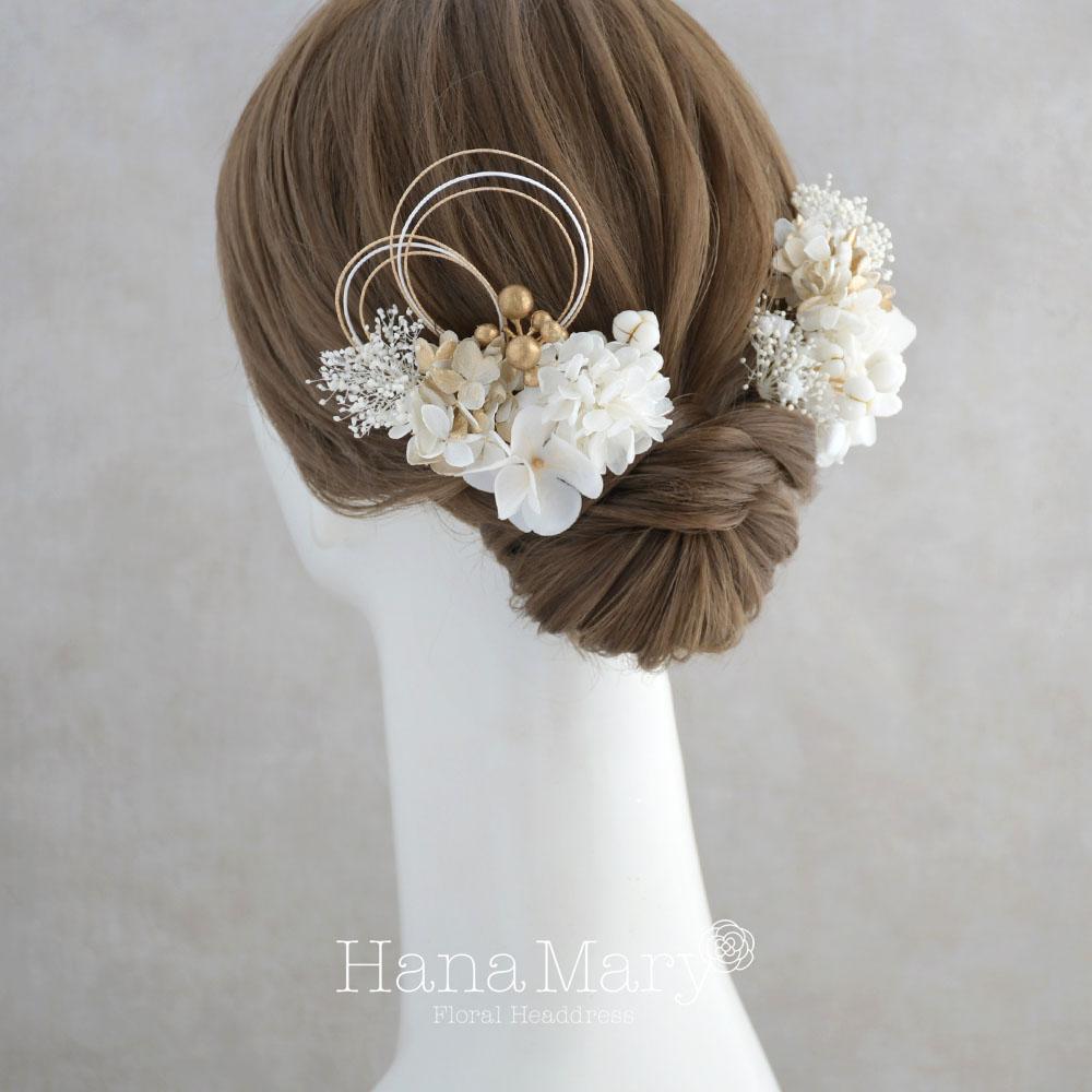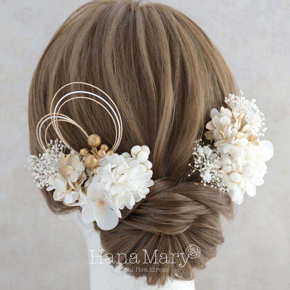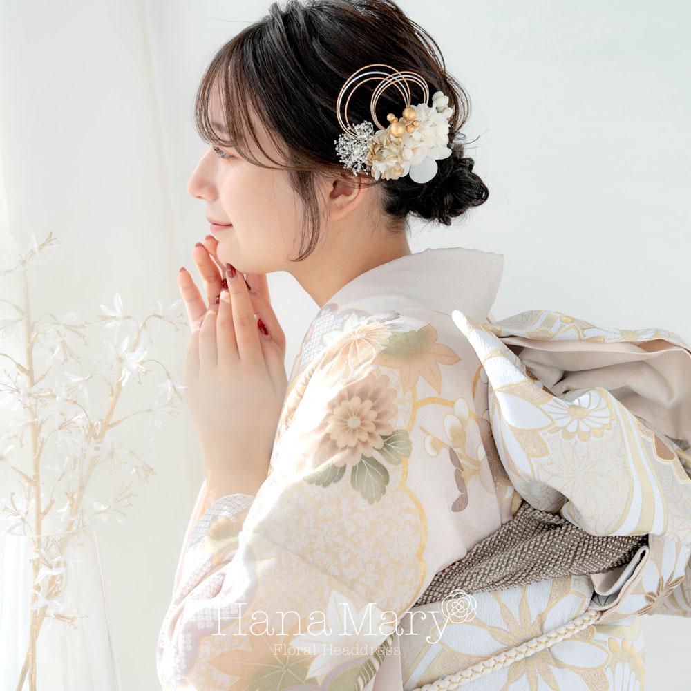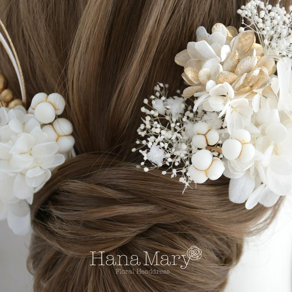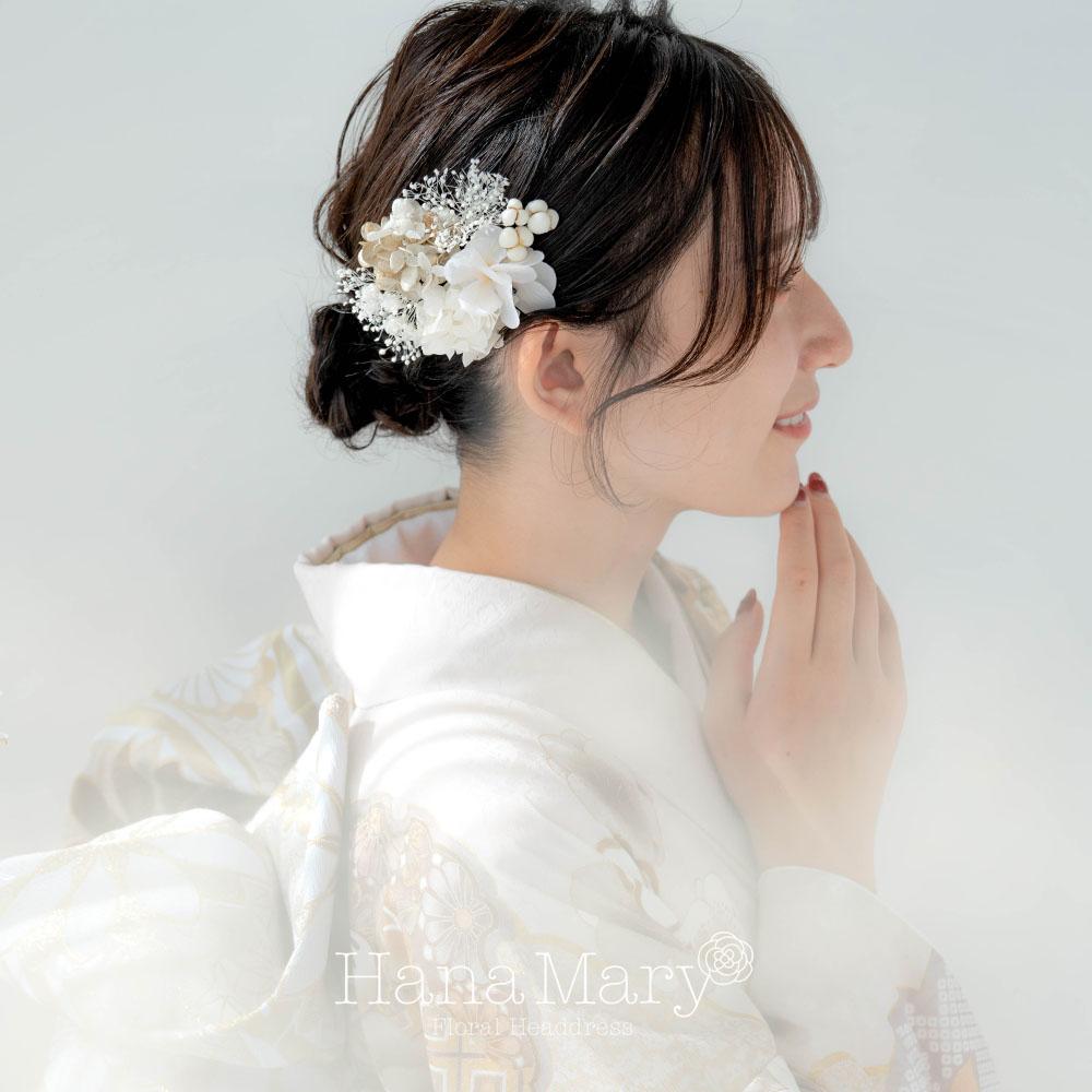 HanaMaryの髪飾りは生花をリアルに再現したアートフラワーと呼ばれるハイクオリティーな造花を使用しています。耐久性に優れ、成人式・卒業式やウェディングなどに何度でも繰り返し使用することができます。