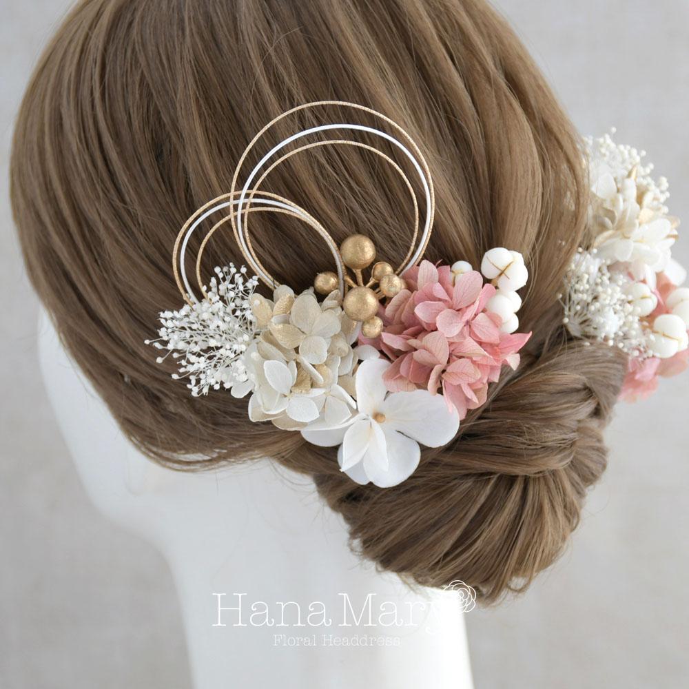 あじさいとかすみ草 ハゼの実を添えて 成人式 卒業式 【ライムピンク】結婚式 髪飾り