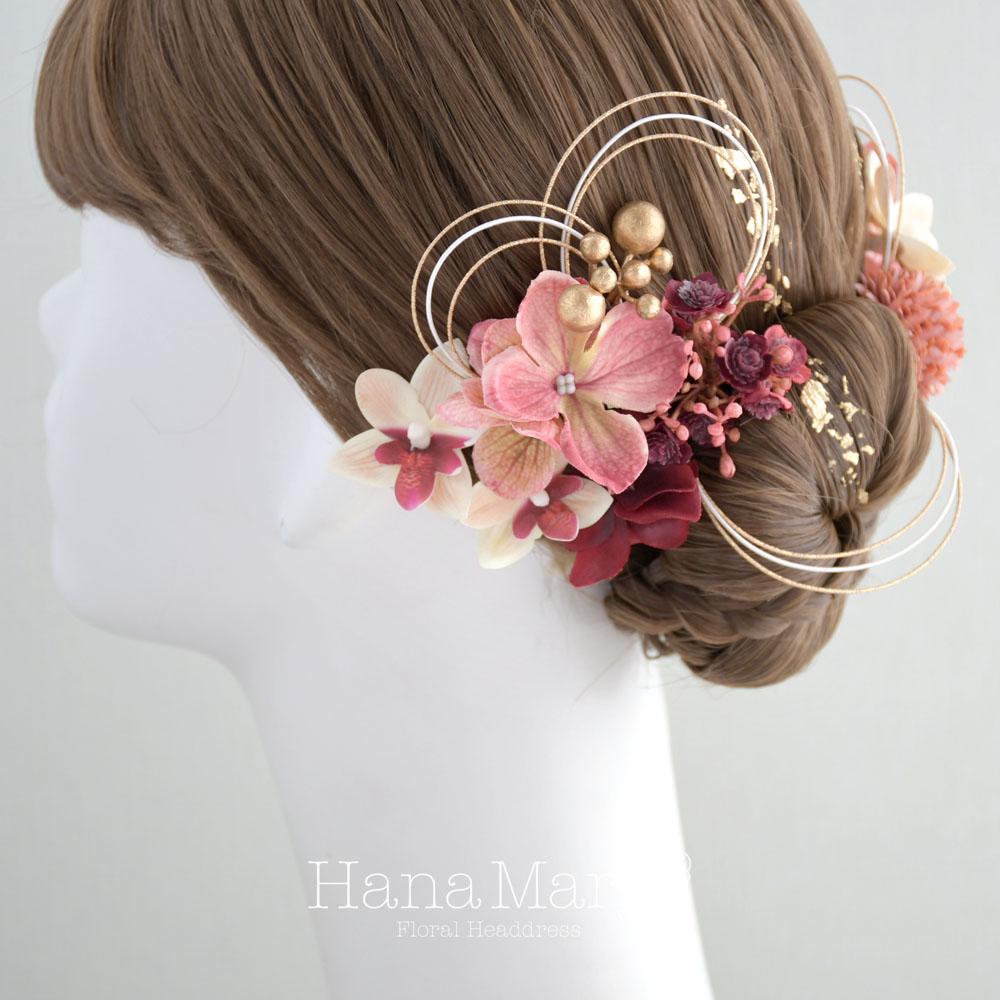 ハレの日花模様 髪飾り 成人式 卒業式 振袖 袴【淡赤紫】結婚式