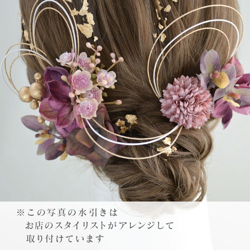 ハレの日花模様 髪飾り 成人式 卒業式 振袖 袴【紫】結婚式