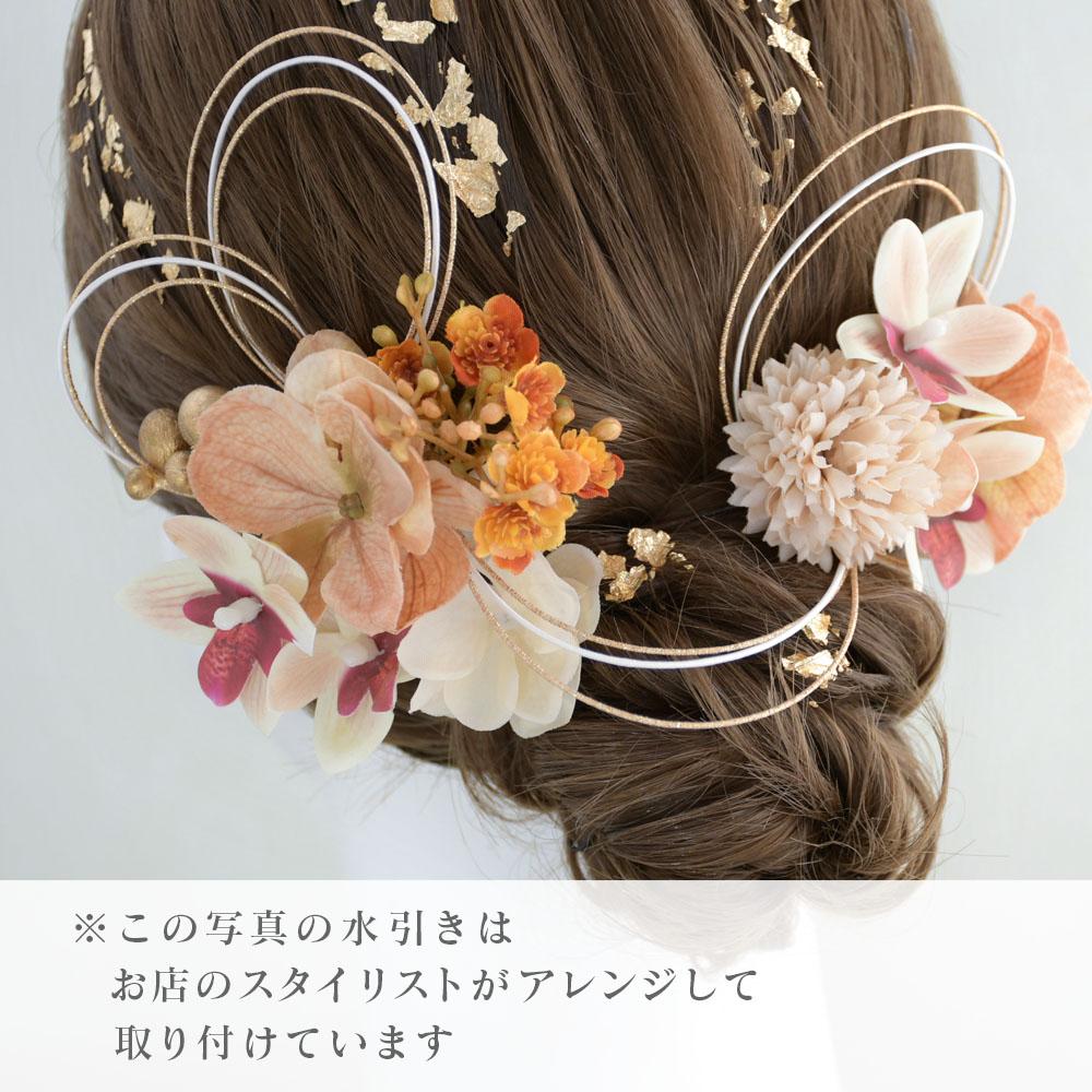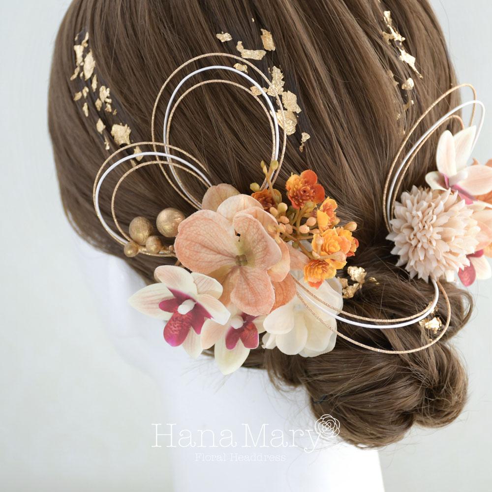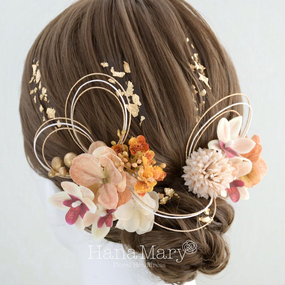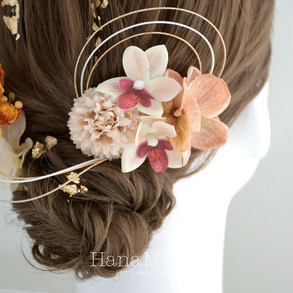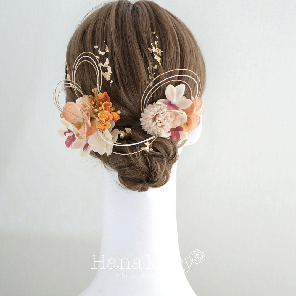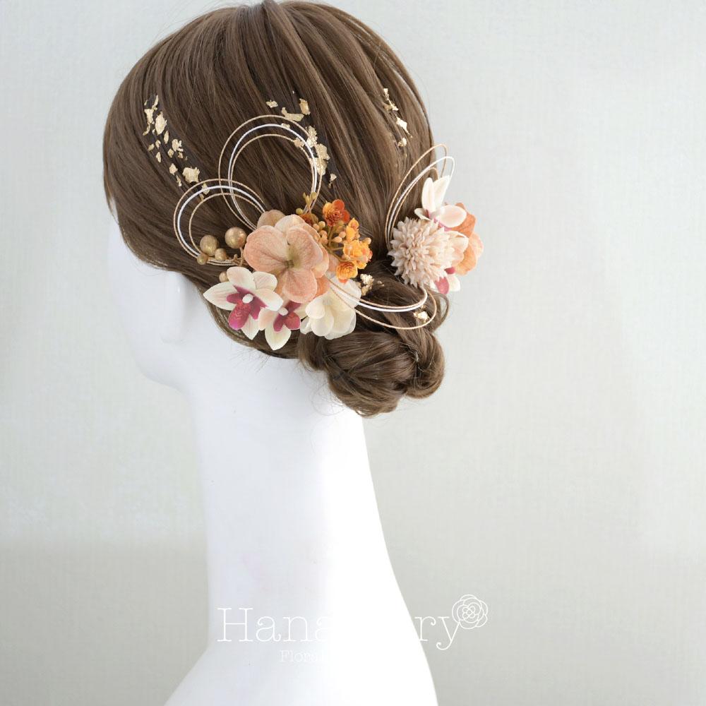 ハレの日花模様 髪飾り 成人式 卒業式 振袖 袴【オレンジ】結婚式