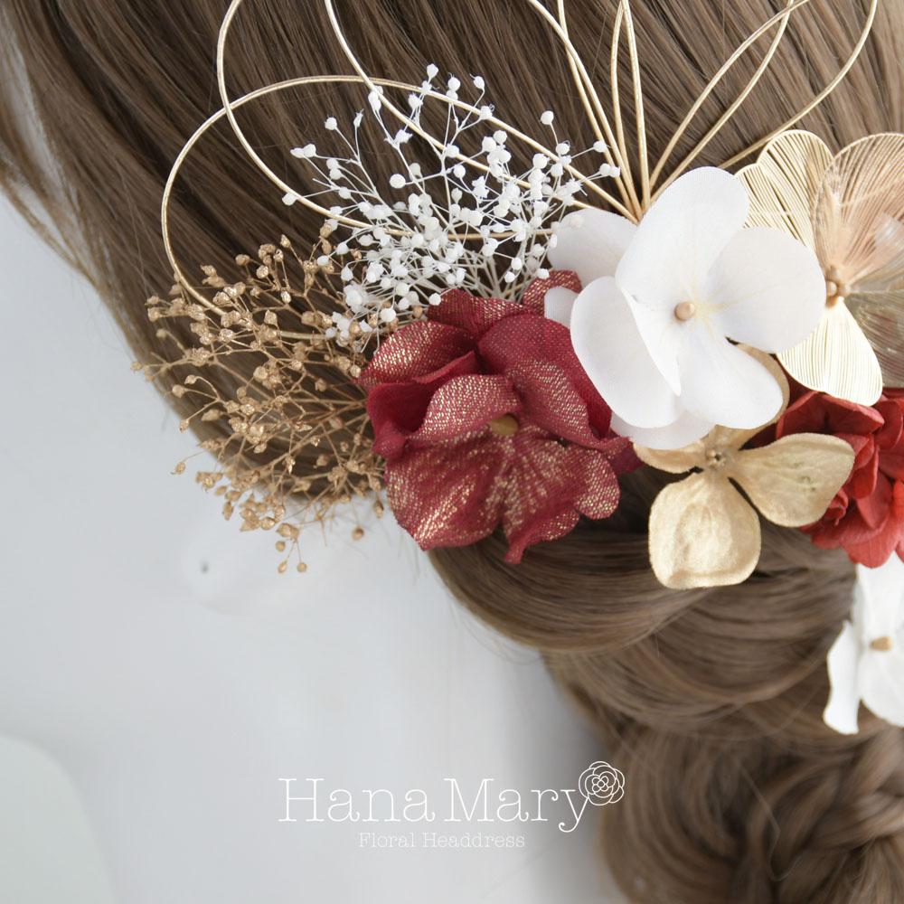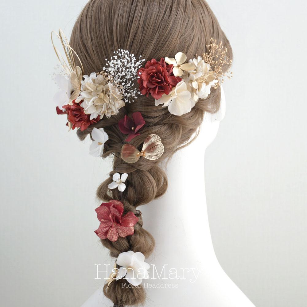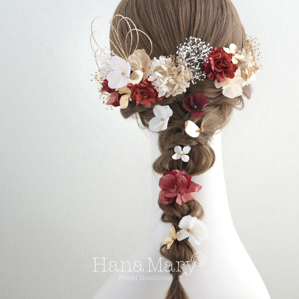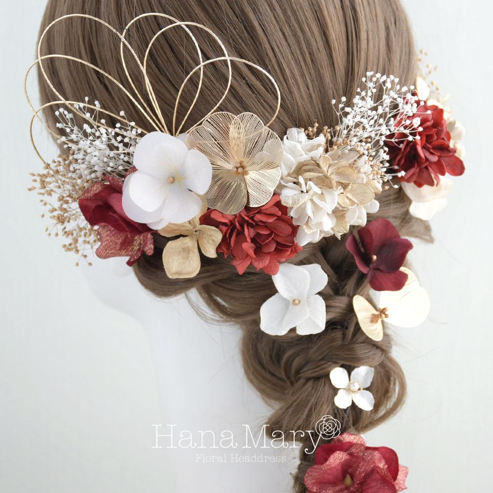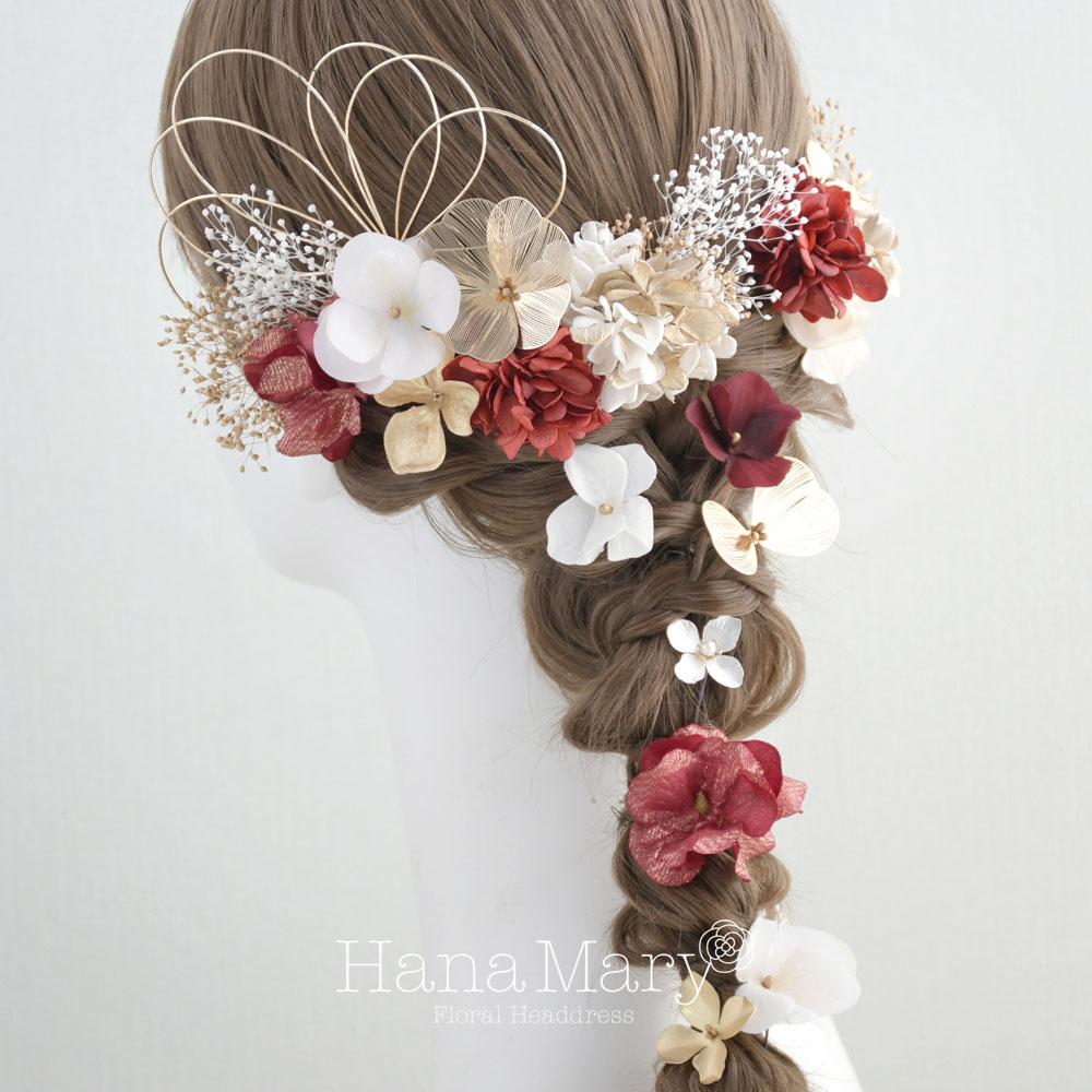あみ下ろしを華やかに プリザの髪飾り成人式 卒業式 結婚式【お祝い紅白】
