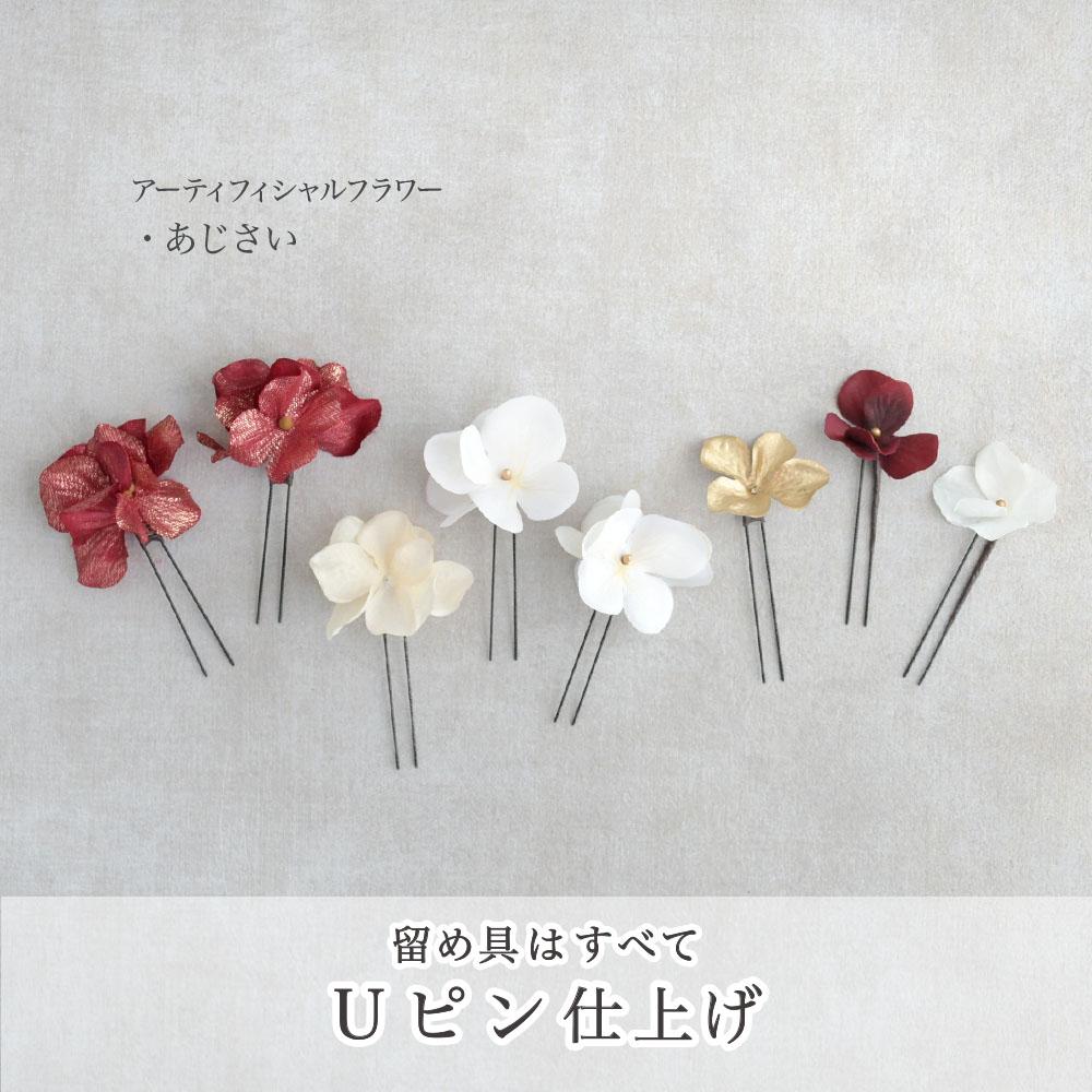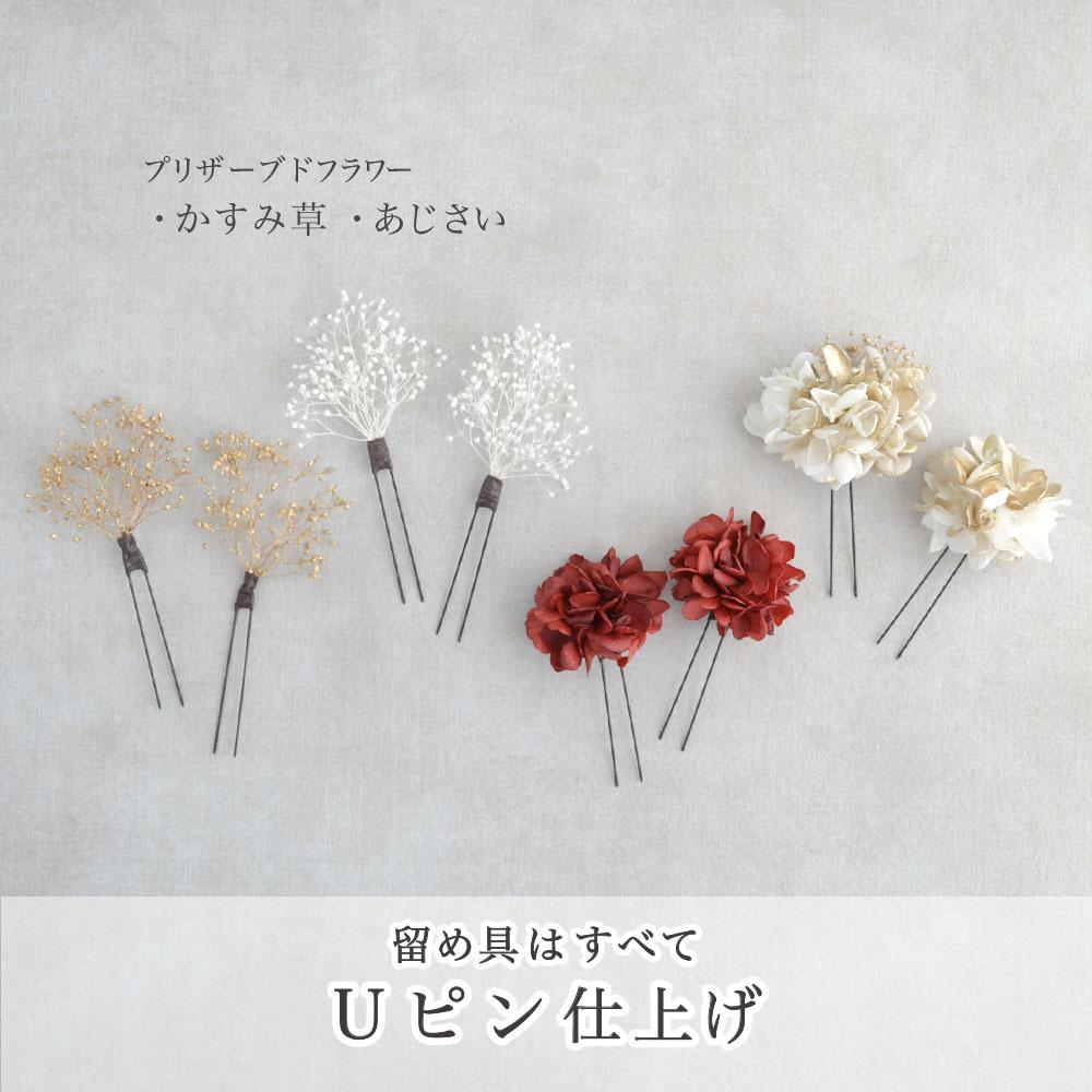 その日のヘアスタイルによって自由に一輪一輪配置できます。お花の数が多い場合でも、アメピンを追加して簡単にしっかりと固定できます。