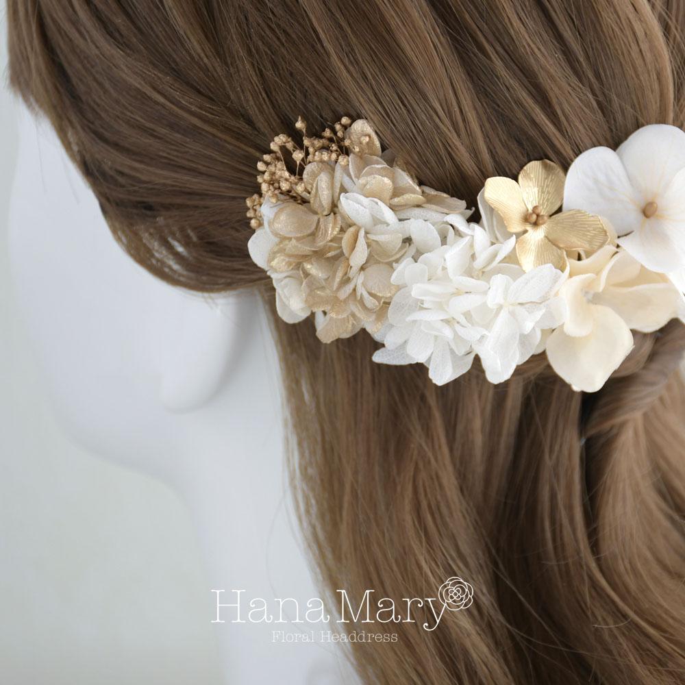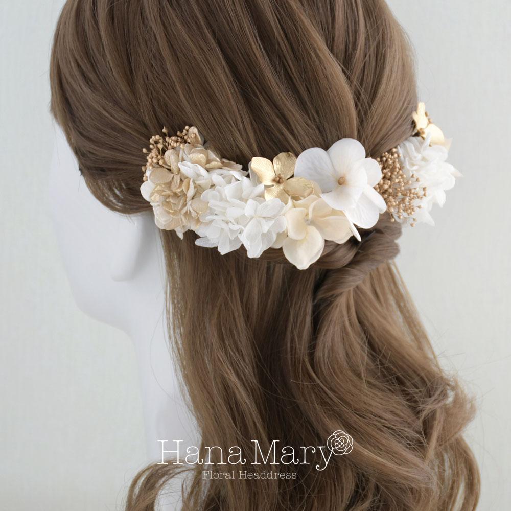 HanaMaryの髪飾りは生花をリアルに再現したアートフラワーと呼ばれるハイクオリティーな造花を使用しています。耐久性に優れ、成人式・卒業式やウェディングなどに何度でも繰り返し使用することができます。
