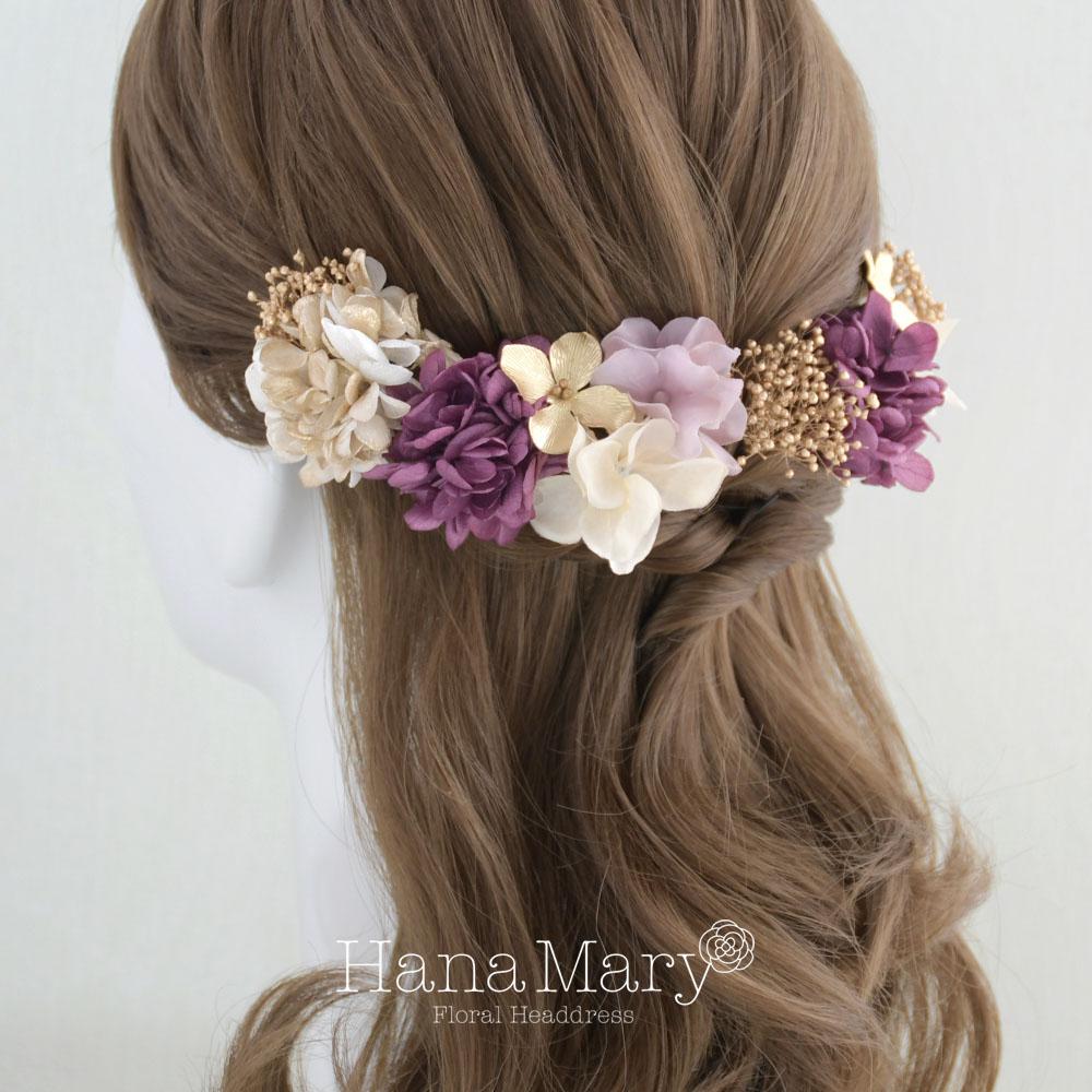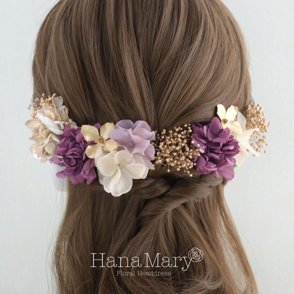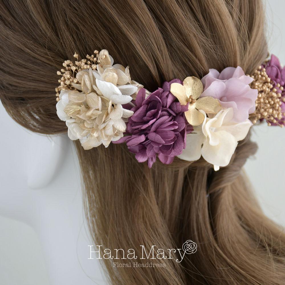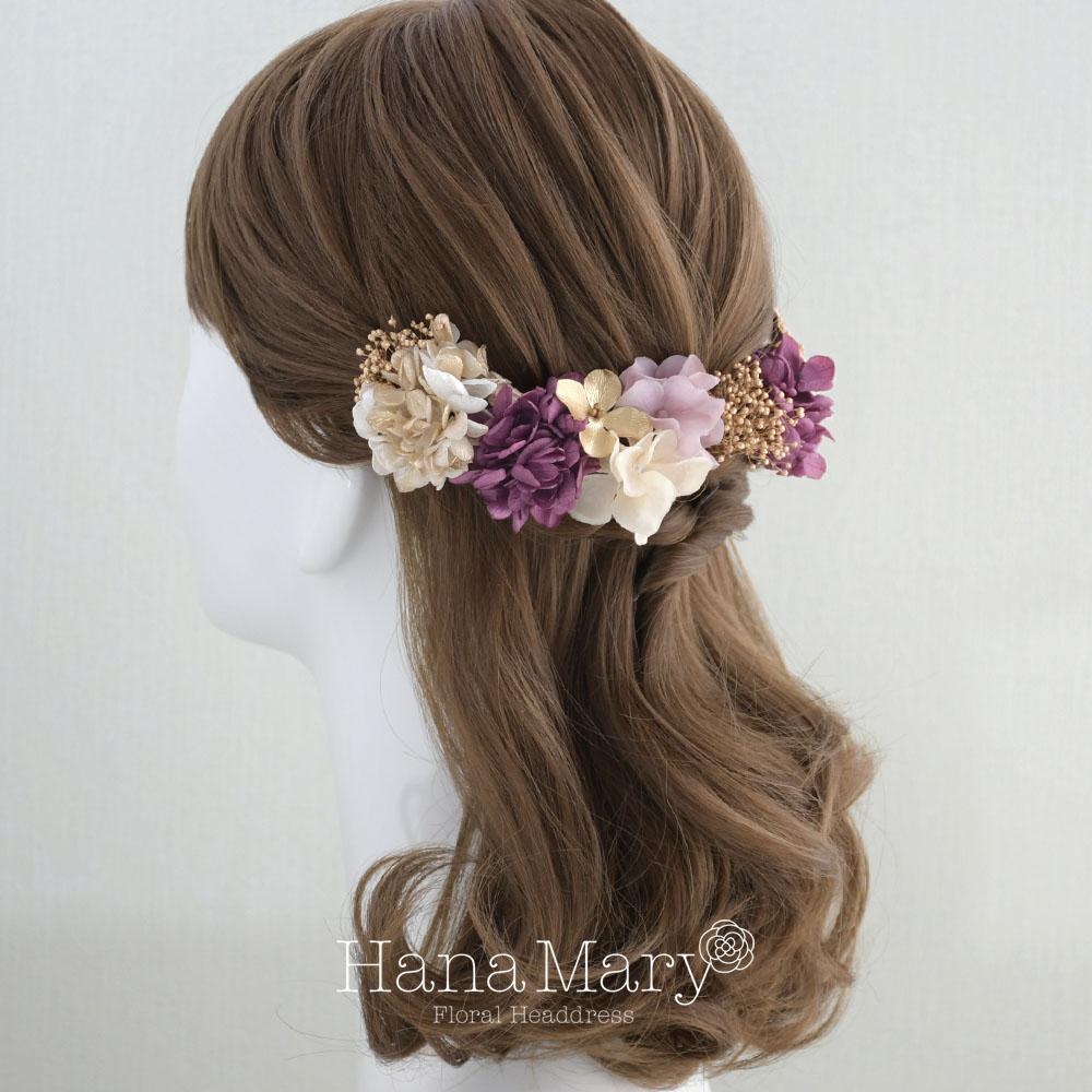 思い出小花 卒業式 髪飾り 成人式 ハーフアップ【紫ゴールド】振袖 袴