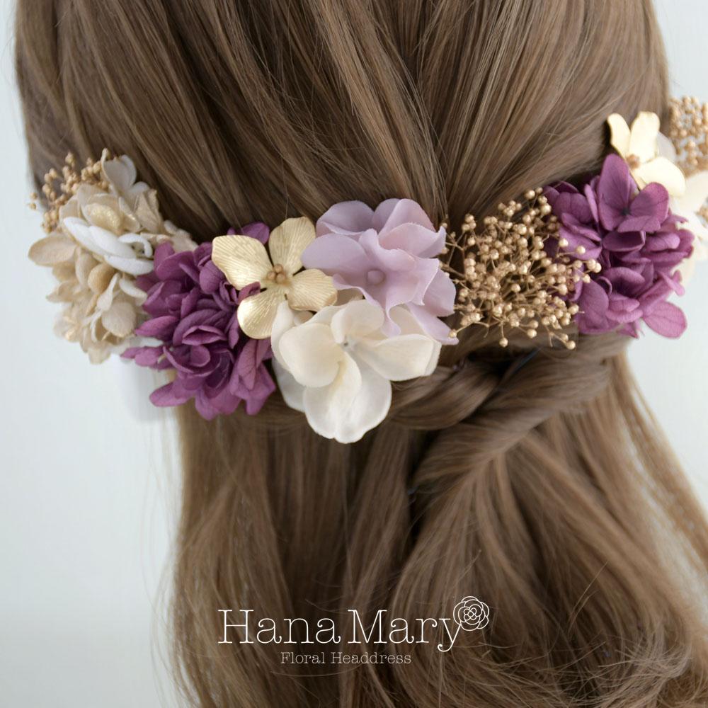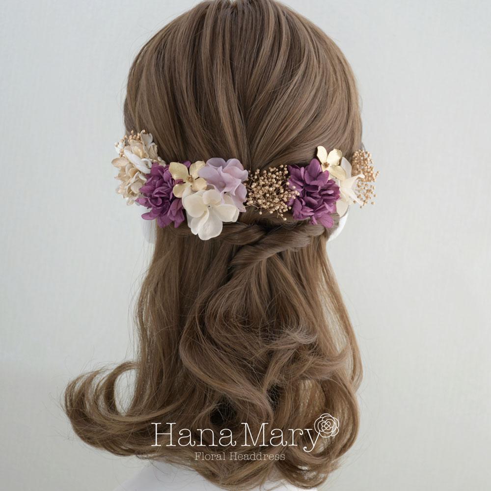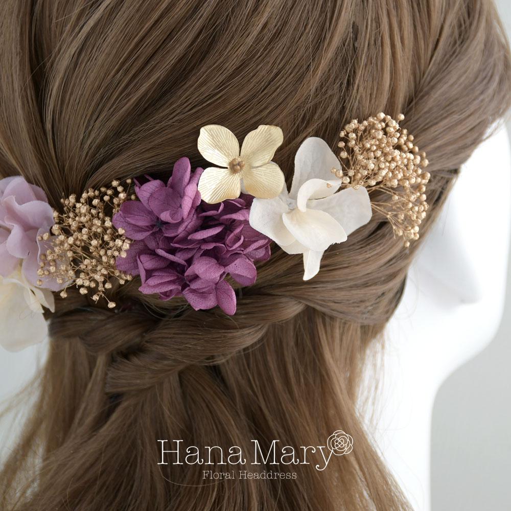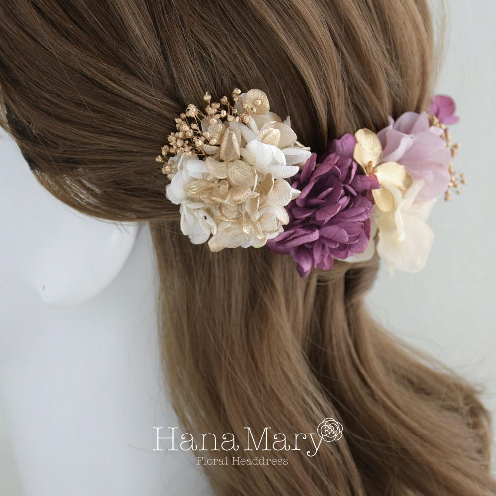 思い出小花 卒業式 髪飾り 成人式 ハーフアップ【紫ゴールド】振袖 袴
