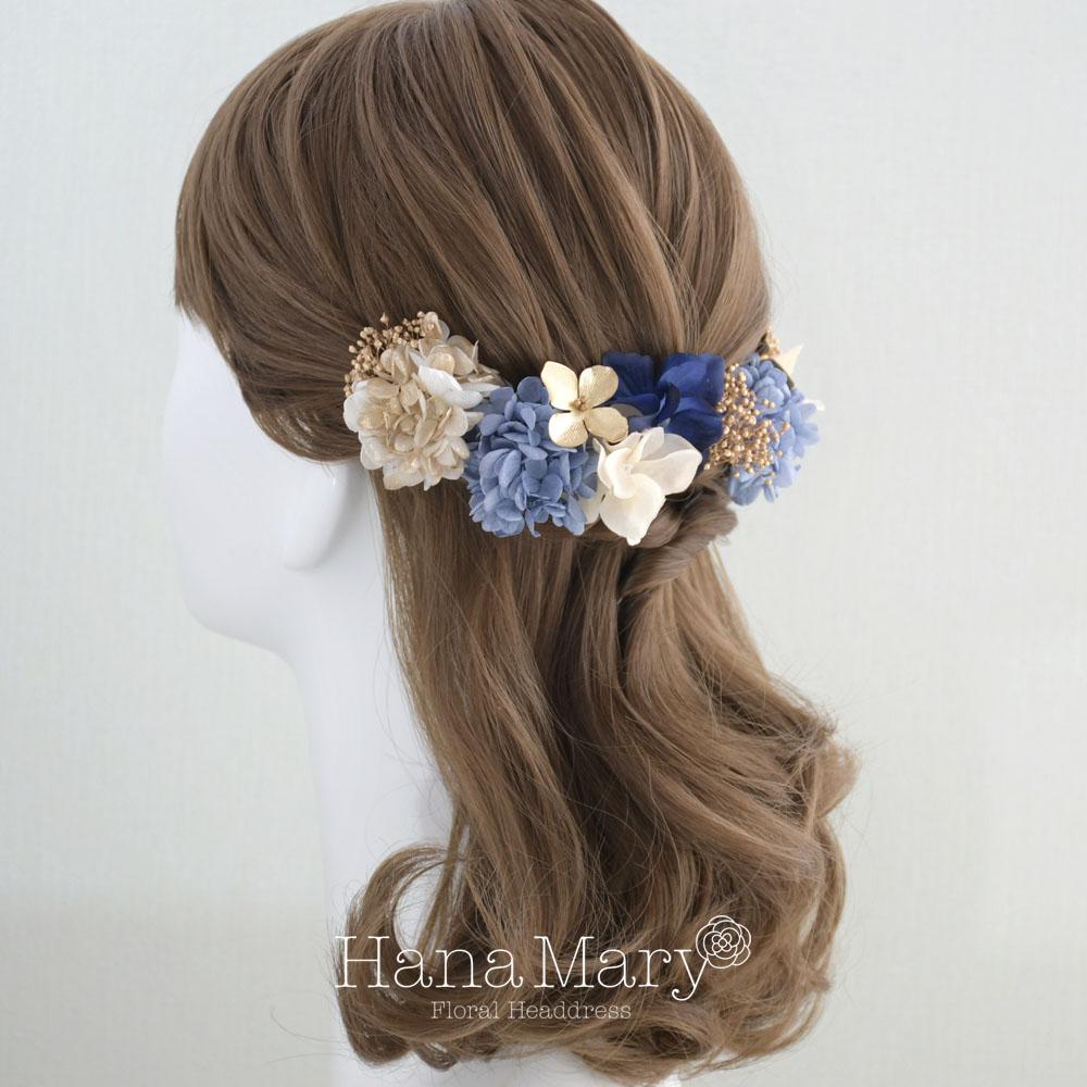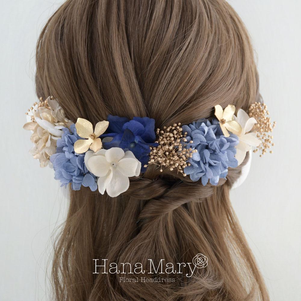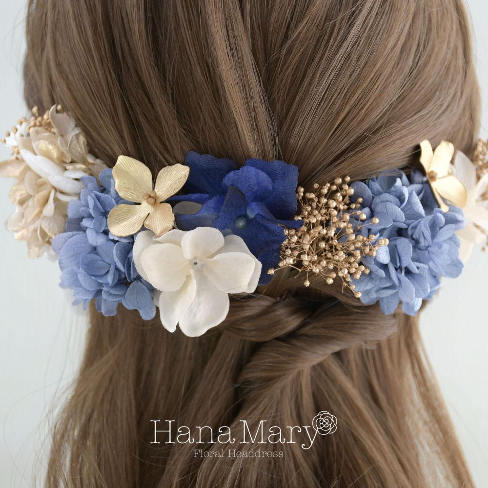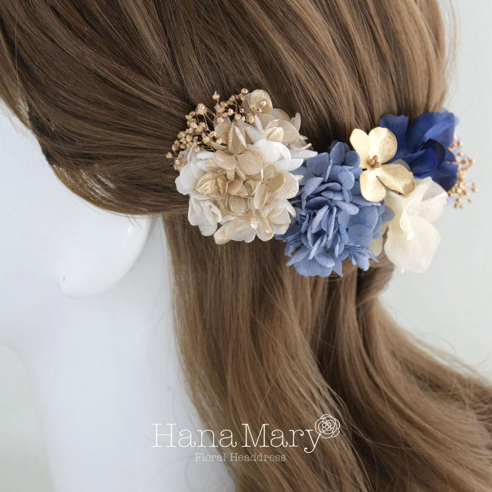 思い出小花 卒業式 髪飾り 成人式 ハーフアップ【青ゴールド】振袖 袴