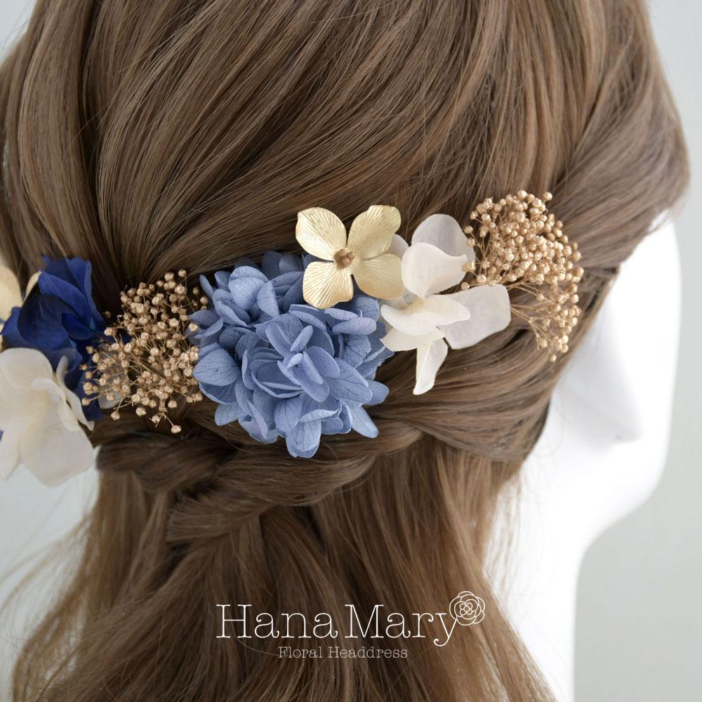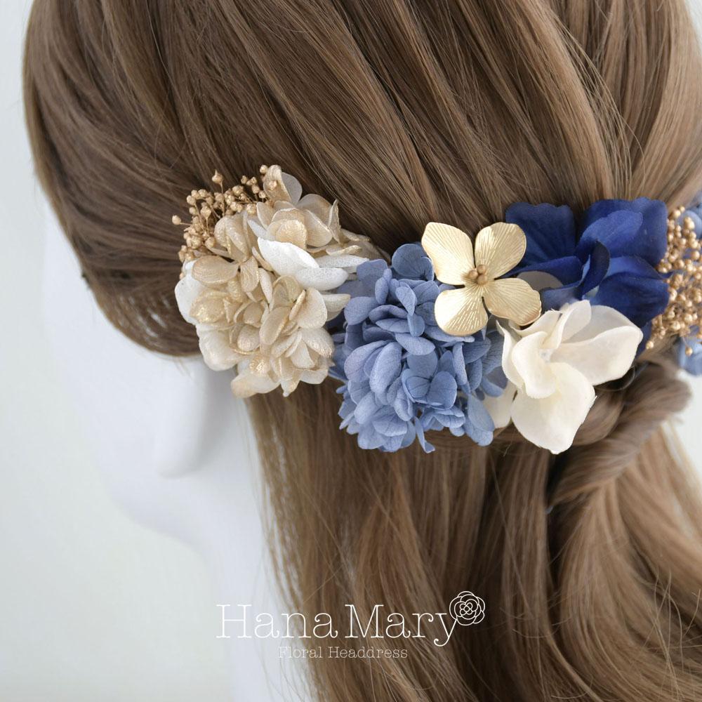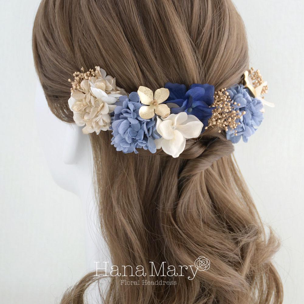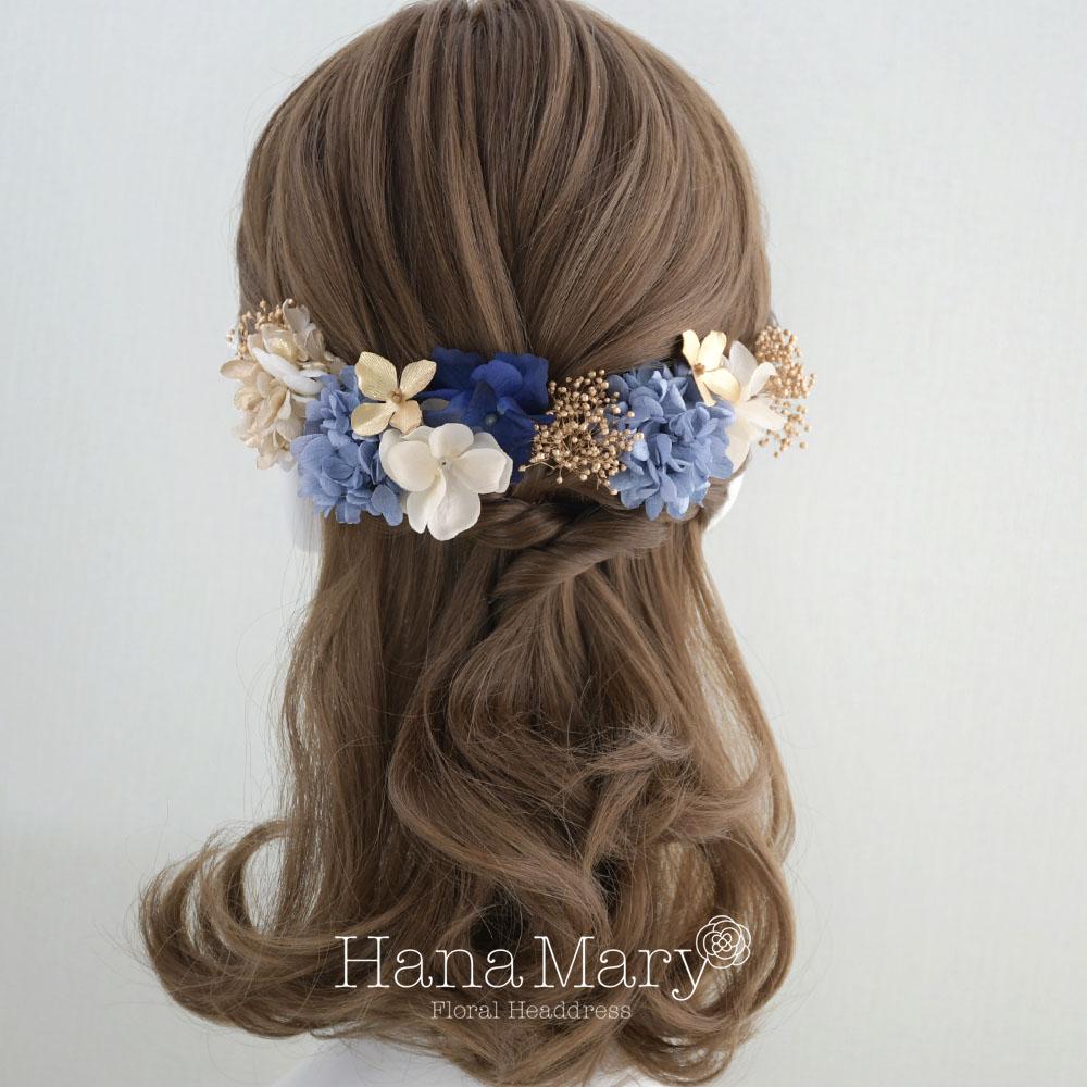 思い出小花 卒業式 髪飾り 成人式 ハーフアップ【青ゴールド】振袖 袴