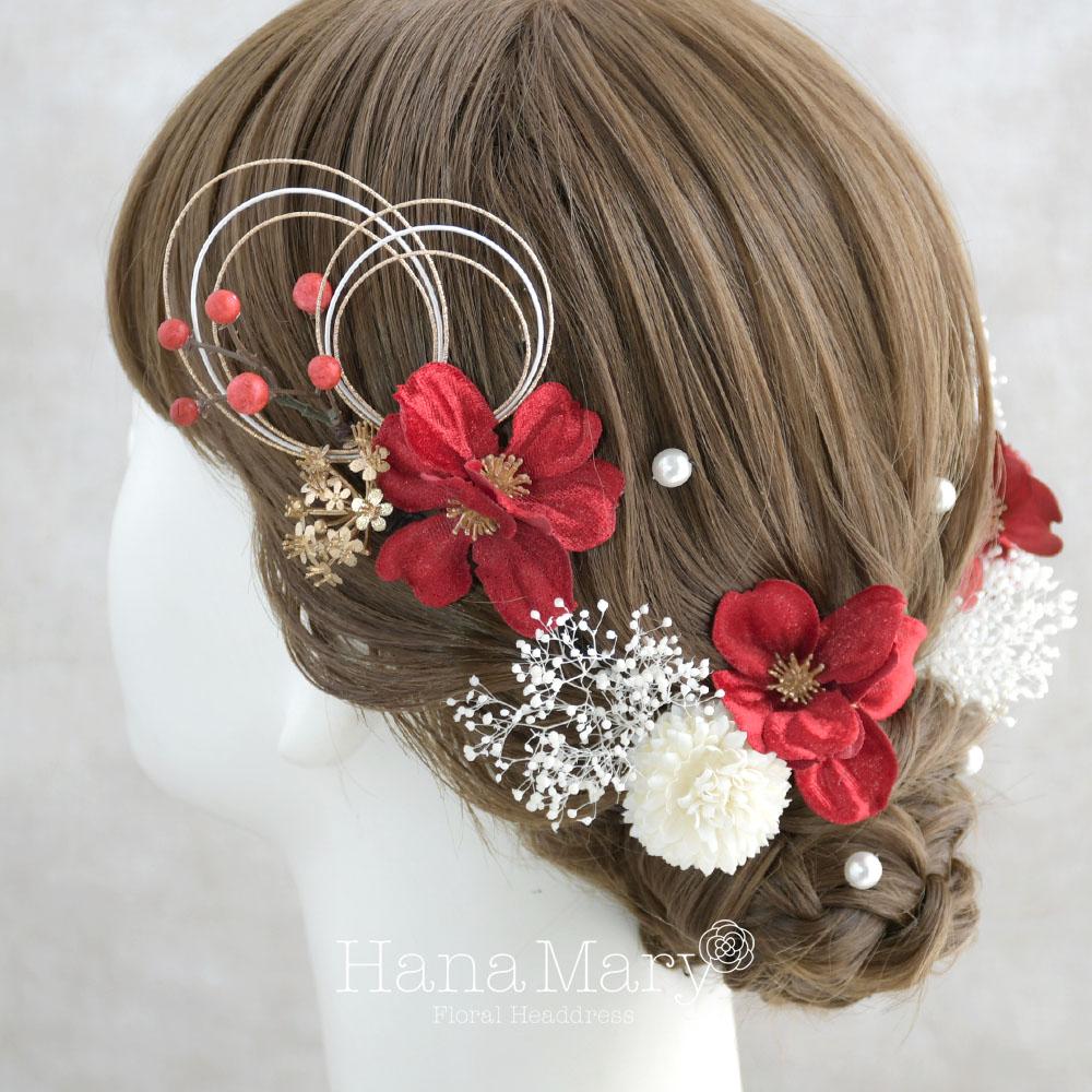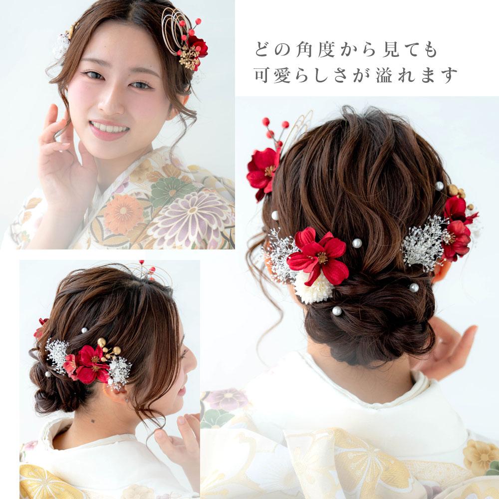 赤いハナミズキの髪飾り 成人式 卒業式 結婚式 振袖 袴 白無垢