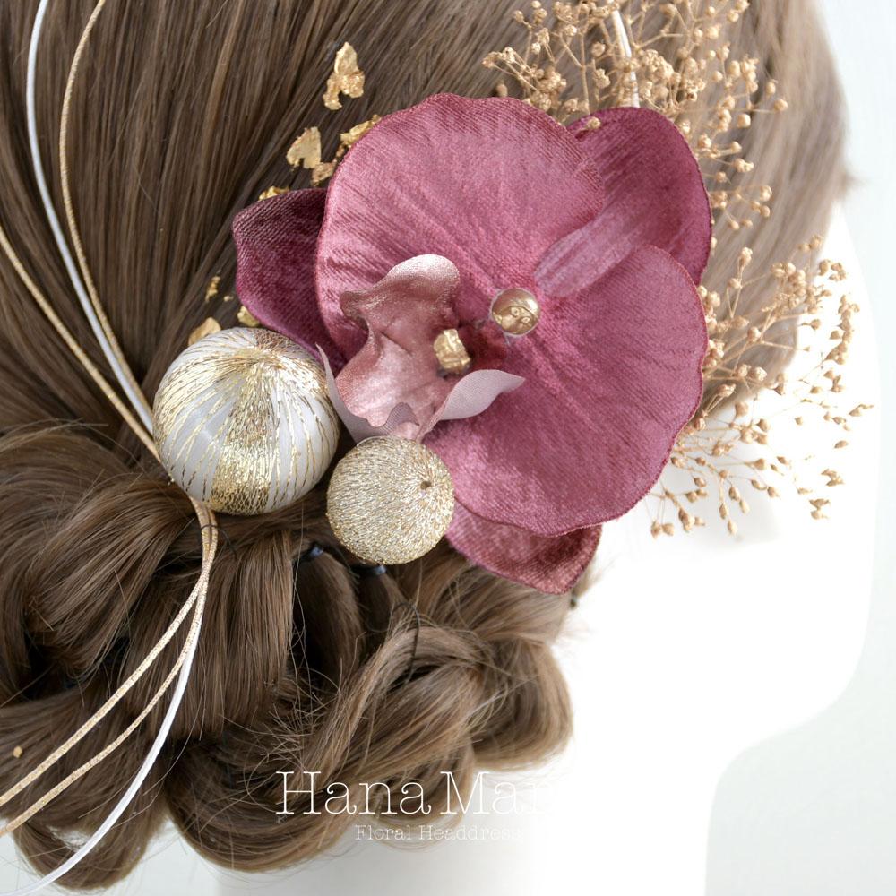 ベロア素材で魅せる胡蝶蘭の髪飾り 成人式 卒業式 結婚式【紫】振袖 袴 白無垢