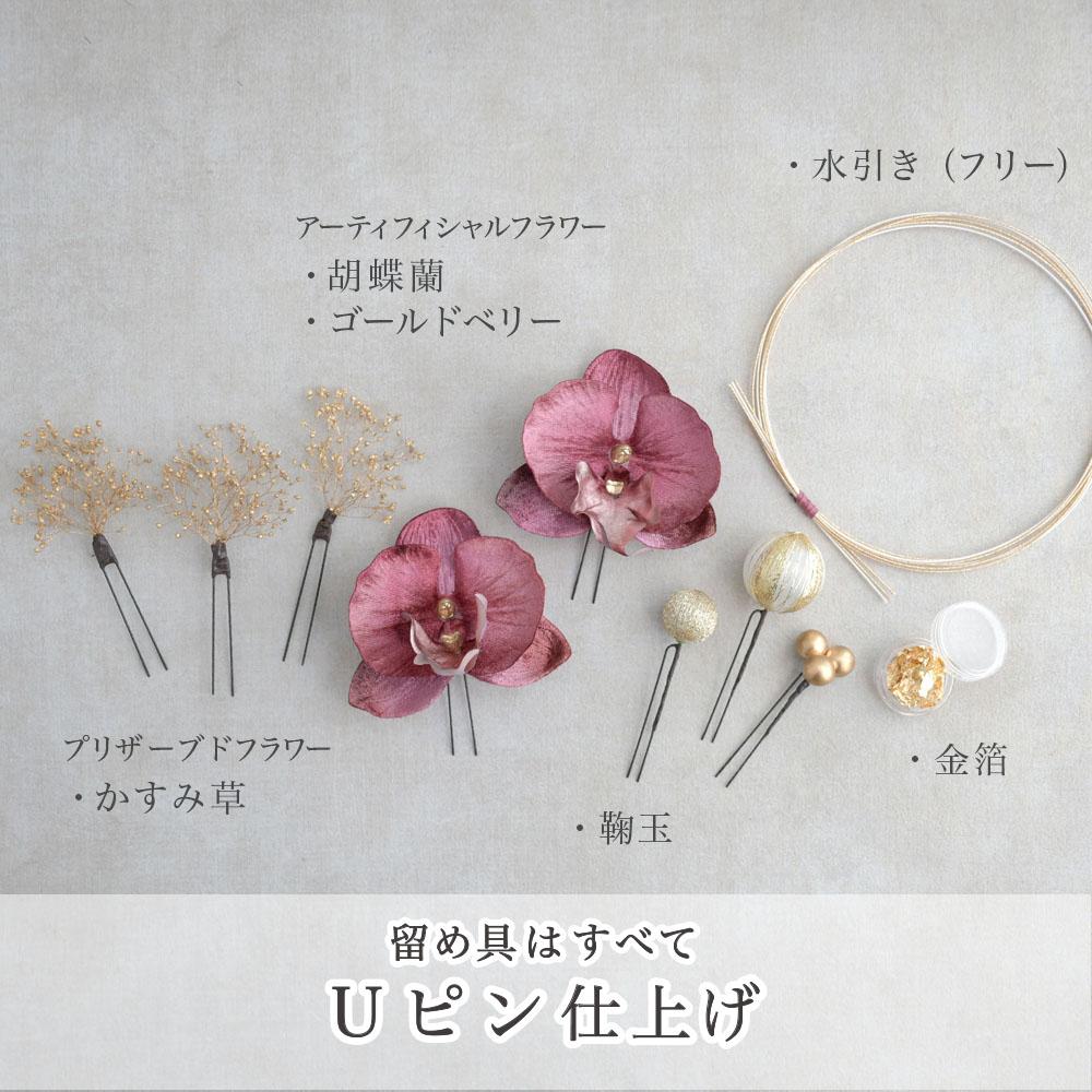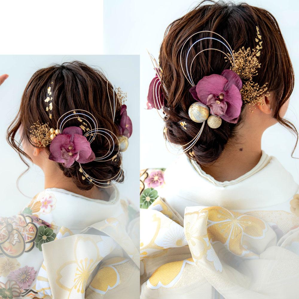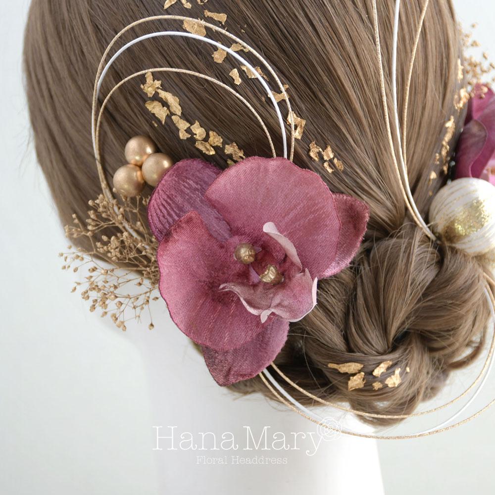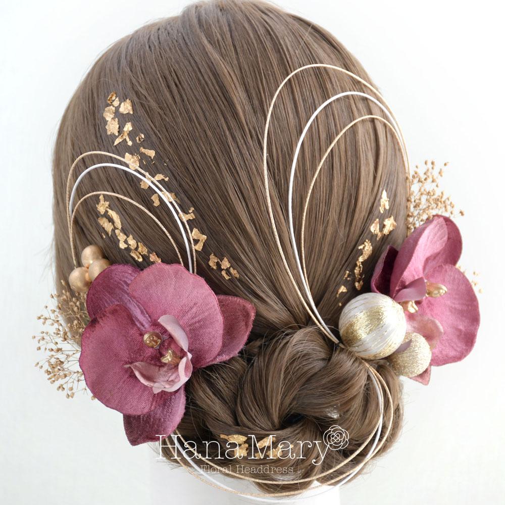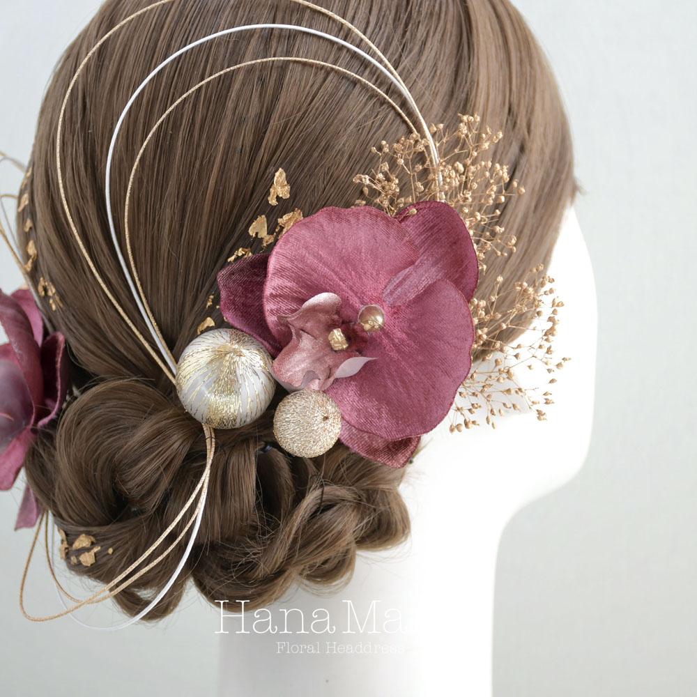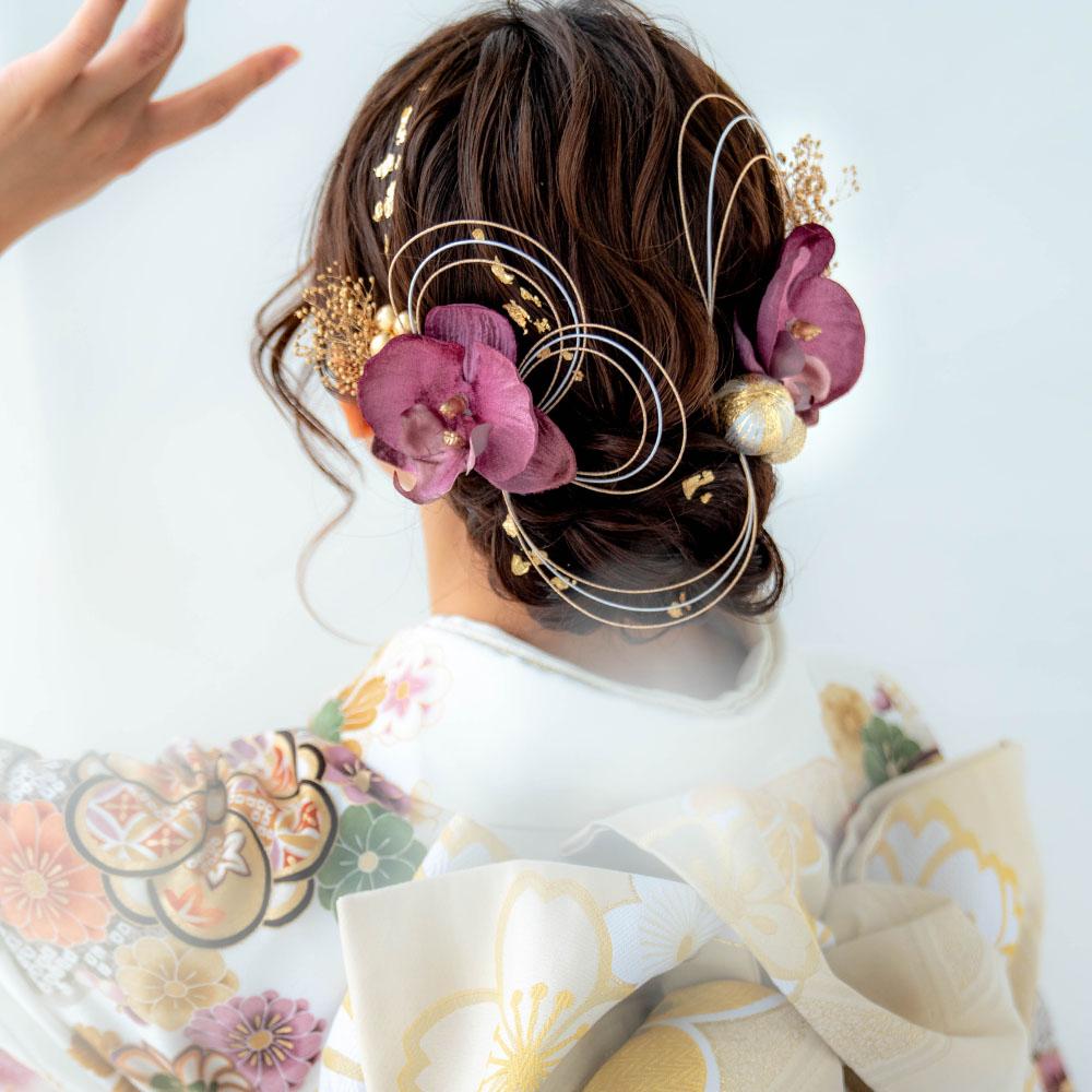 上品でシック、可愛らしくも大人っぽさがあり晴れの日のヘアスタイルを華やかに彩ってくれます。