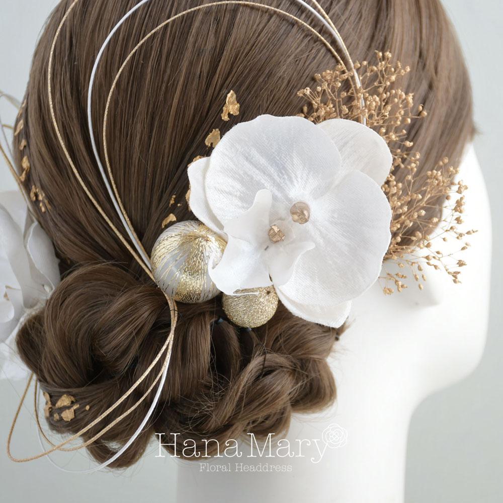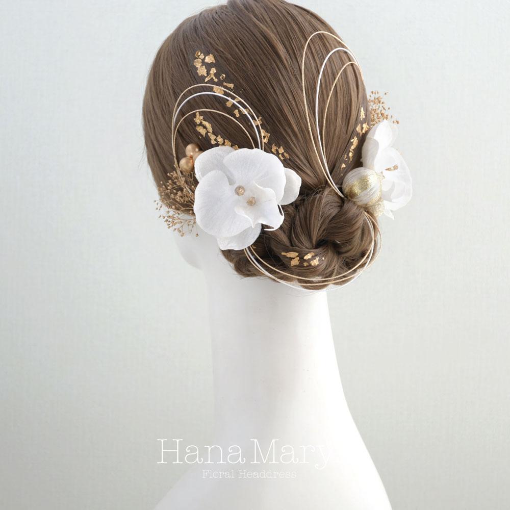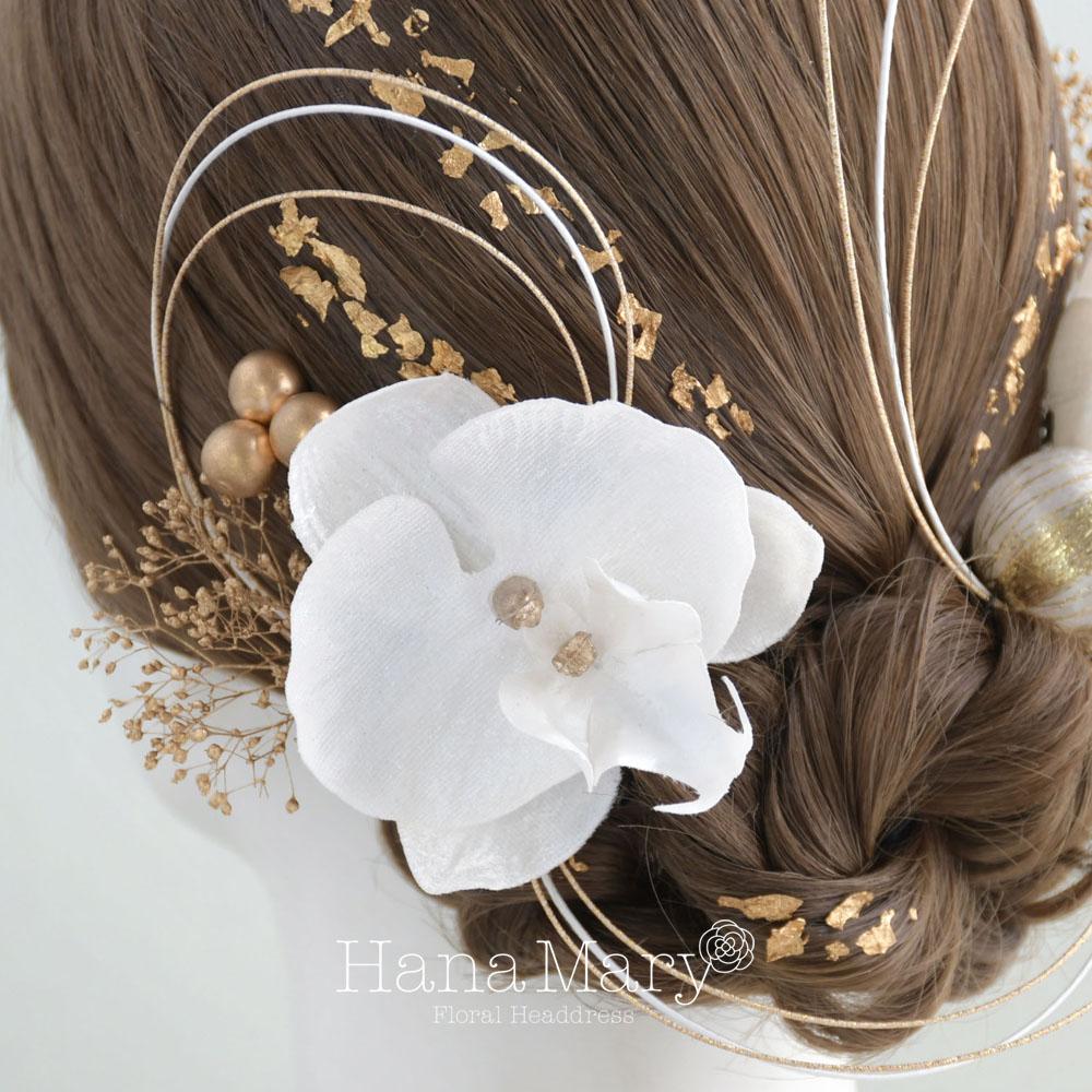 HanaMaryの髪飾りは生花をリアルに再現したアートフラワーと呼ばれるハイクオリティーな造花を使用しています。耐久性に優れ、成人式・卒業式やウェディングなどに何度でも繰り返し使用することができます。