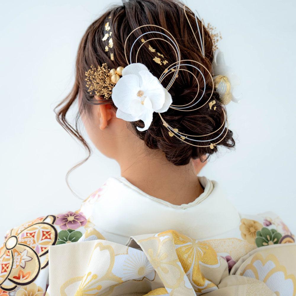 上品でシック、可愛らしくも大人っぽさがあり晴れの日のヘアスタイルを華やかに彩ってくれます。