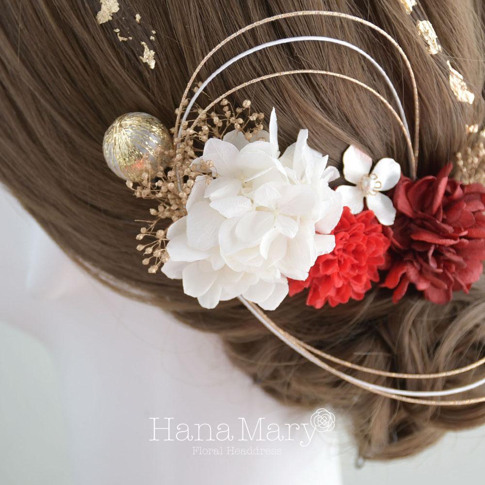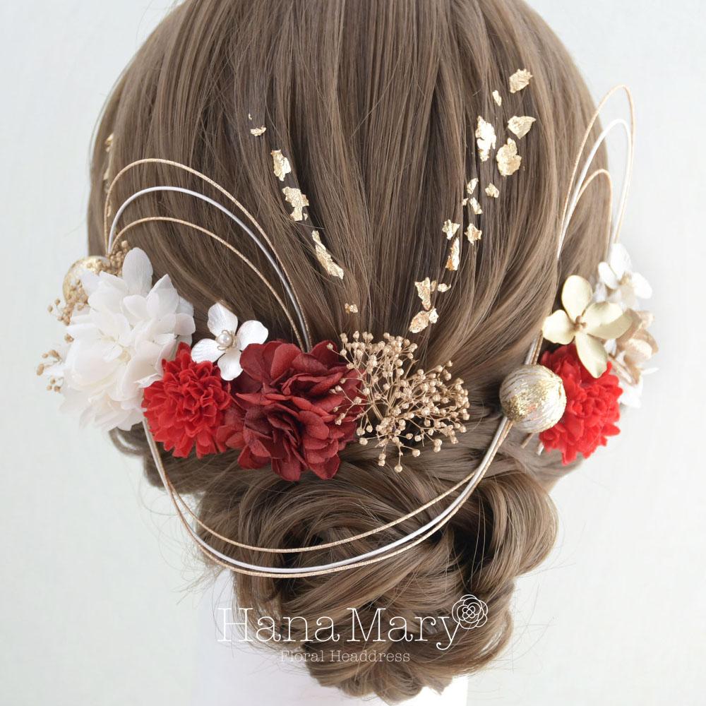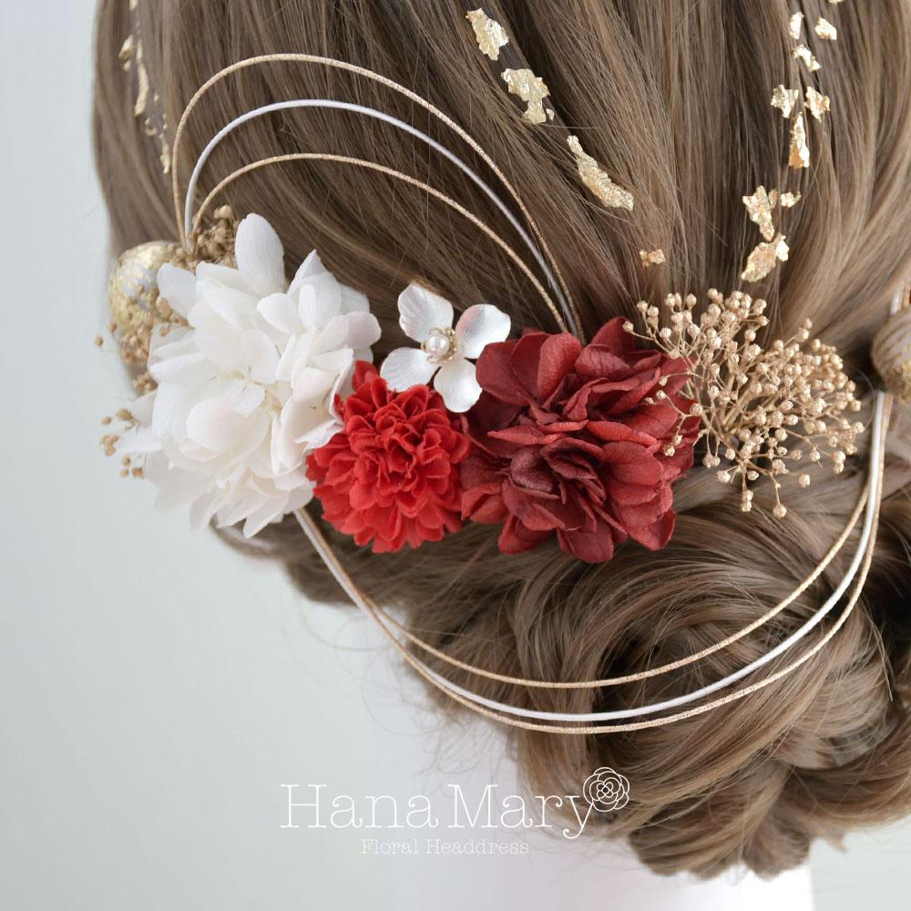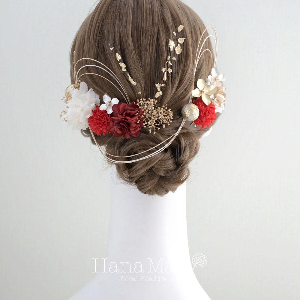 HanaMaryの髪飾りは生花をリアルに再現したアートフラワーと呼ばれるハイクオリティーな造花を使用しています。耐久性に優れ、成人式・卒業式やウェディングなどに何度でも繰り返し使用することができます。