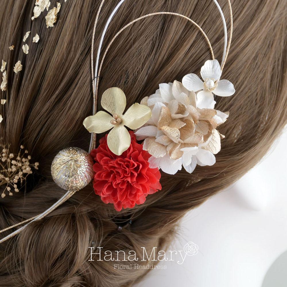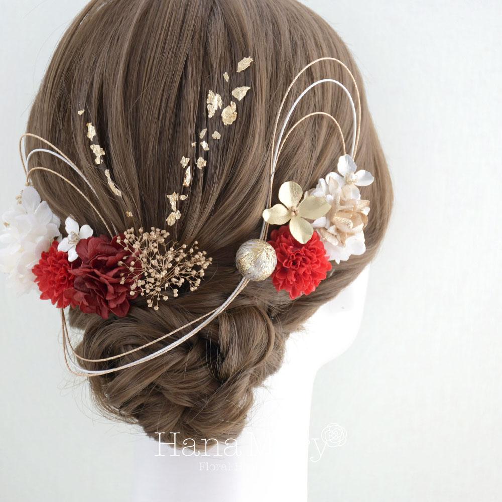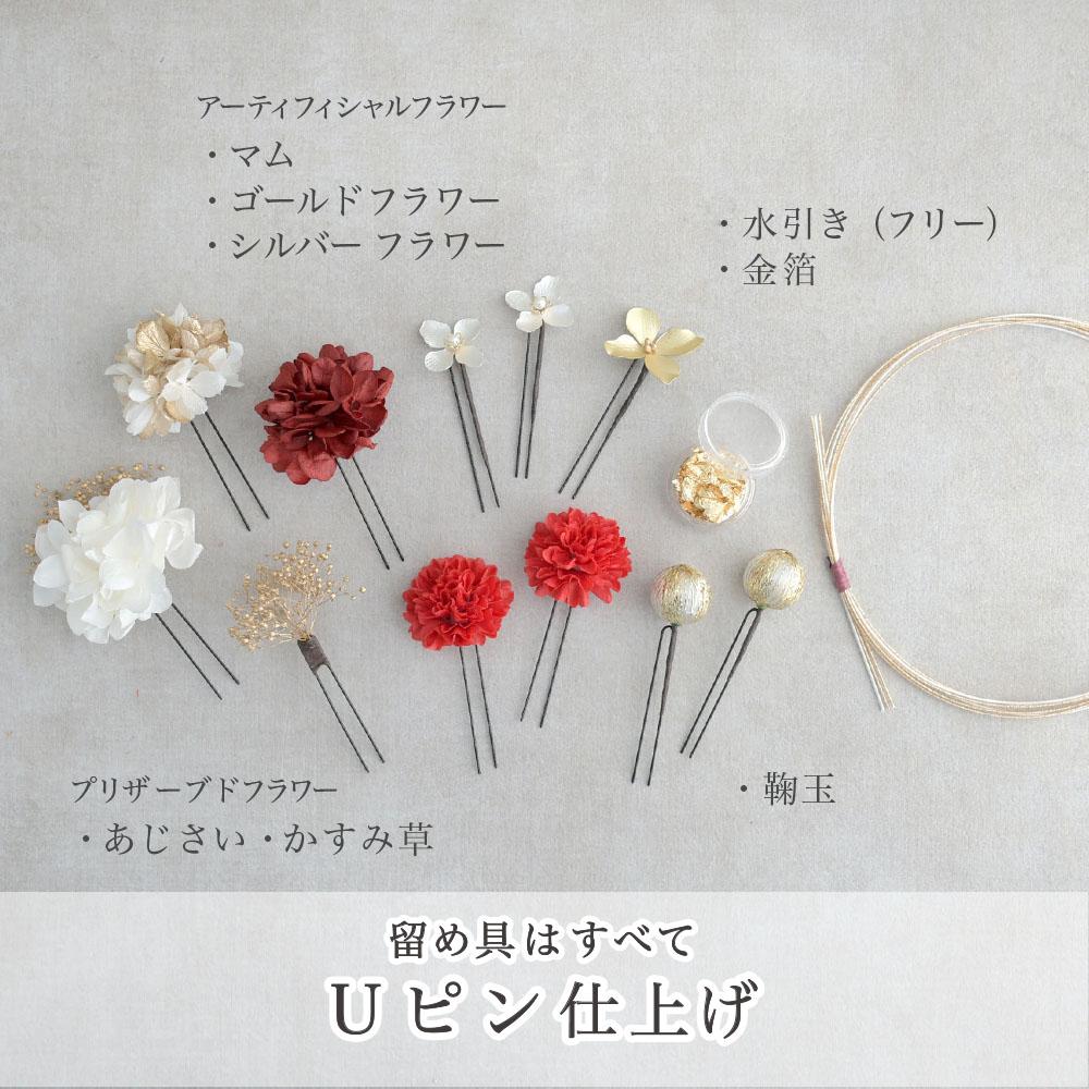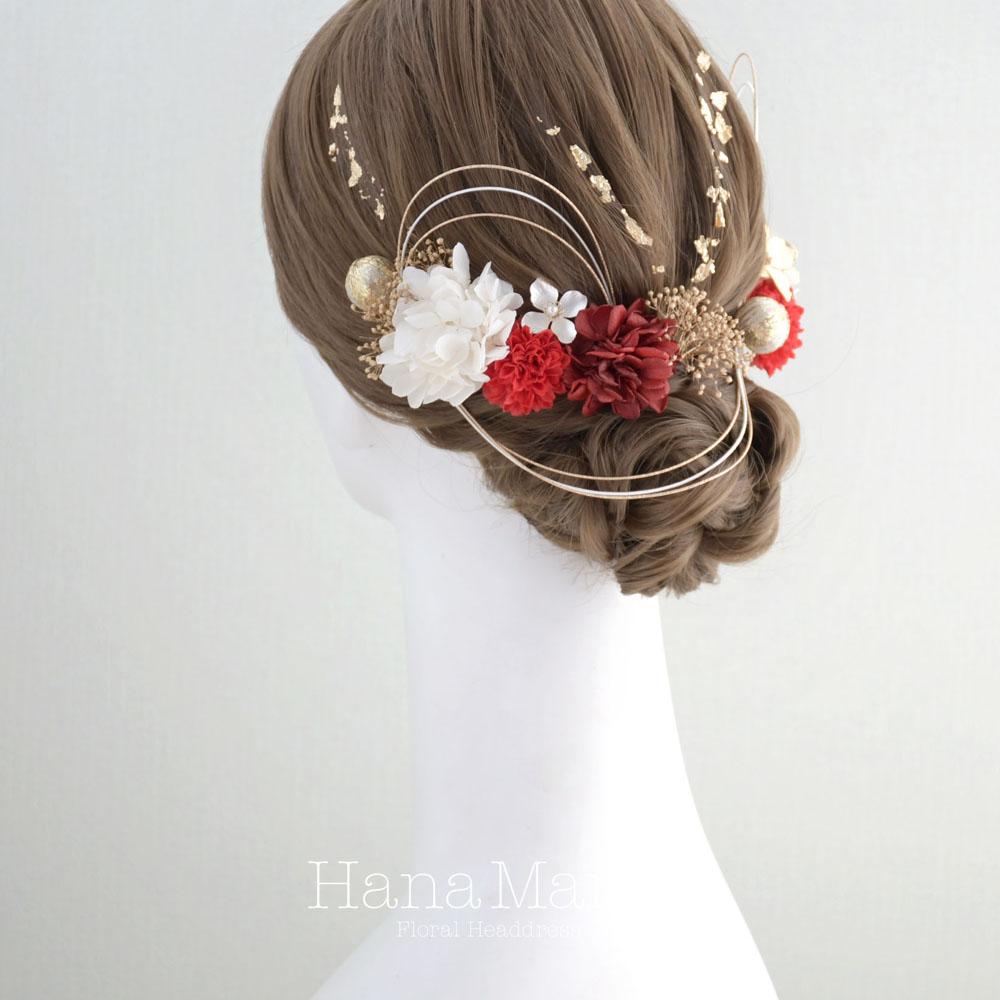HanaMaryの髪飾りは生花をリアルに再現したアートフラワーと呼ばれるハイクオリティーな造花を使用しています。耐久性に優れ、成人式・卒業式やウェディングなどに何度でも繰り返し使用することができます。