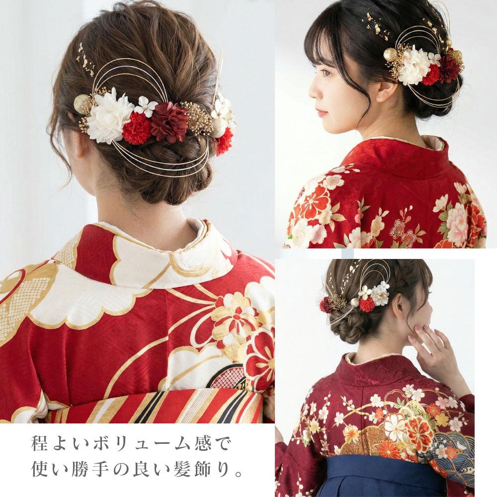 ふわふわとした可愛らしさで和装コーデを華やかに演出してくれるプリザのお花を使った髪飾り。