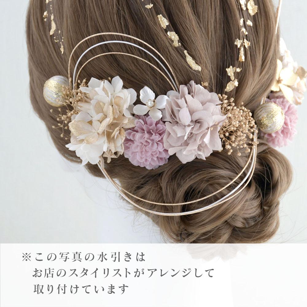 ふわふわとした可愛らしさで和装コーデを華やかに演出してくれるプリザのお花を使った髪飾り。