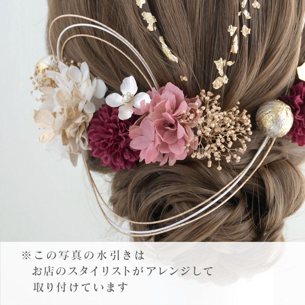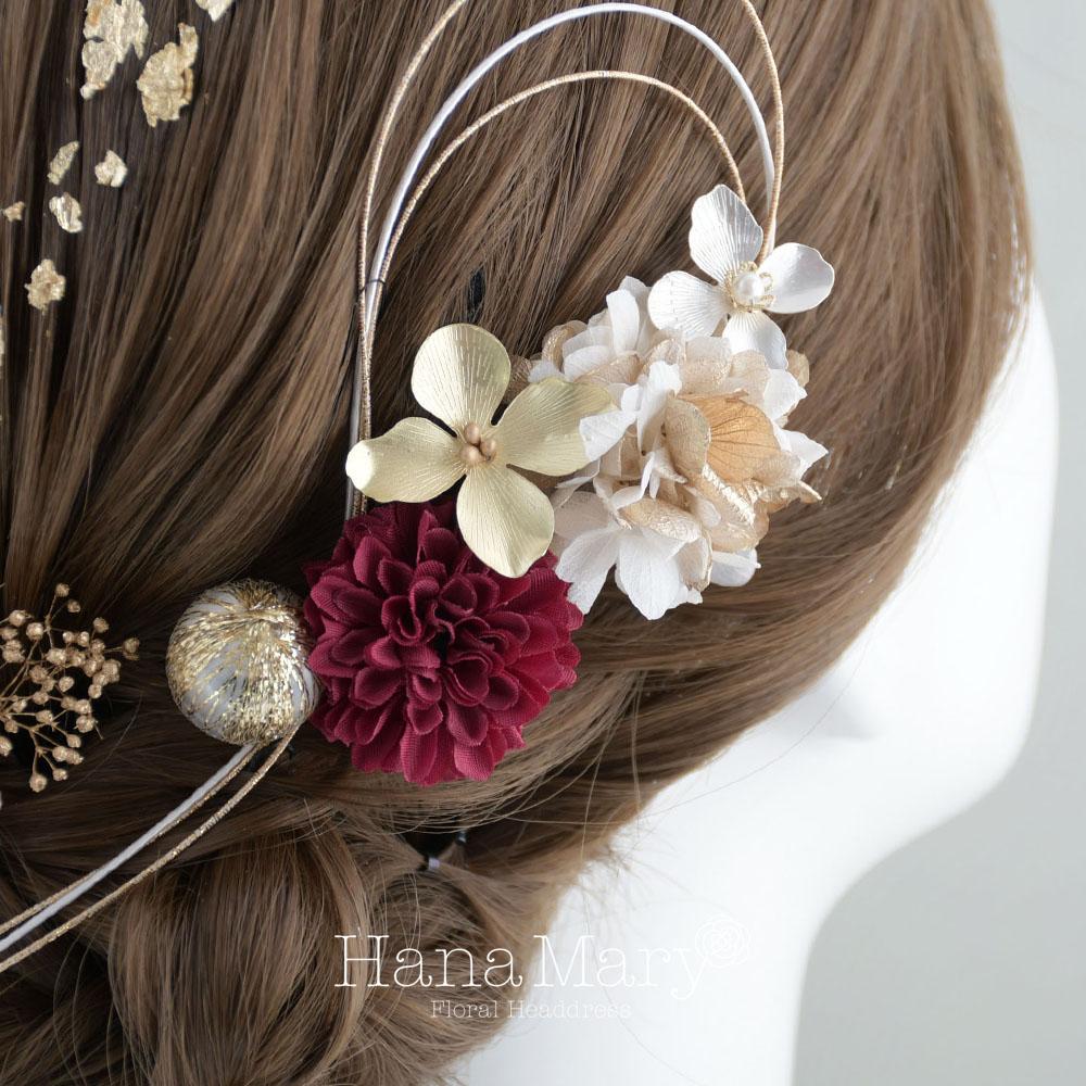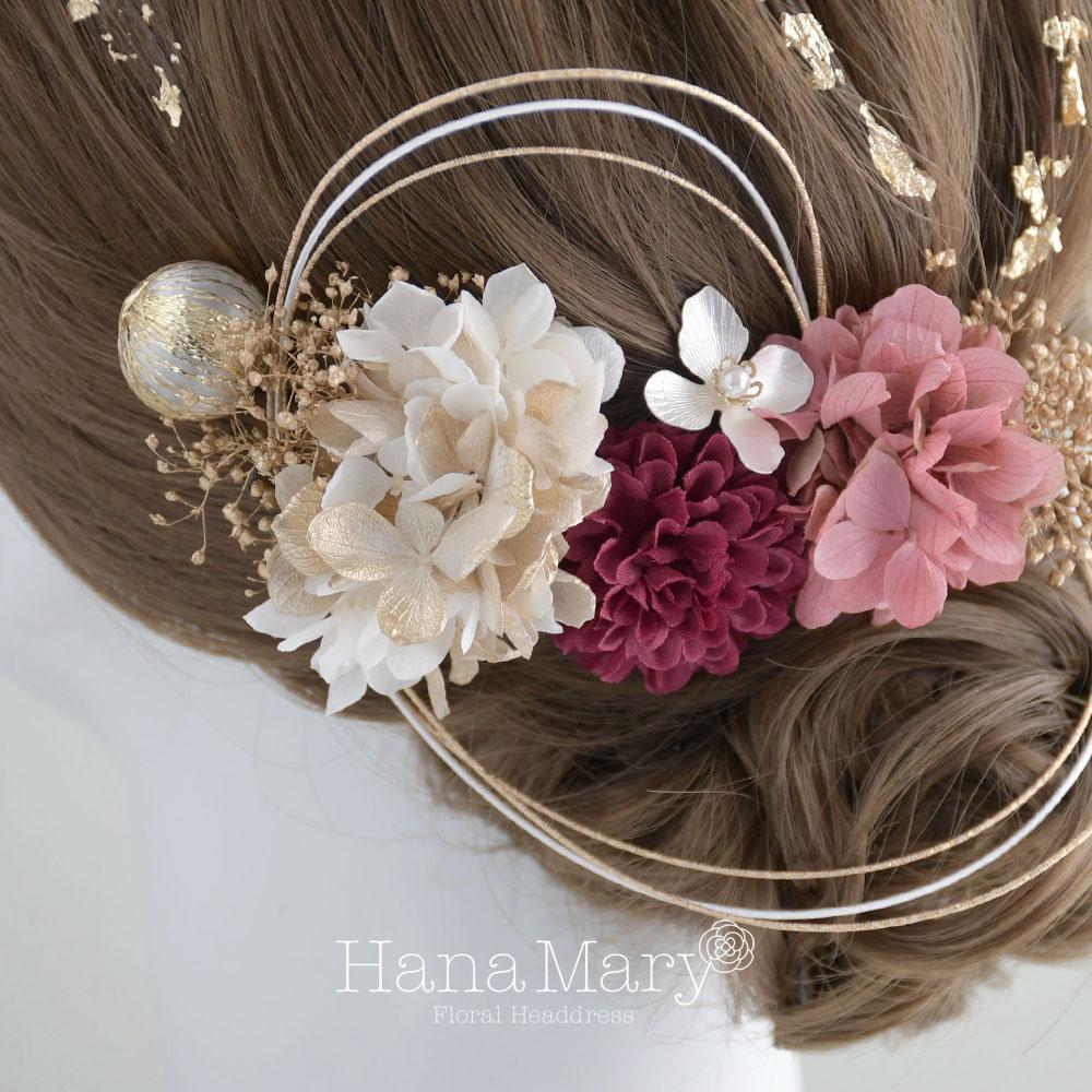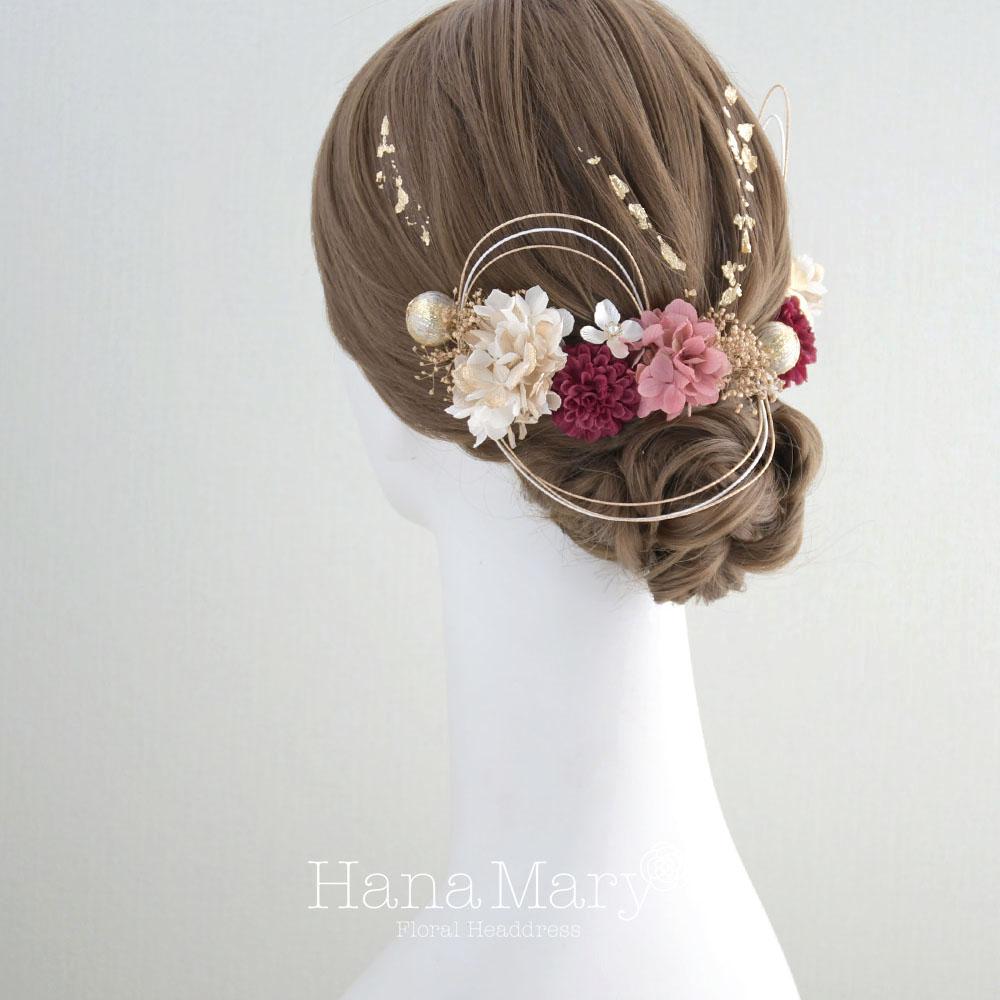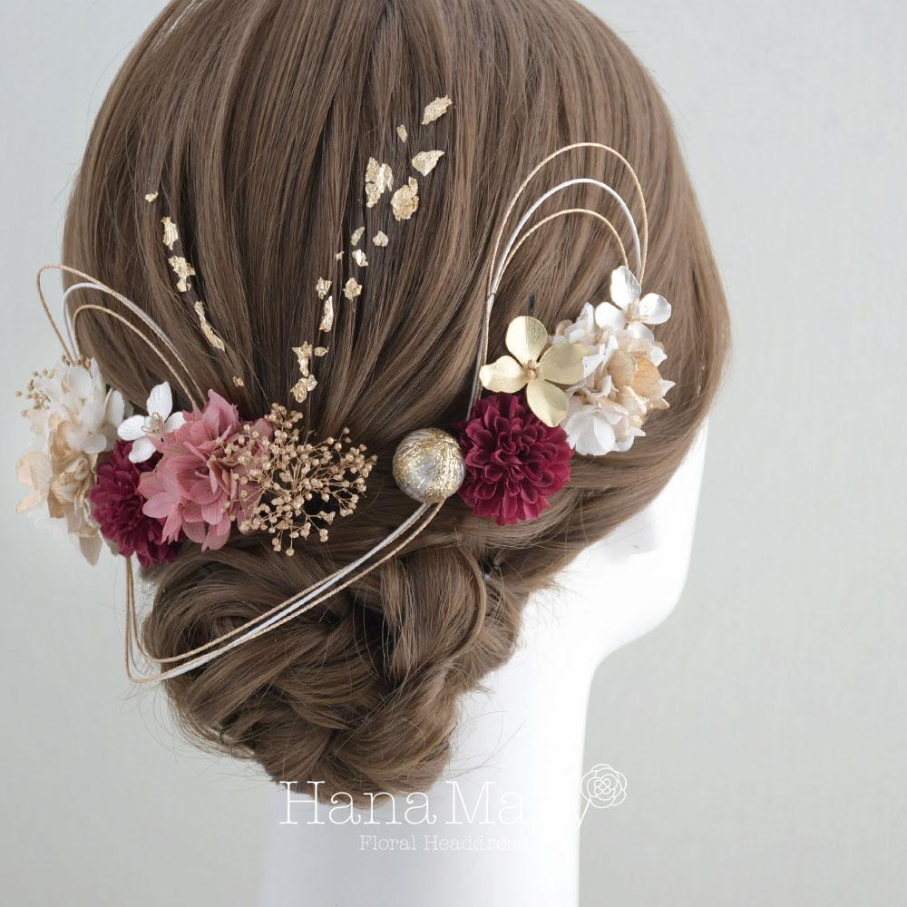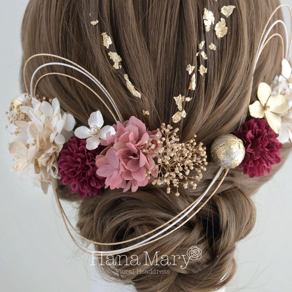 HanaMaryの髪飾りは生花をリアルに再現したアートフラワーと呼ばれるハイクオリティーな造花を使用しています。耐久性に優れ、成人式・卒業式やウェディングなどに何度でも繰り返し使用することができます。