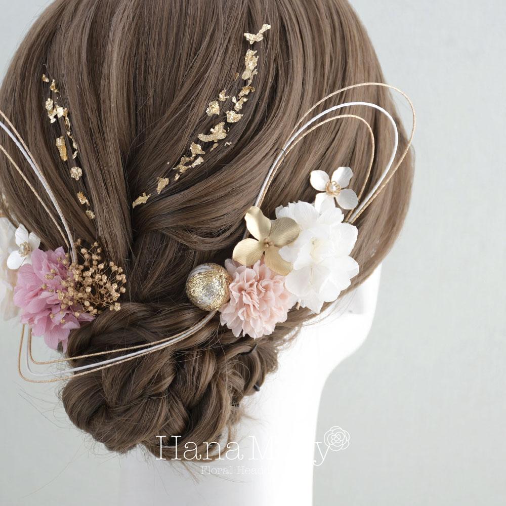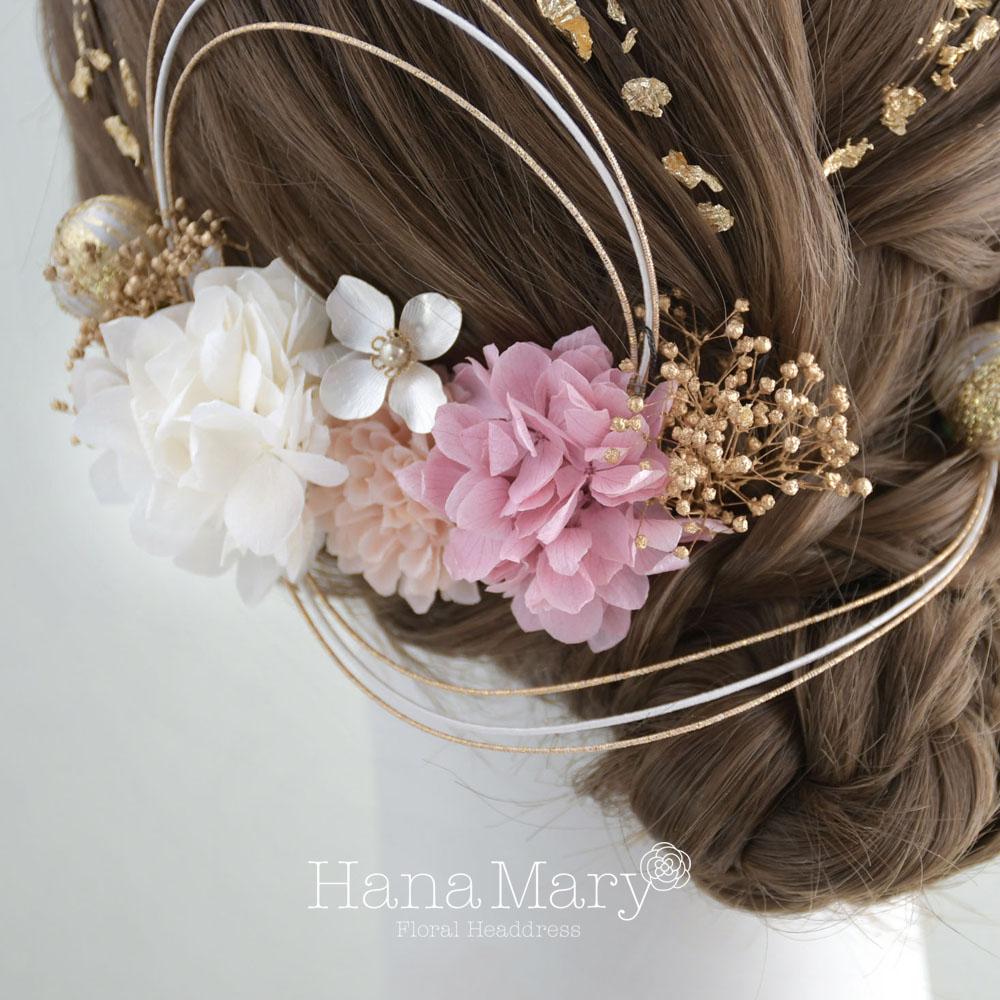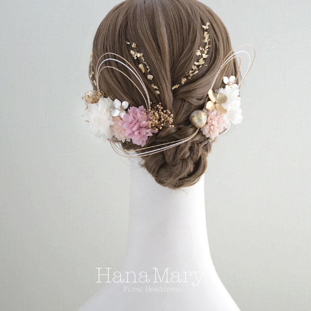 HanaMaryの髪飾りは生花をリアルに再現したアートフラワーと呼ばれるハイクオリティーな造花を使用しています。耐久性に優れ、成人式・卒業式やウェディングなどに何度でも繰り返し使用することができます。