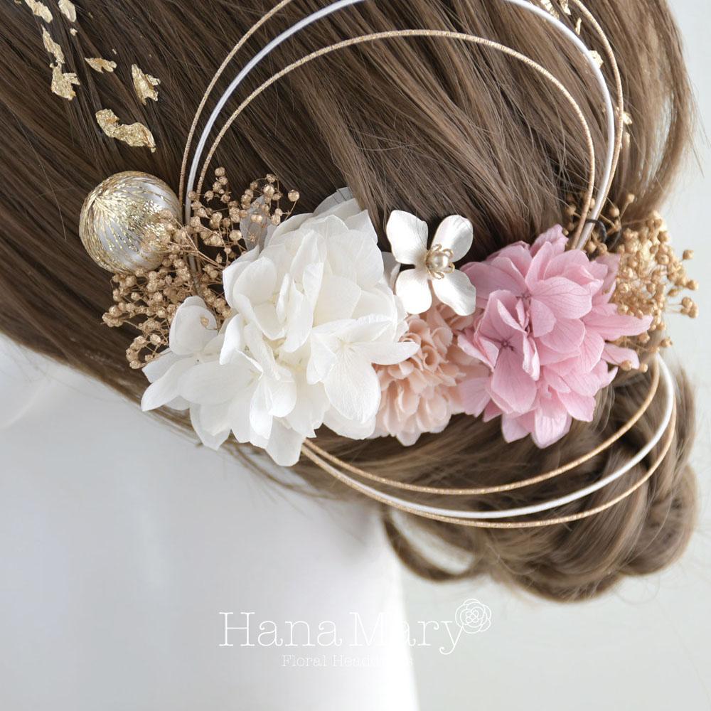 ふわふわとした可愛らしさで和装コーデを華やかに演出してくれるプリザのお花を使った髪飾り。