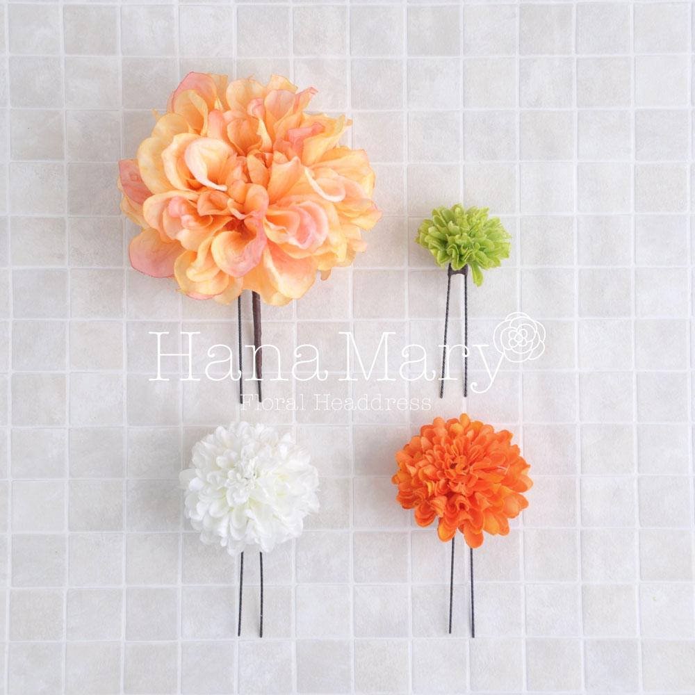 HanaMaryの髪飾りは生花をリアルに再現したアートフラワーと呼ばれるハイクオリティーな造花を使用しています。耐久性に優れ、成人式・卒業式やウェディングなどに何度でも繰り返し使用することができます。