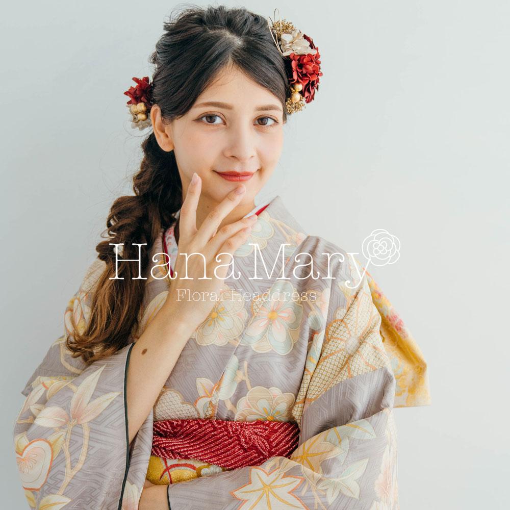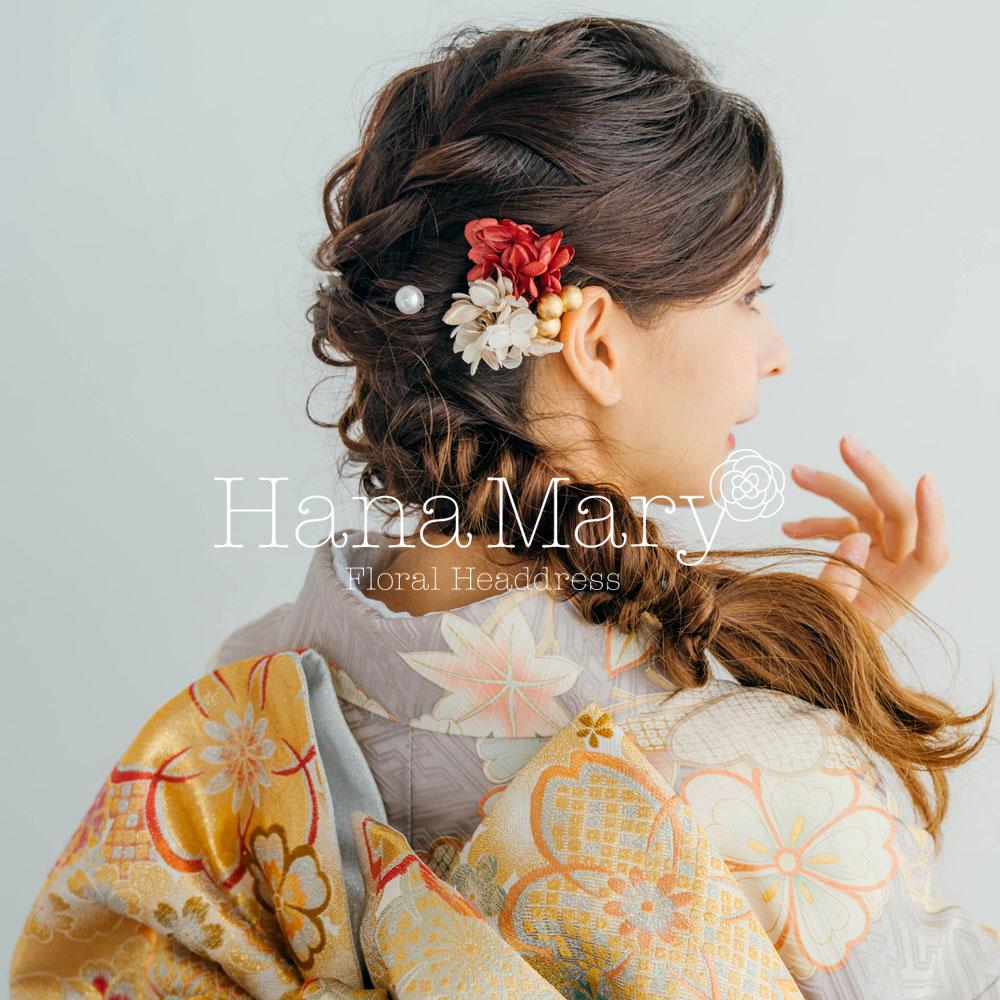 HanaMaryの髪飾りは生花をリアルに再現したアートフラワーと呼ばれるハイクオリティーな造花を使用しています。耐久性に優れ、成人式・卒業式やウェディングなどに何度でも繰り返し使用することができます。