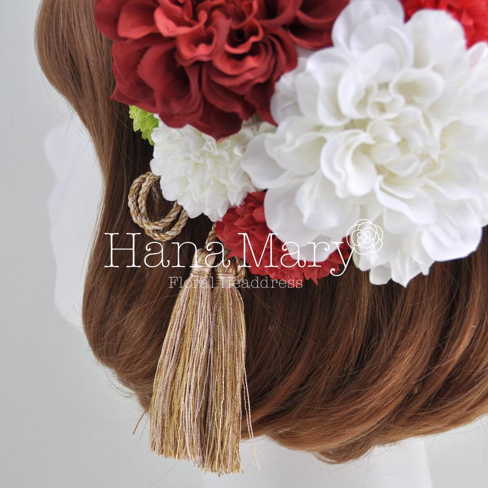 HanaMaryの髪飾りは生花をリアルに再現したアートフラワーと呼ばれるハイクオリティーな造花を使用しています。耐久性に優れ、成人式・卒業式やウェディングなどに何度でも繰り返し使用することができます。
